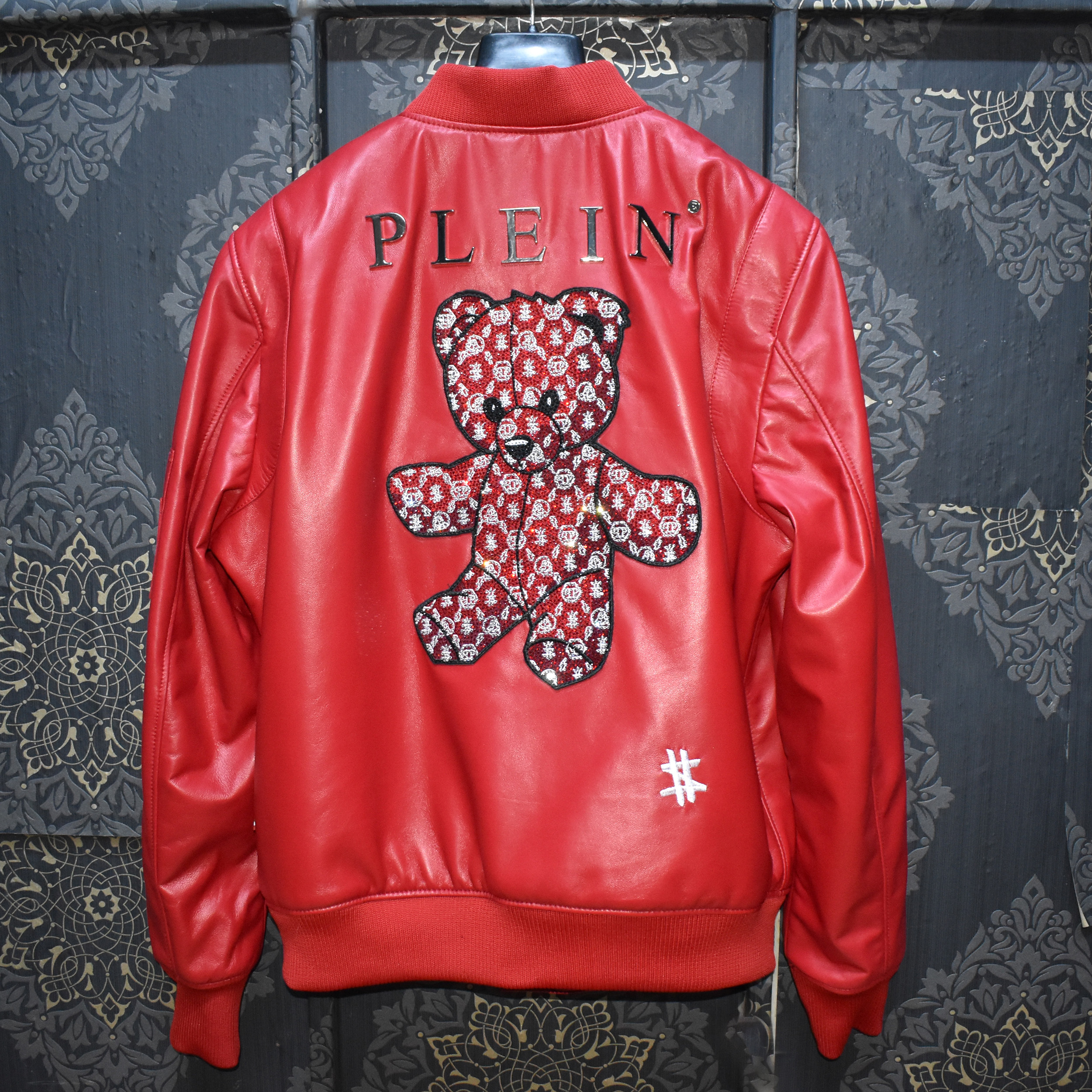 Philipp Plein Red Teddy Bear Replica Leather Jacket