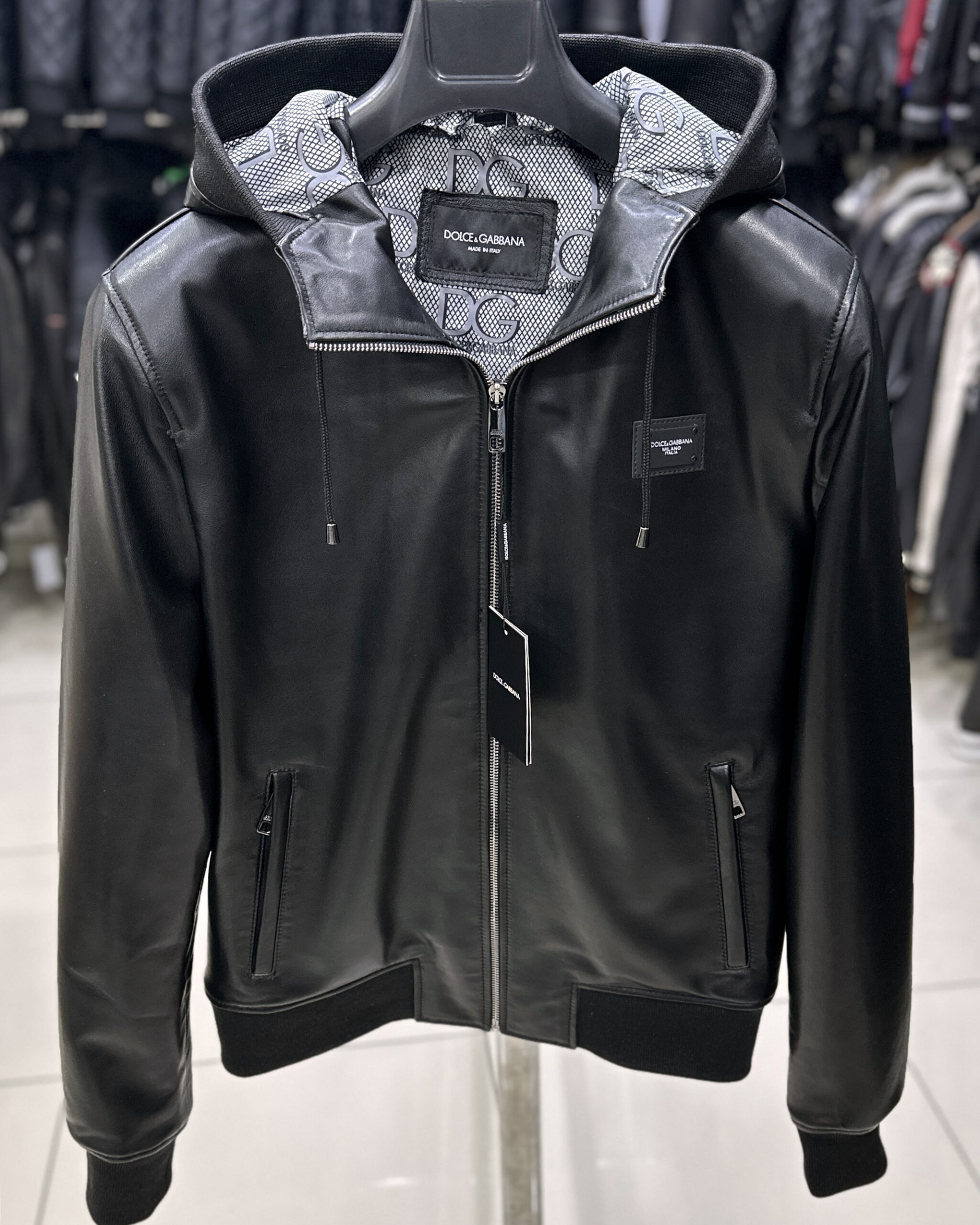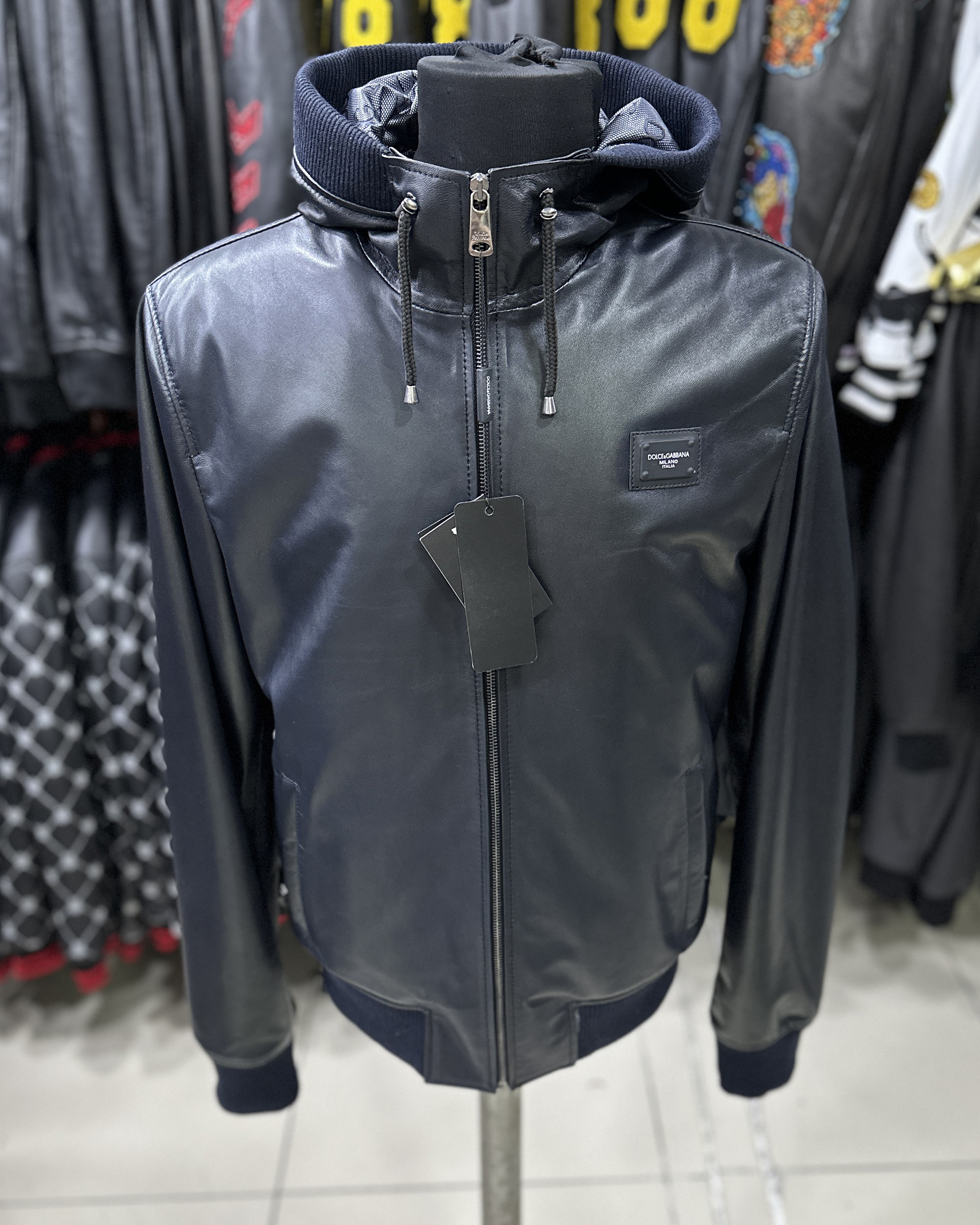 Dolce Gabbana Blue Leather Hoodie Jacket