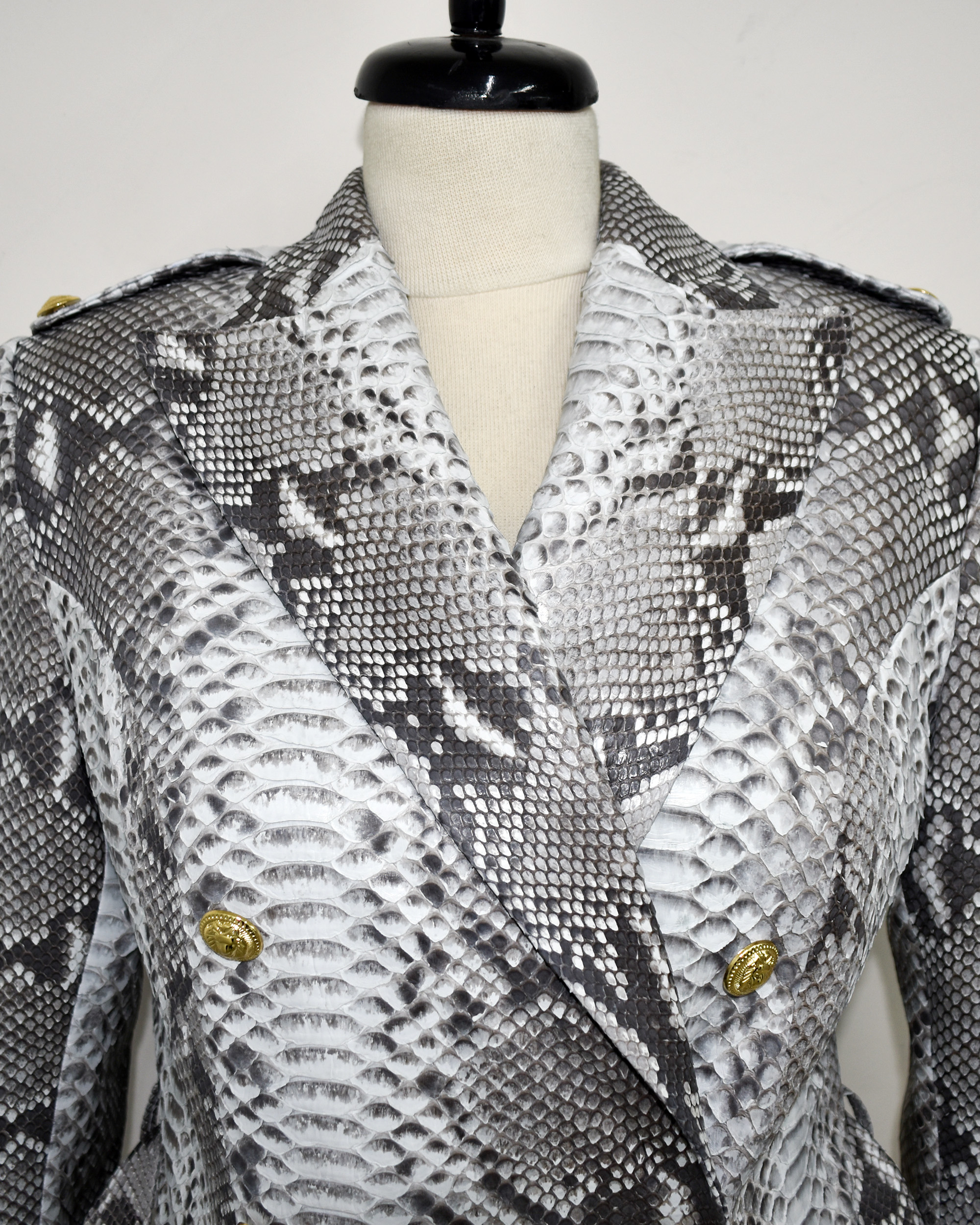 Black Python Leather Long Coat