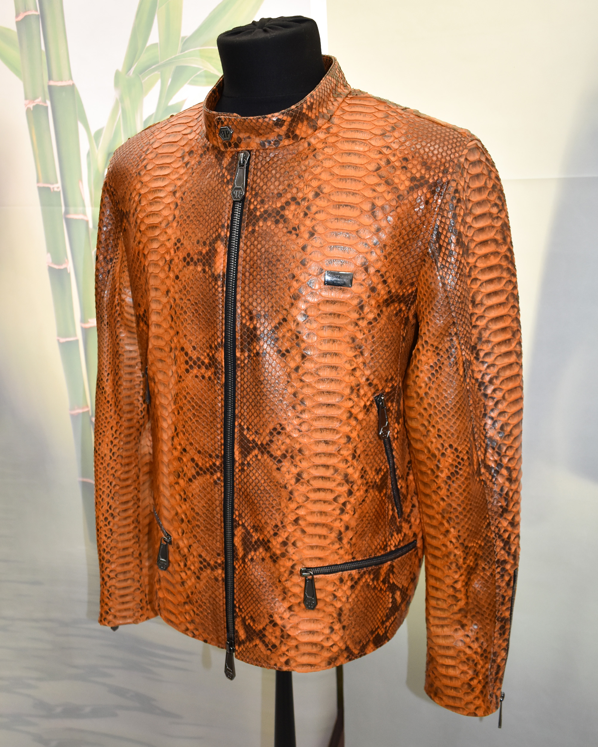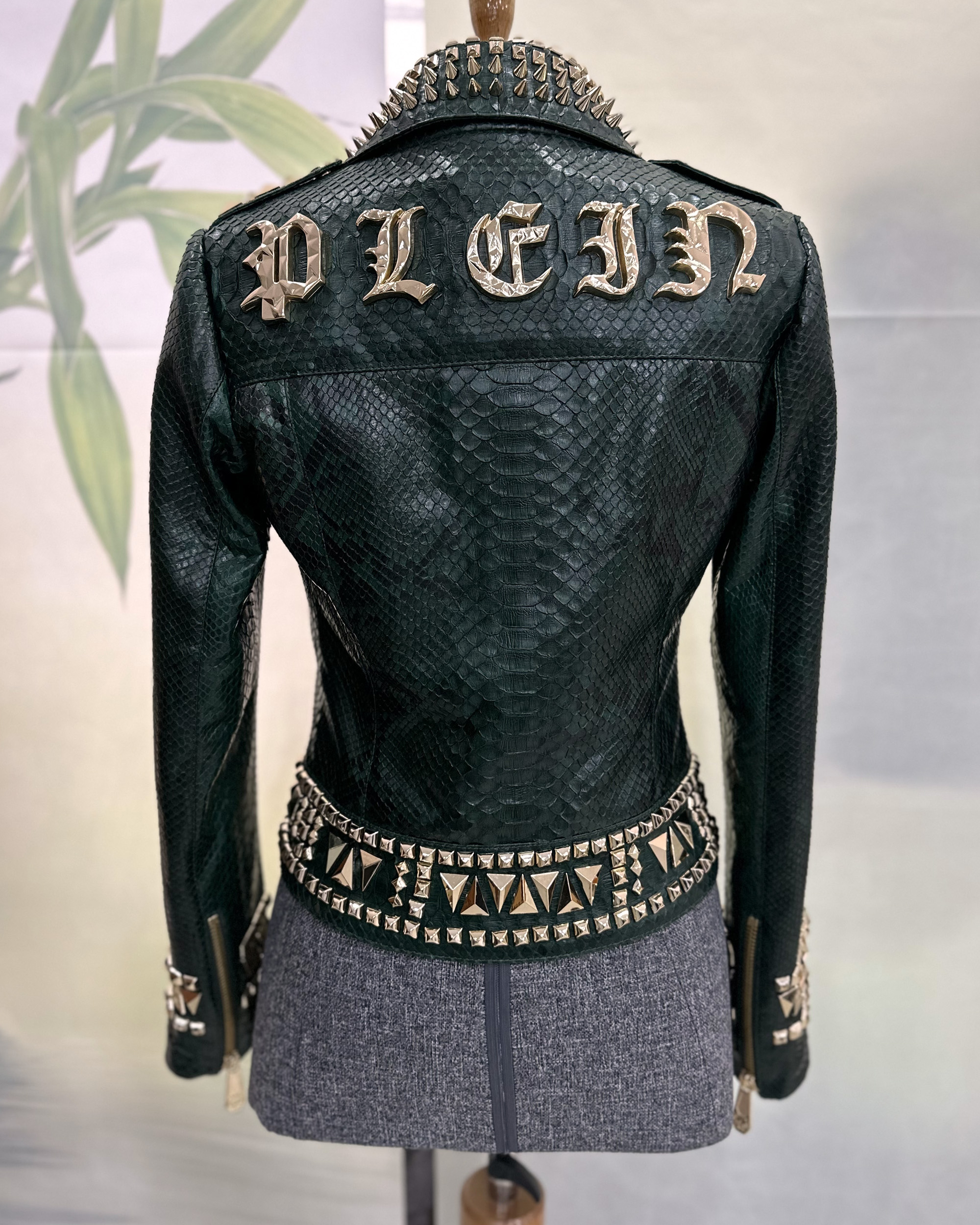 Metallic Python Leather Moto Jacket
