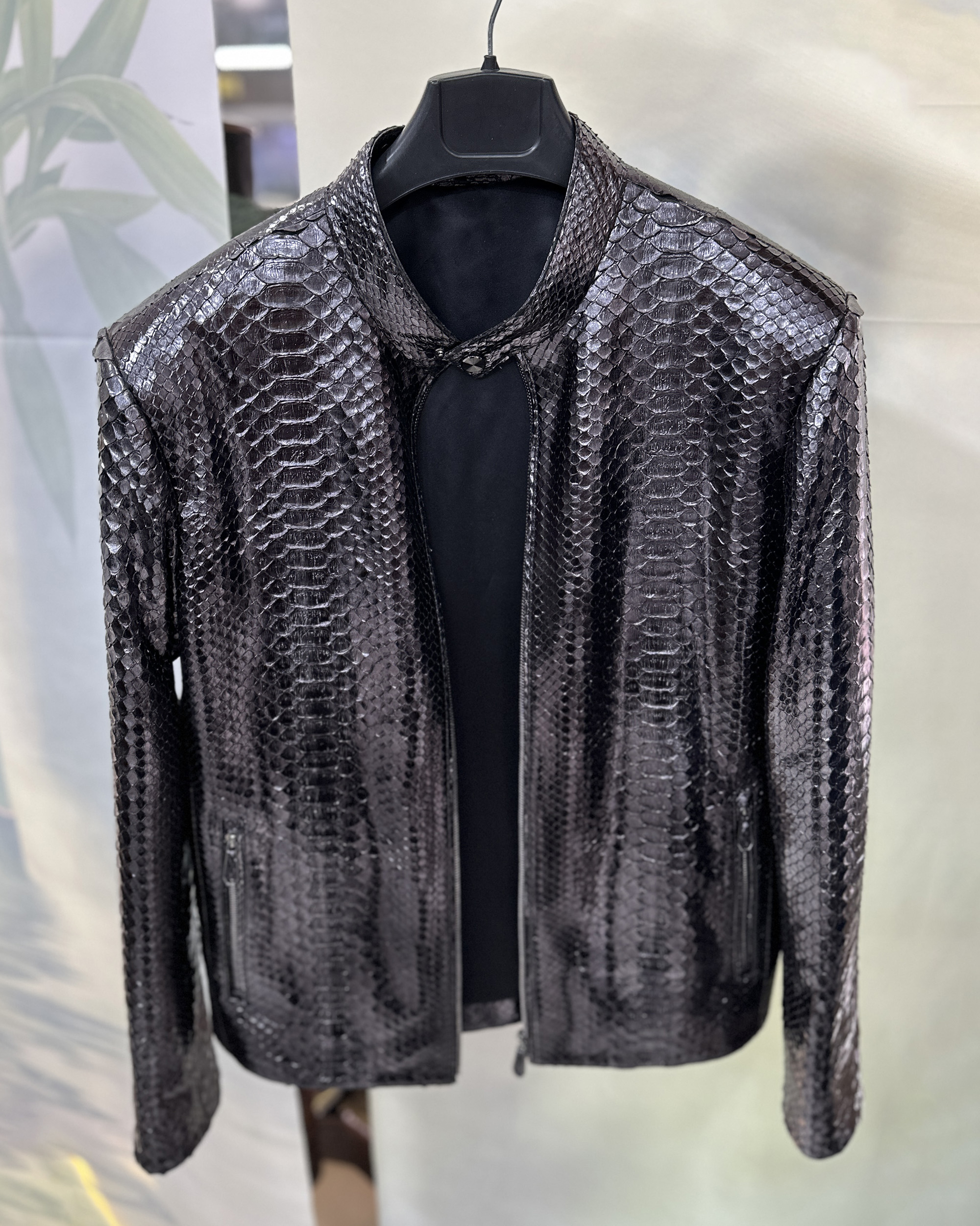 Black Python Leather Moto Jacket