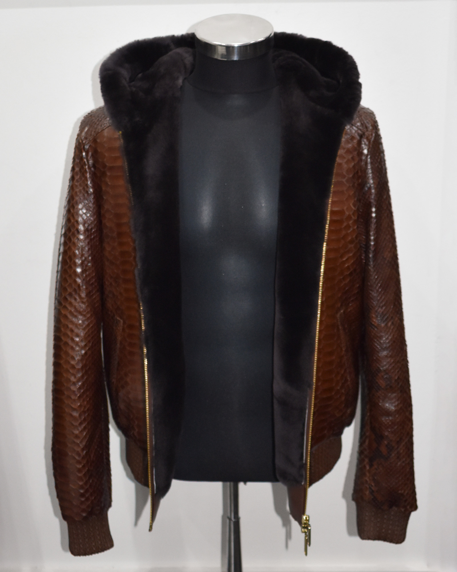 Men Light Brown Python Leather Jacket