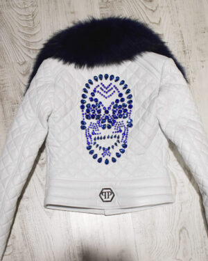 Philipp Plein Women’s Fox Fur Collar Leather Biker Jacket