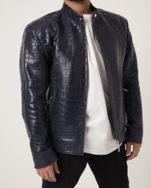 Navy Blue Real Crocodile Leather Jacket$13,000.00