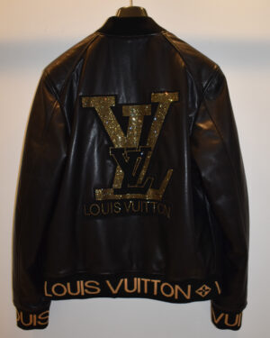 Louis Vuitton Black Yellow Varsity Leather Jacket