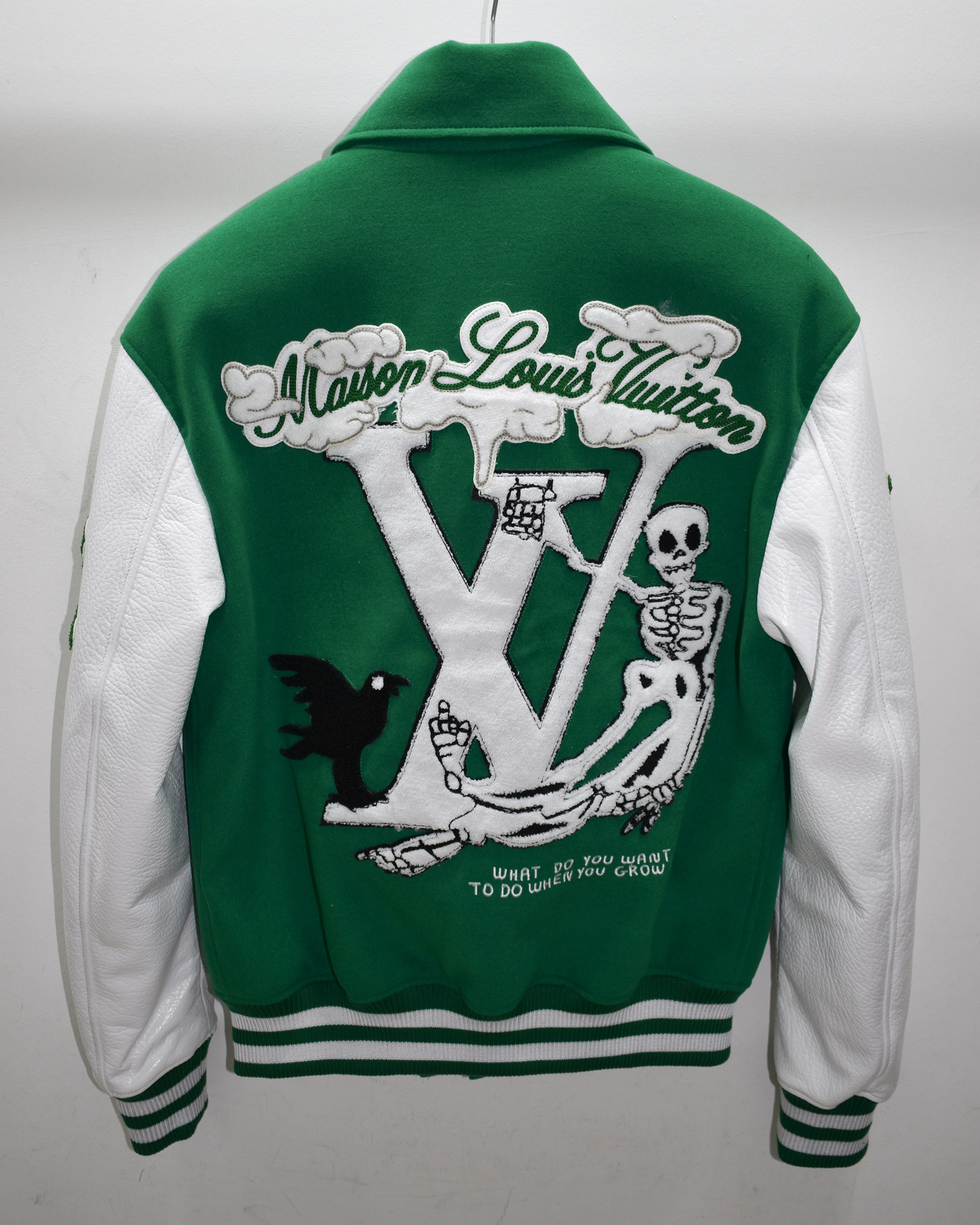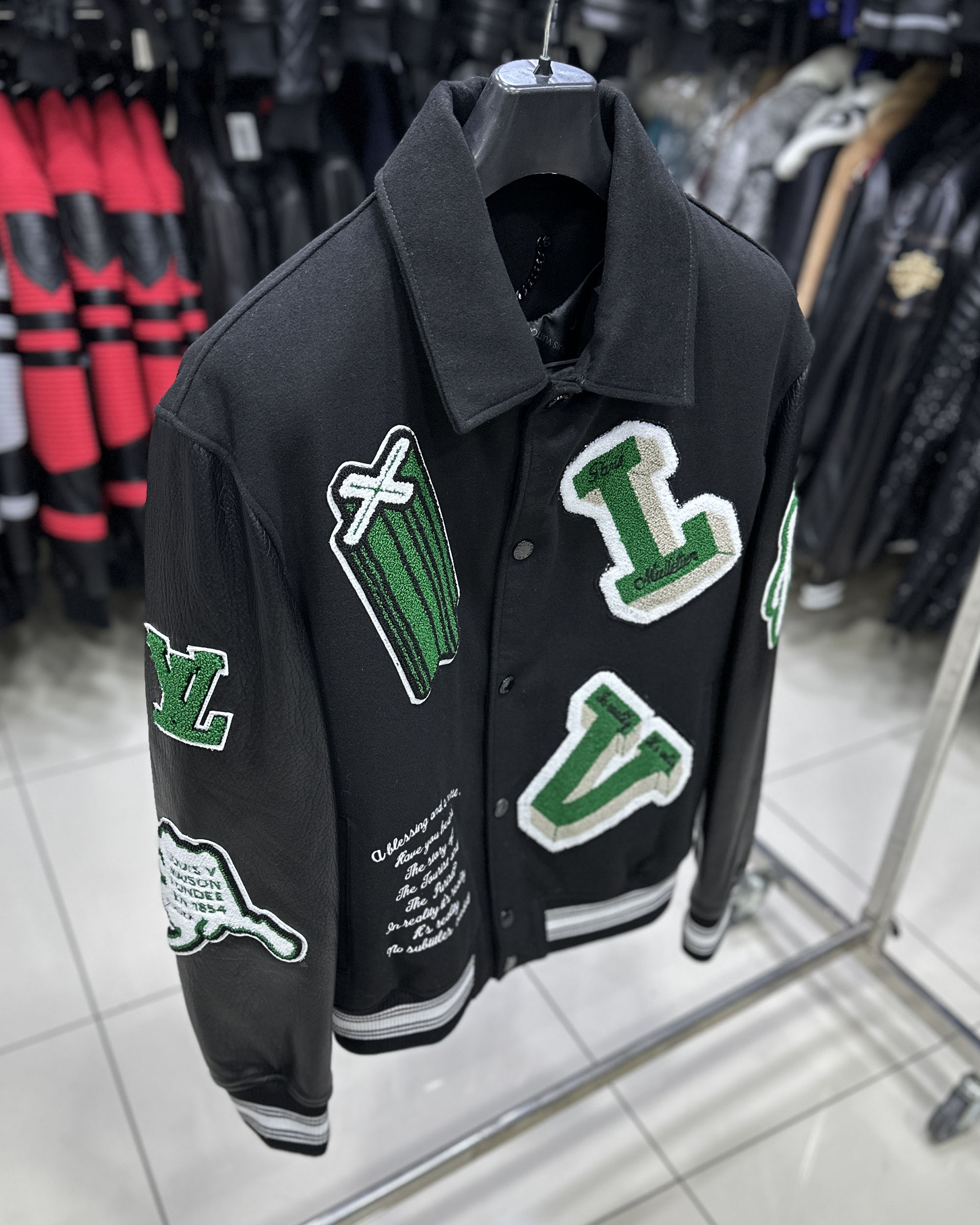 Louis Vuitton Black Yellow Varsity Leather Jacket
