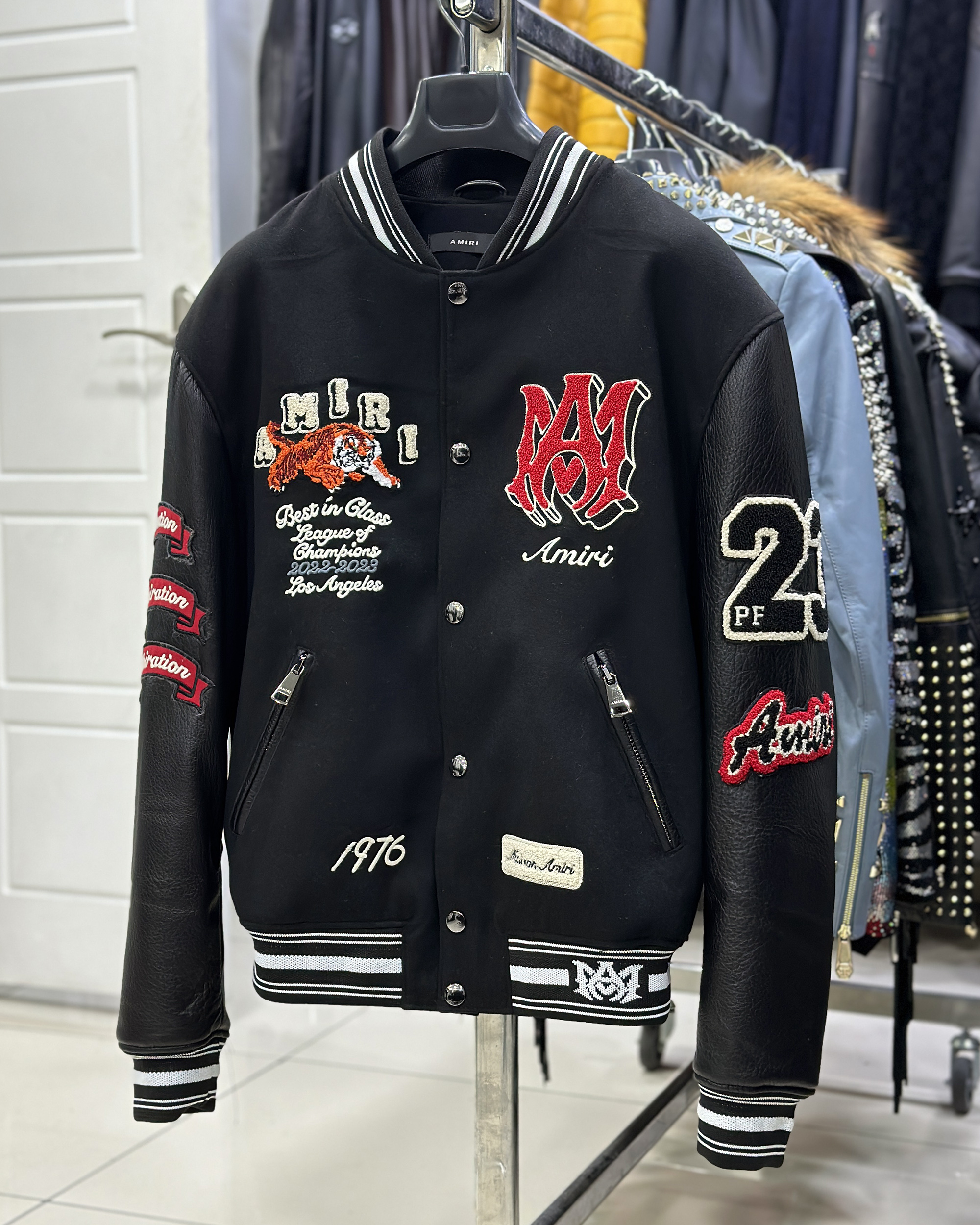 Amiri Red Black Vintage Patch Varsity Bomber Jacket