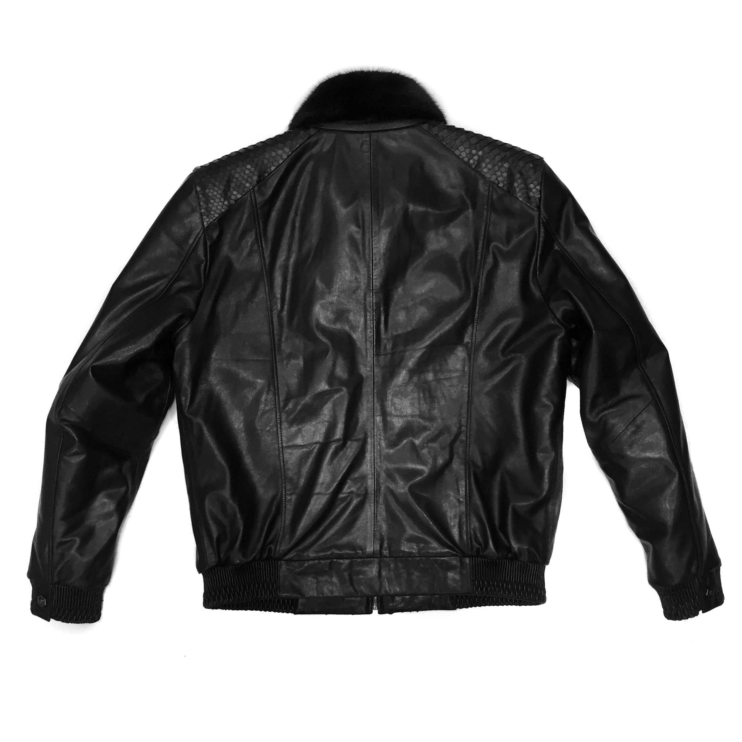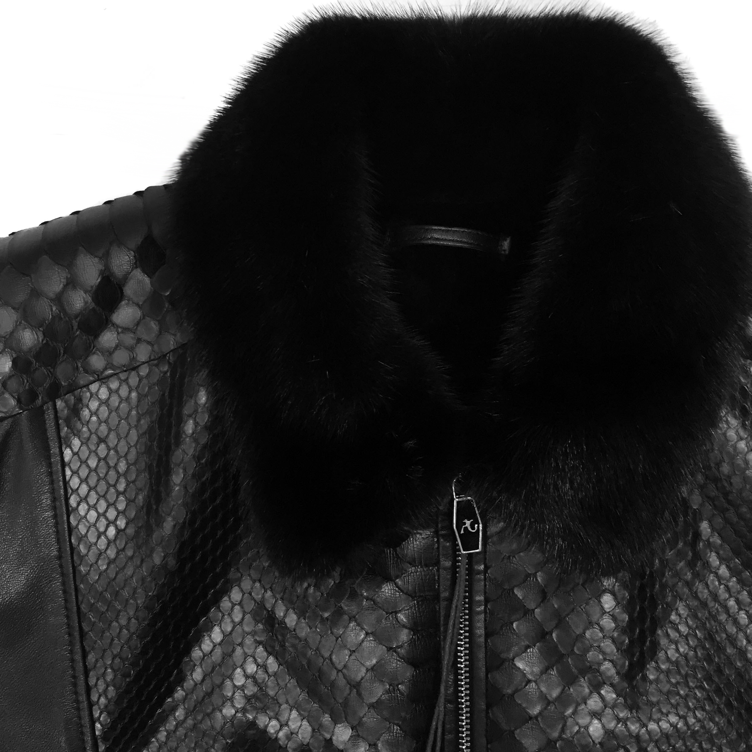 Angelo Galasso Python Leather Mink Fur Collar Jacket