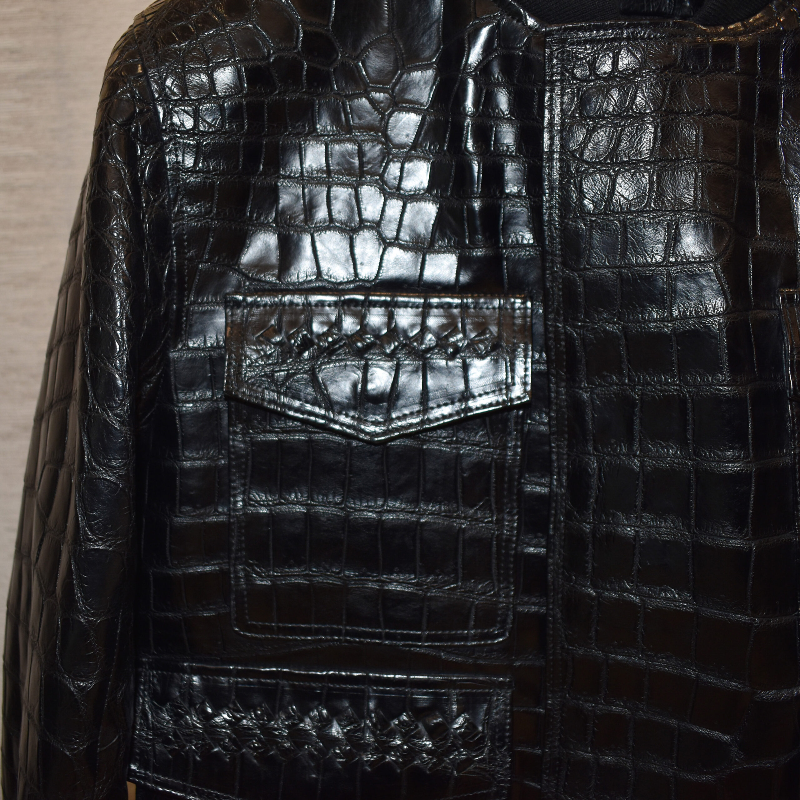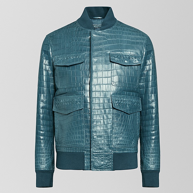 Bottega Veneta Leather Jacket In Crocodile