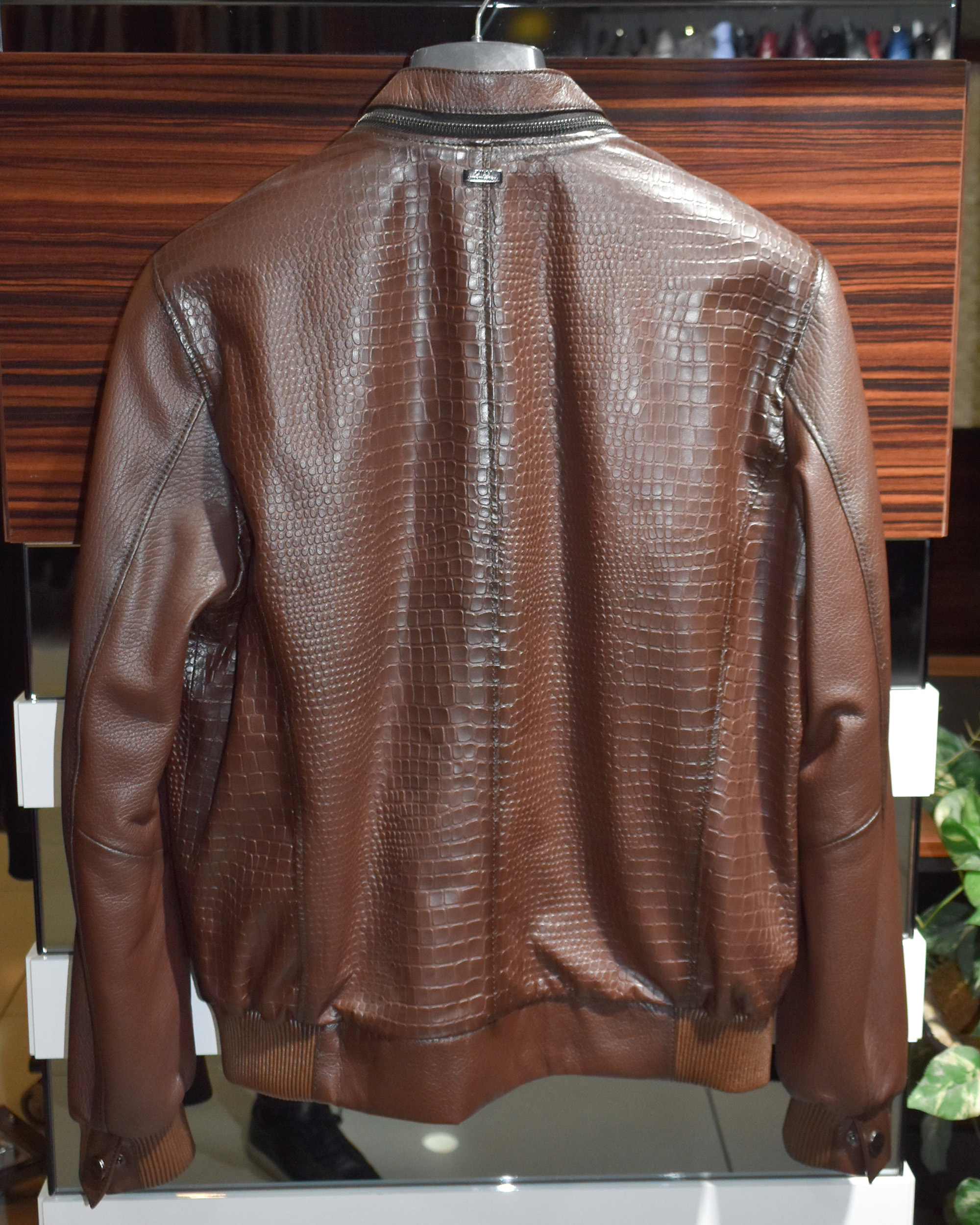 Crocodile Embossed Brown Leather Jacket