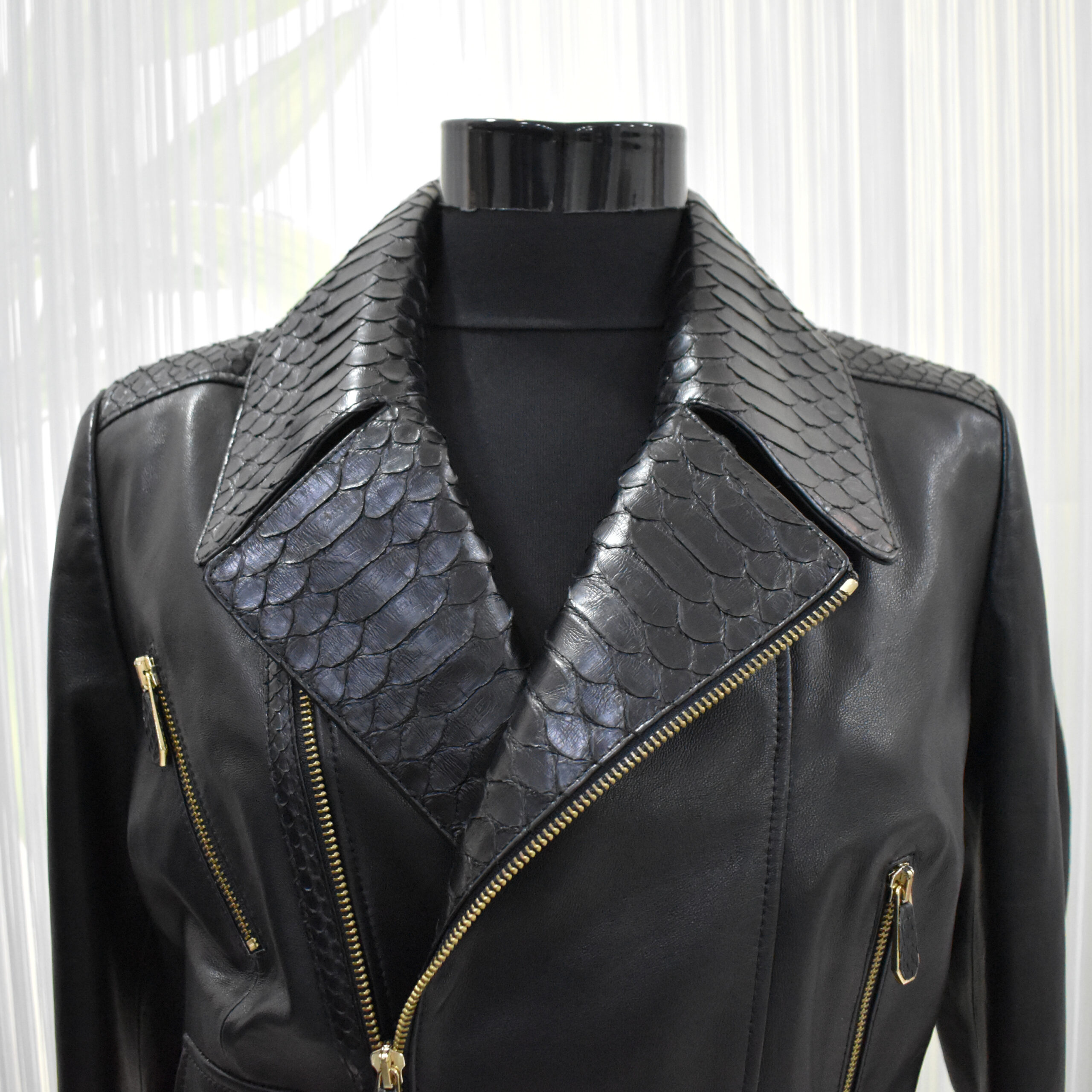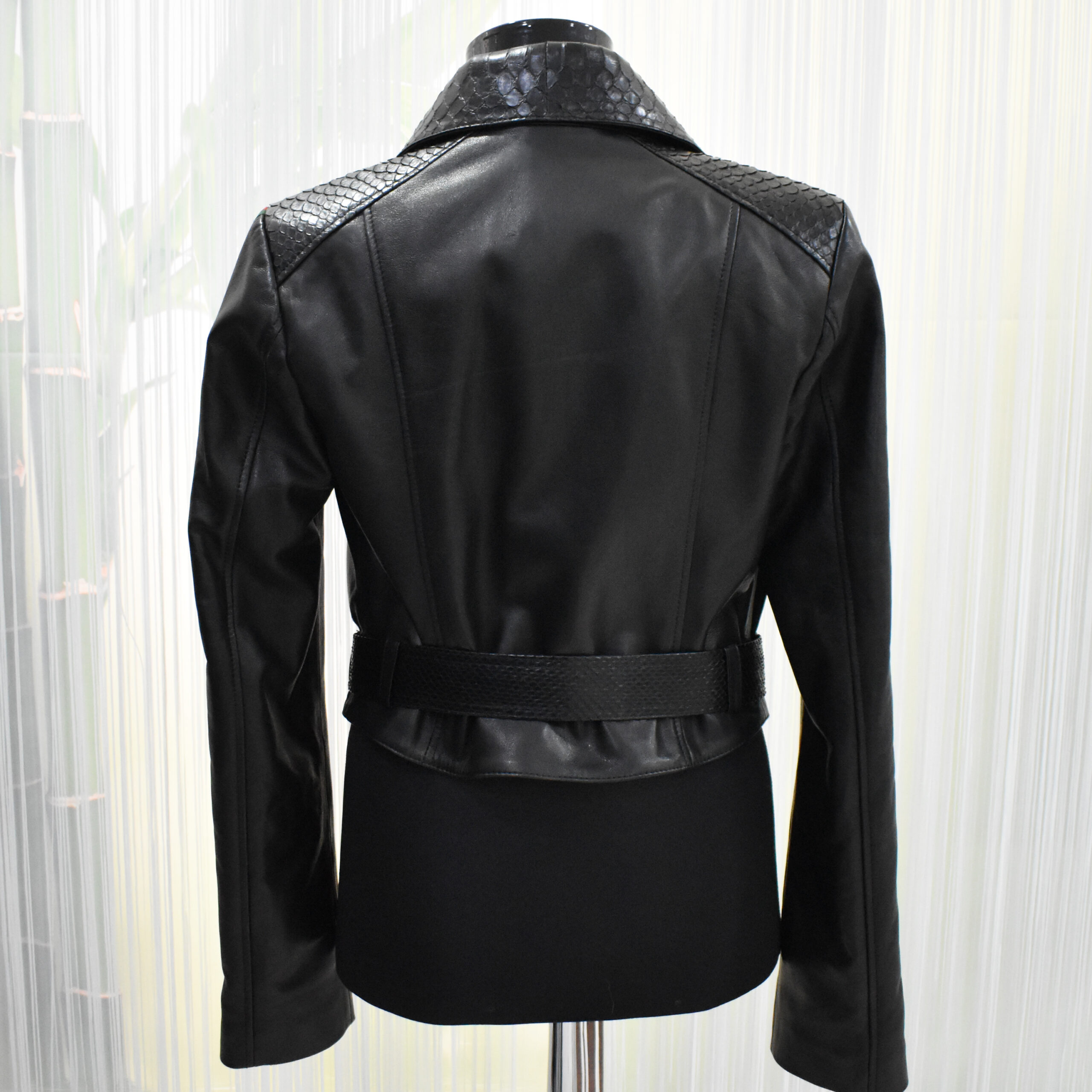Gucci Womens Python Trim Leather Jacket