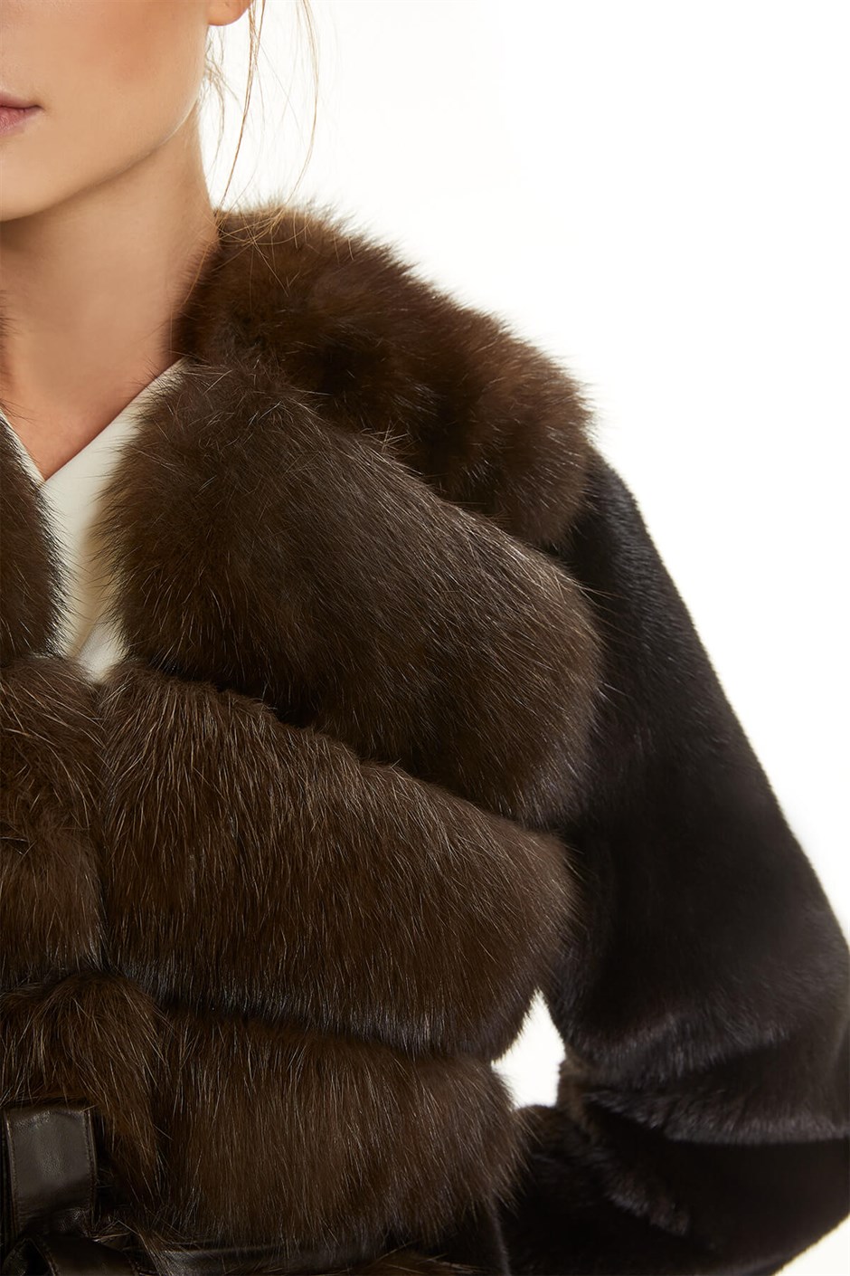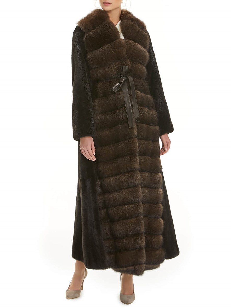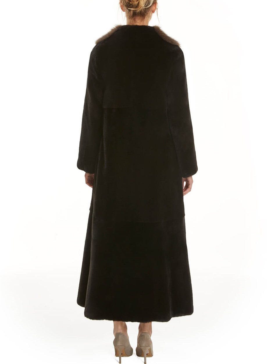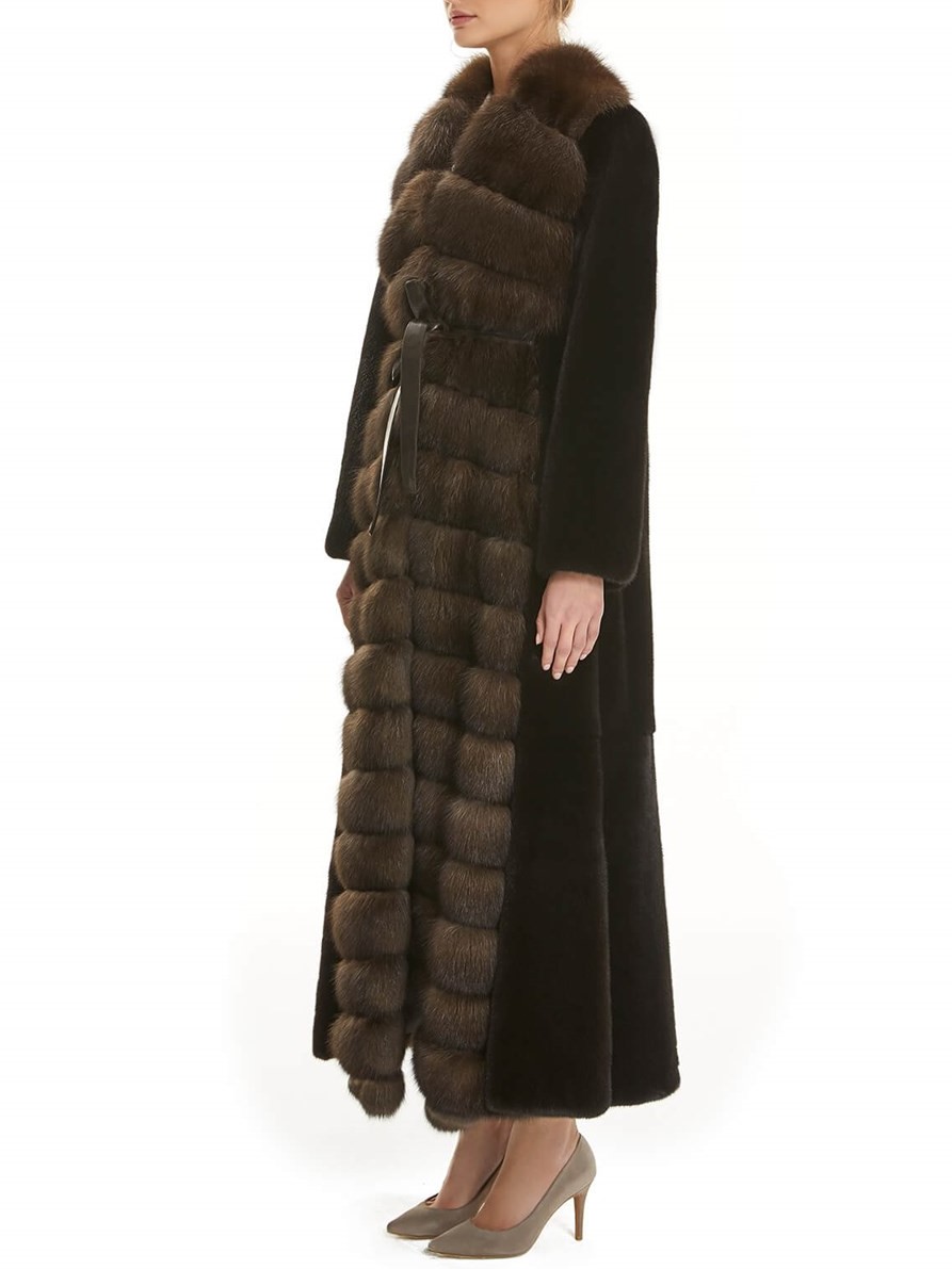 Long Mink Fur Coat With Sable Trim