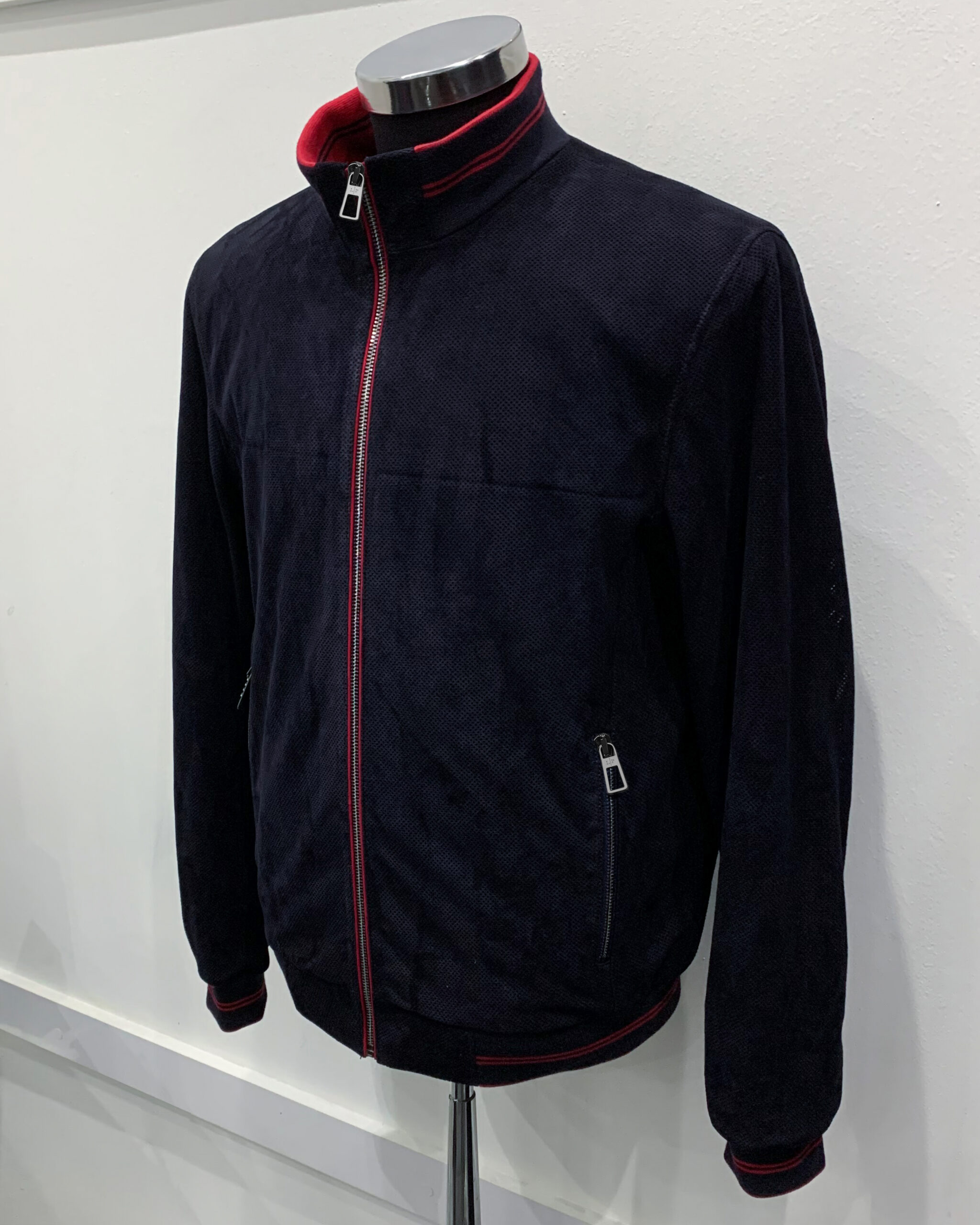 Loro Piana Blue Perforated Suede Bomber Jacket