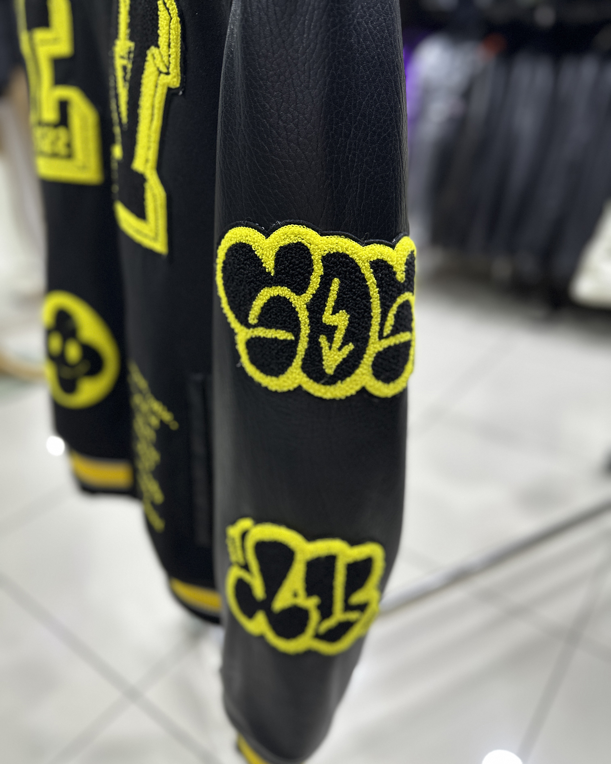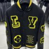 Louis Vuitton Black Yellow Varsity Leather Jacket