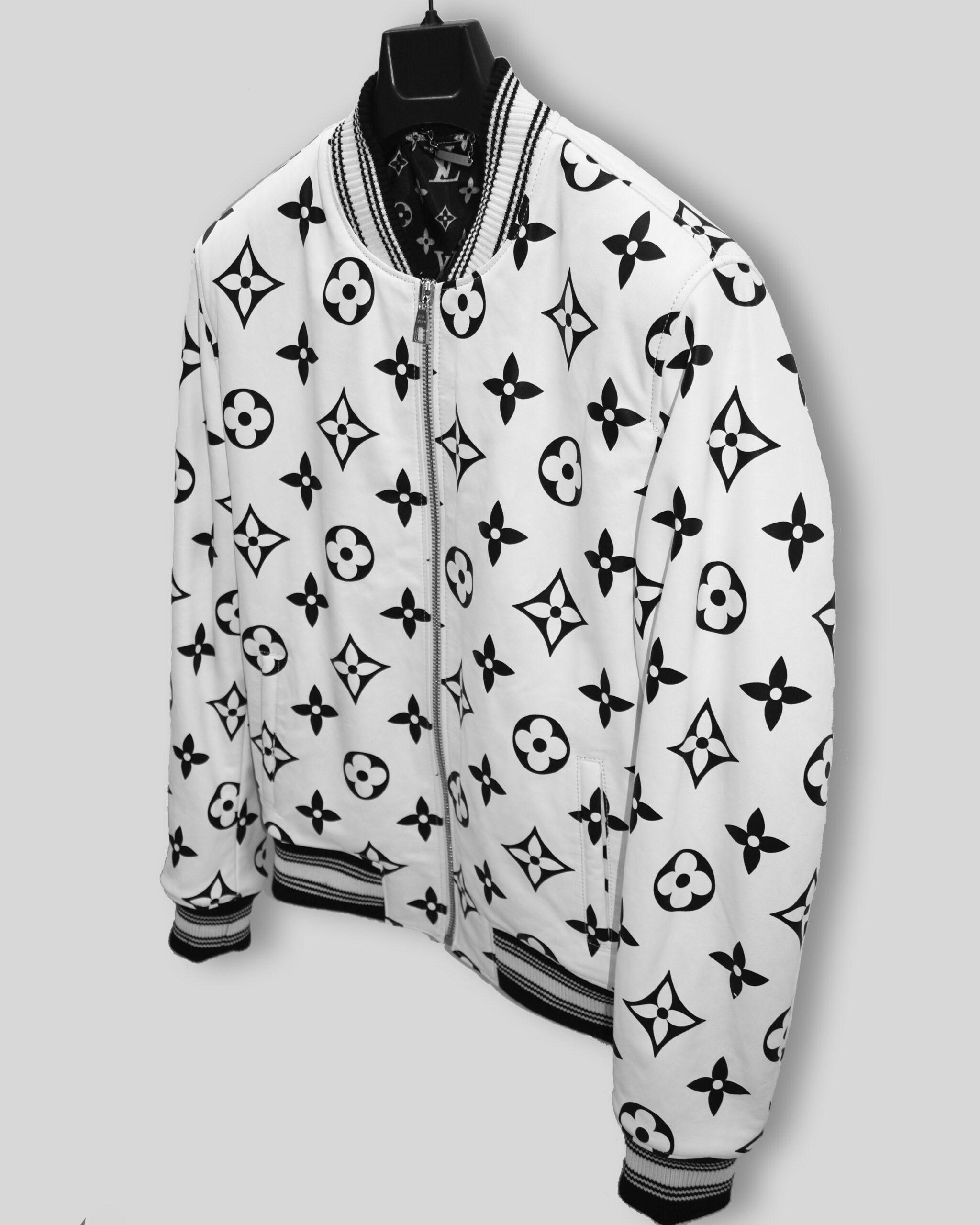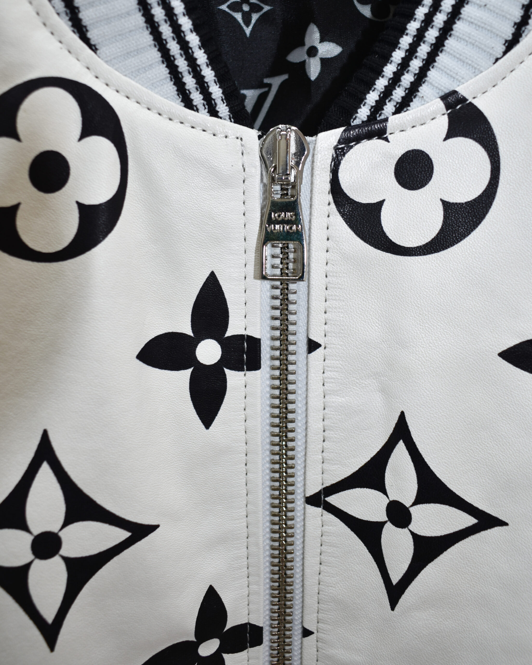 Louis Vuitton Replica Black White Leather Unisex Jacket