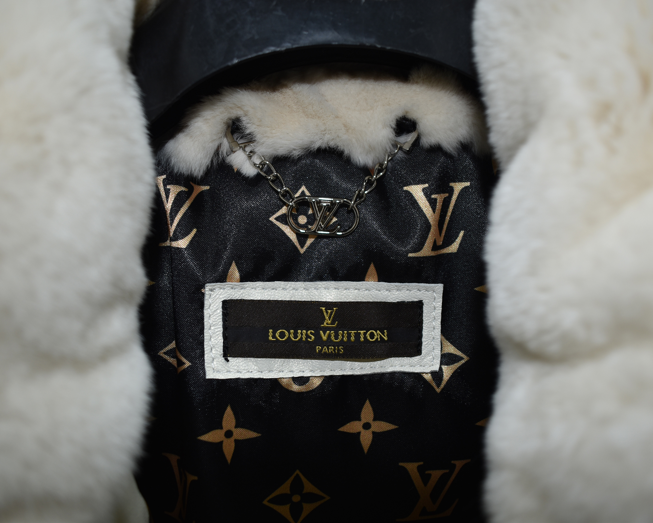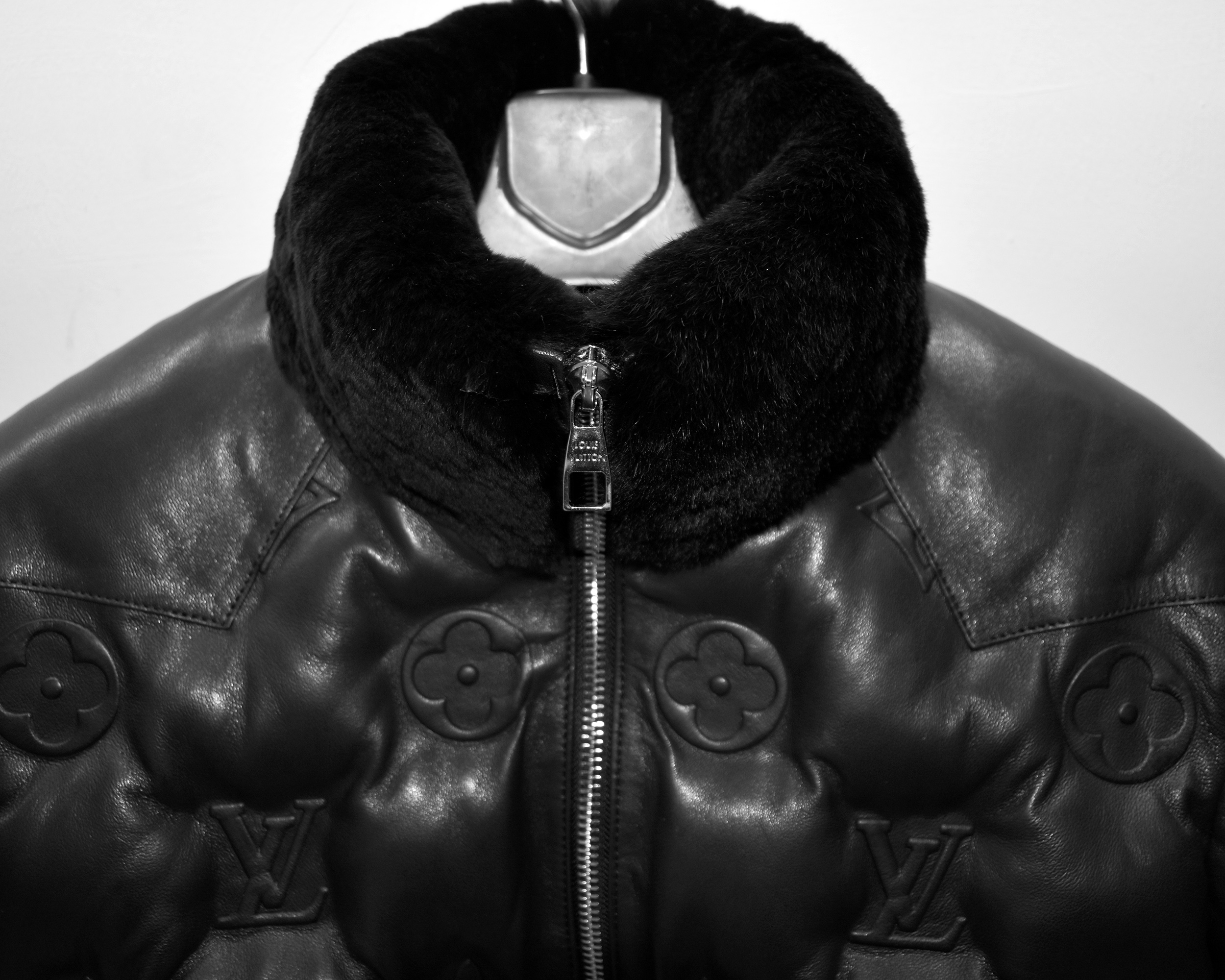 Louis Vuitton Unisex Monogram Puffer Leather Jacket With Fur