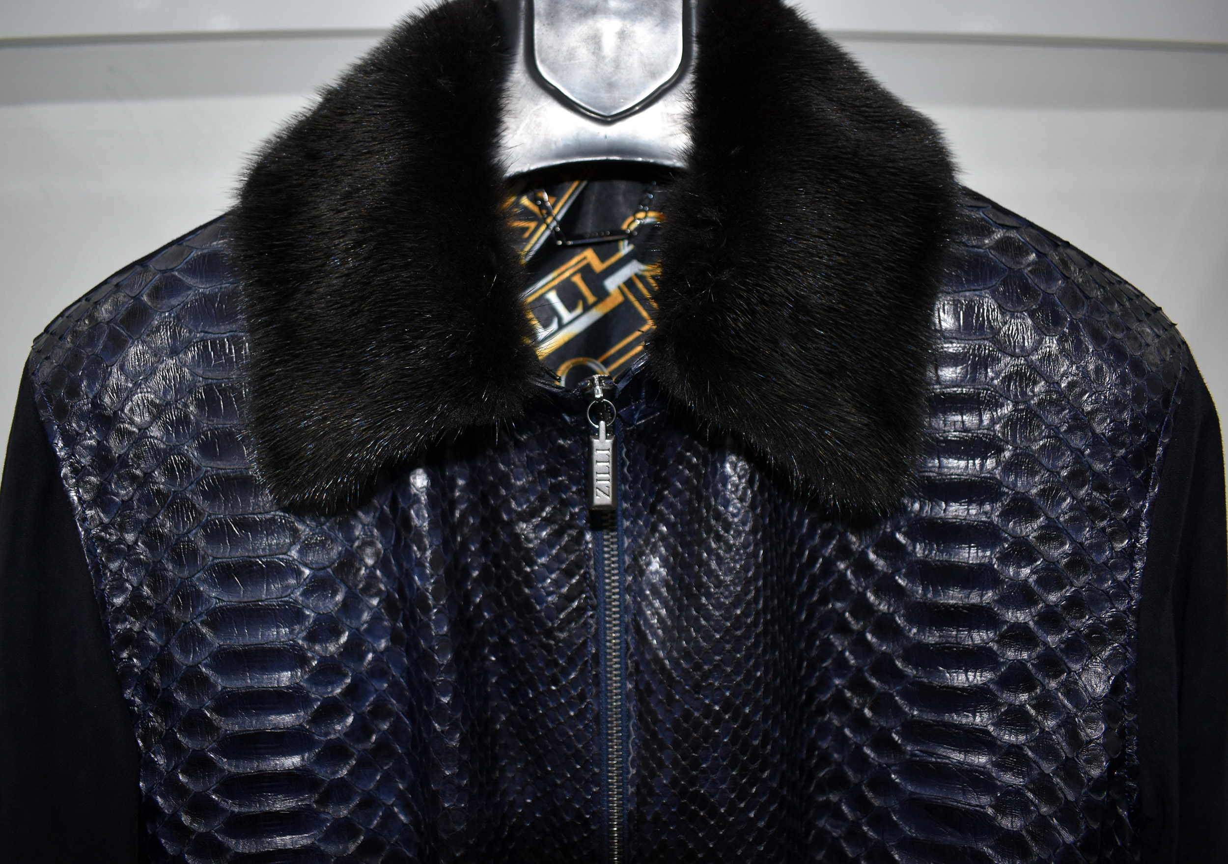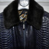 Navy Blue Suede Mink Fur Python Leather Jacket