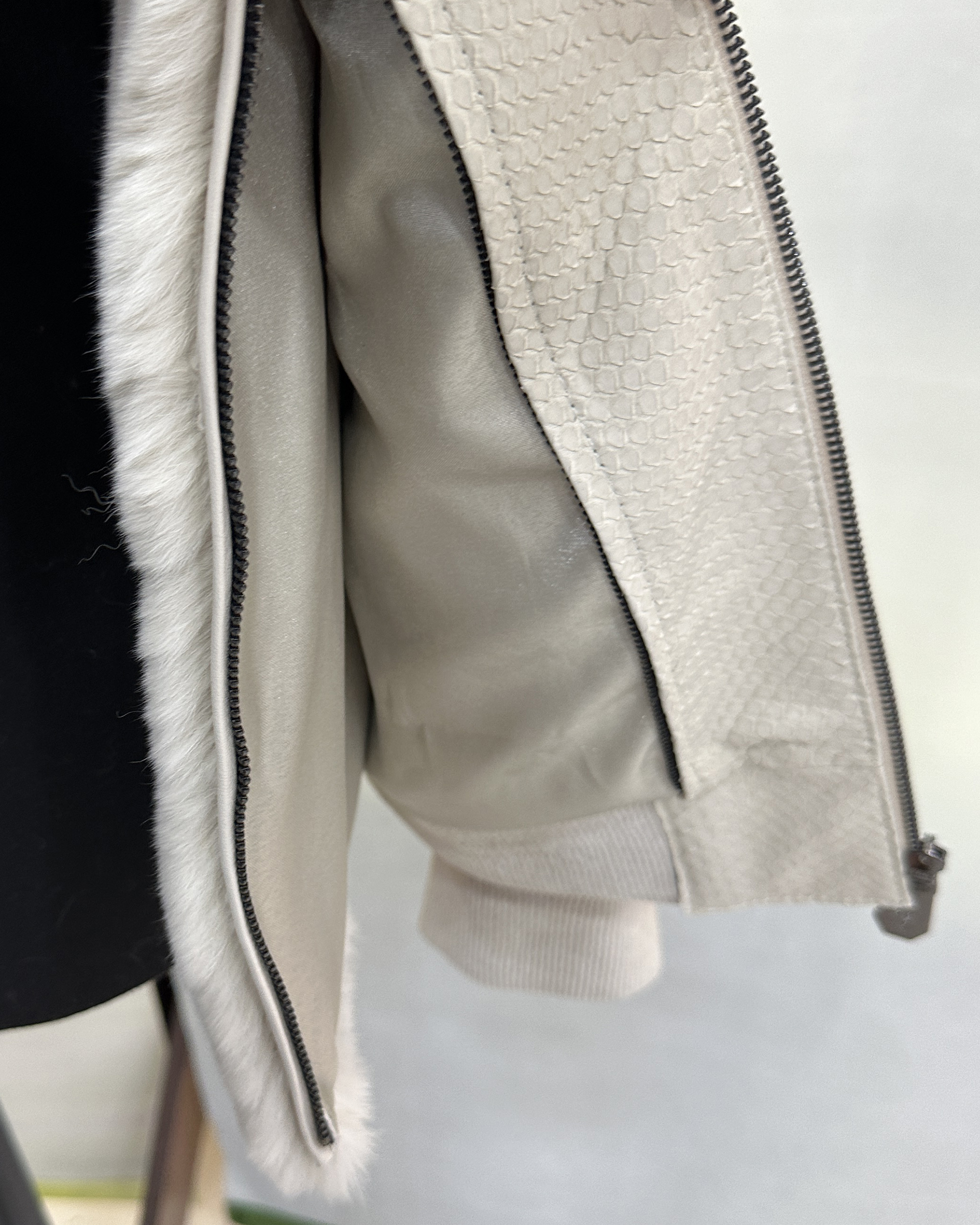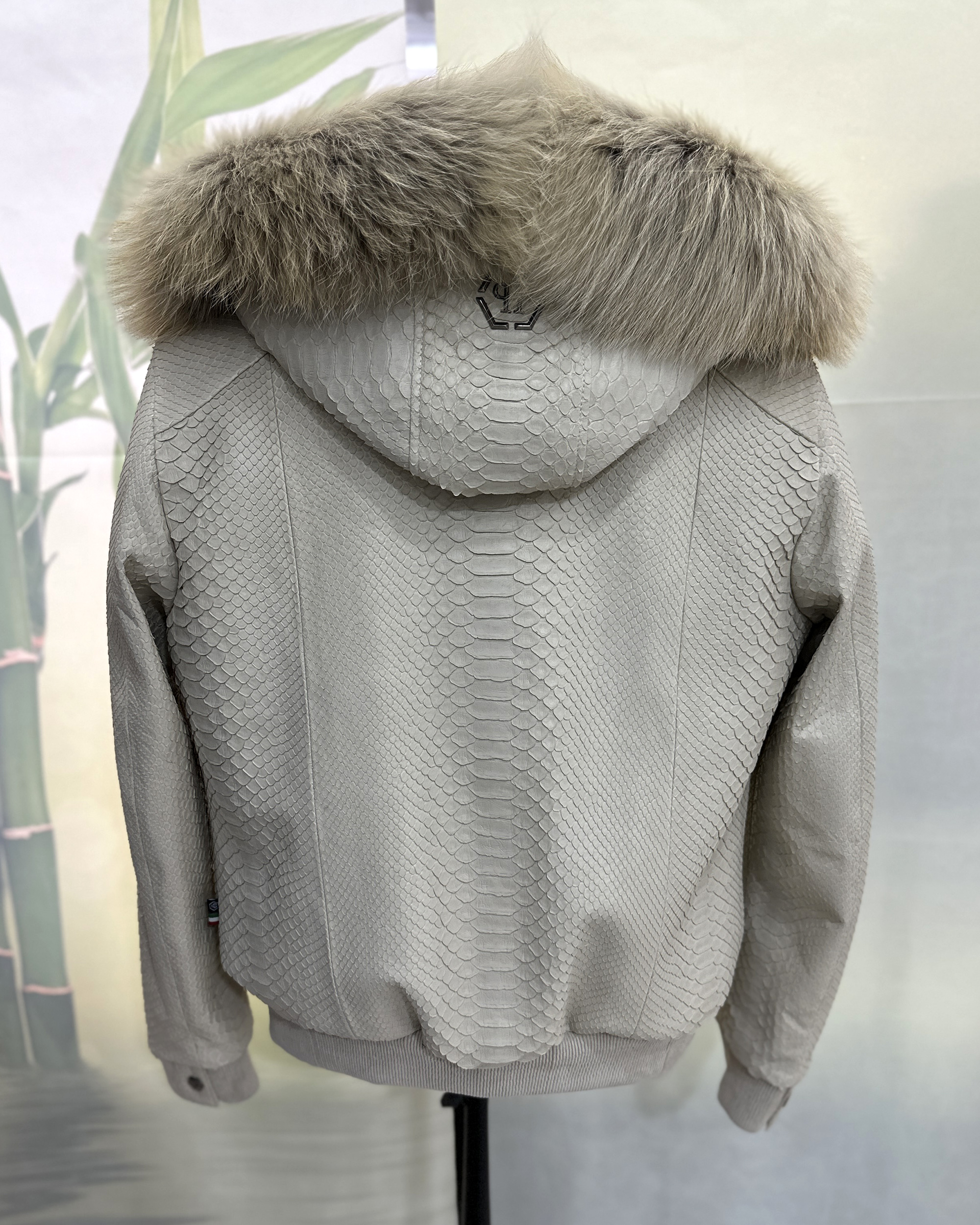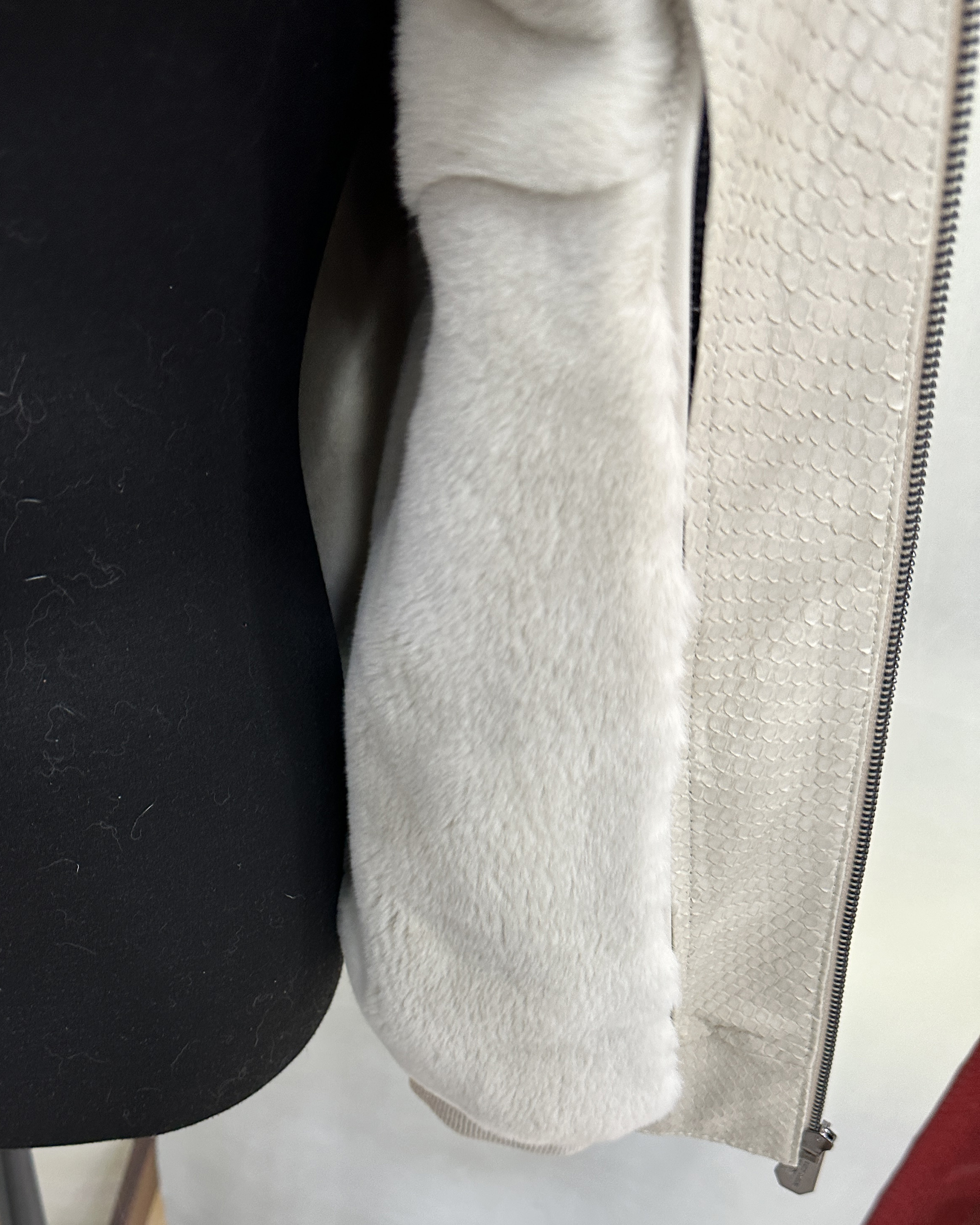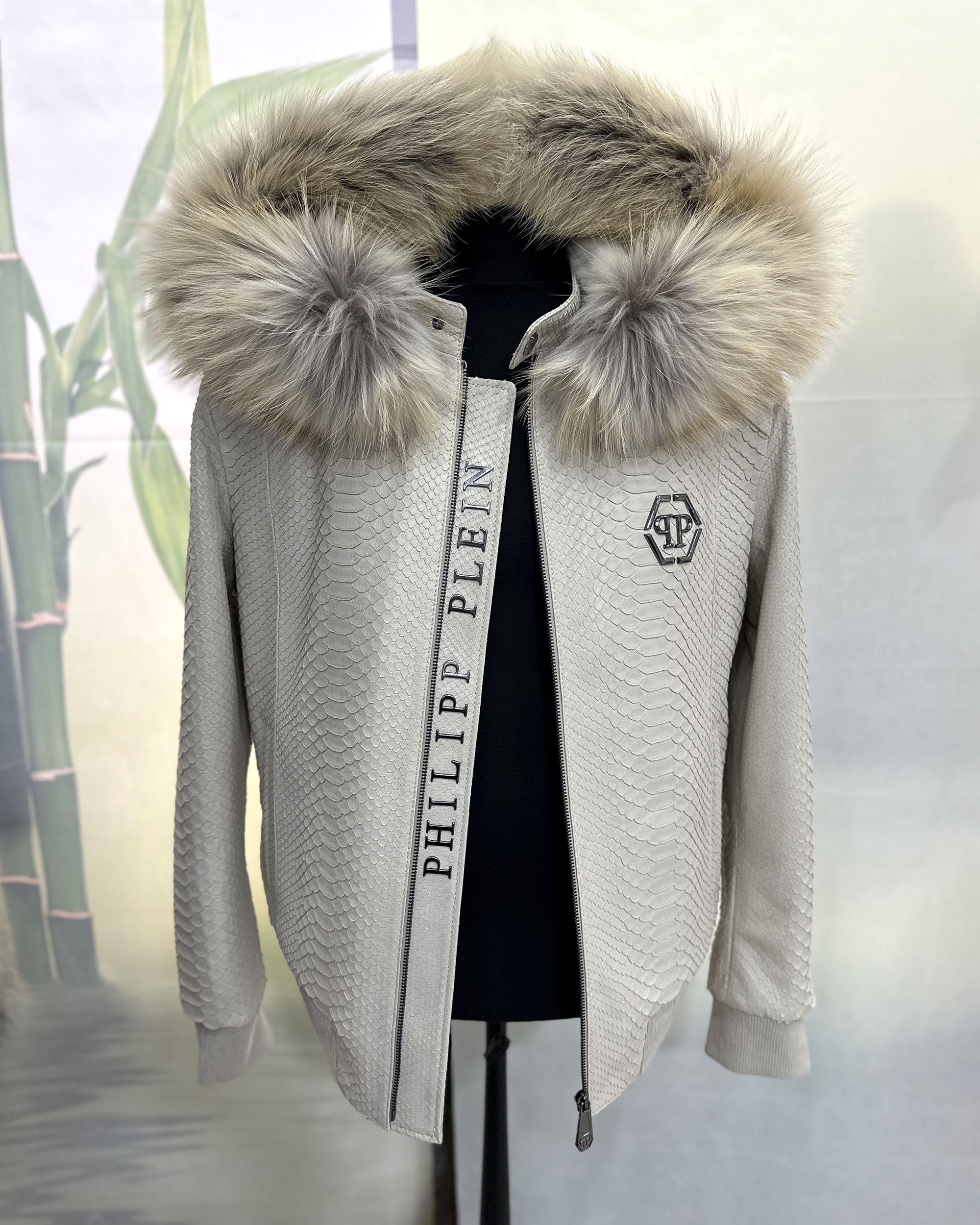 Philipp Plein Beige Nubuck Python Leather Fur Lining Jacket