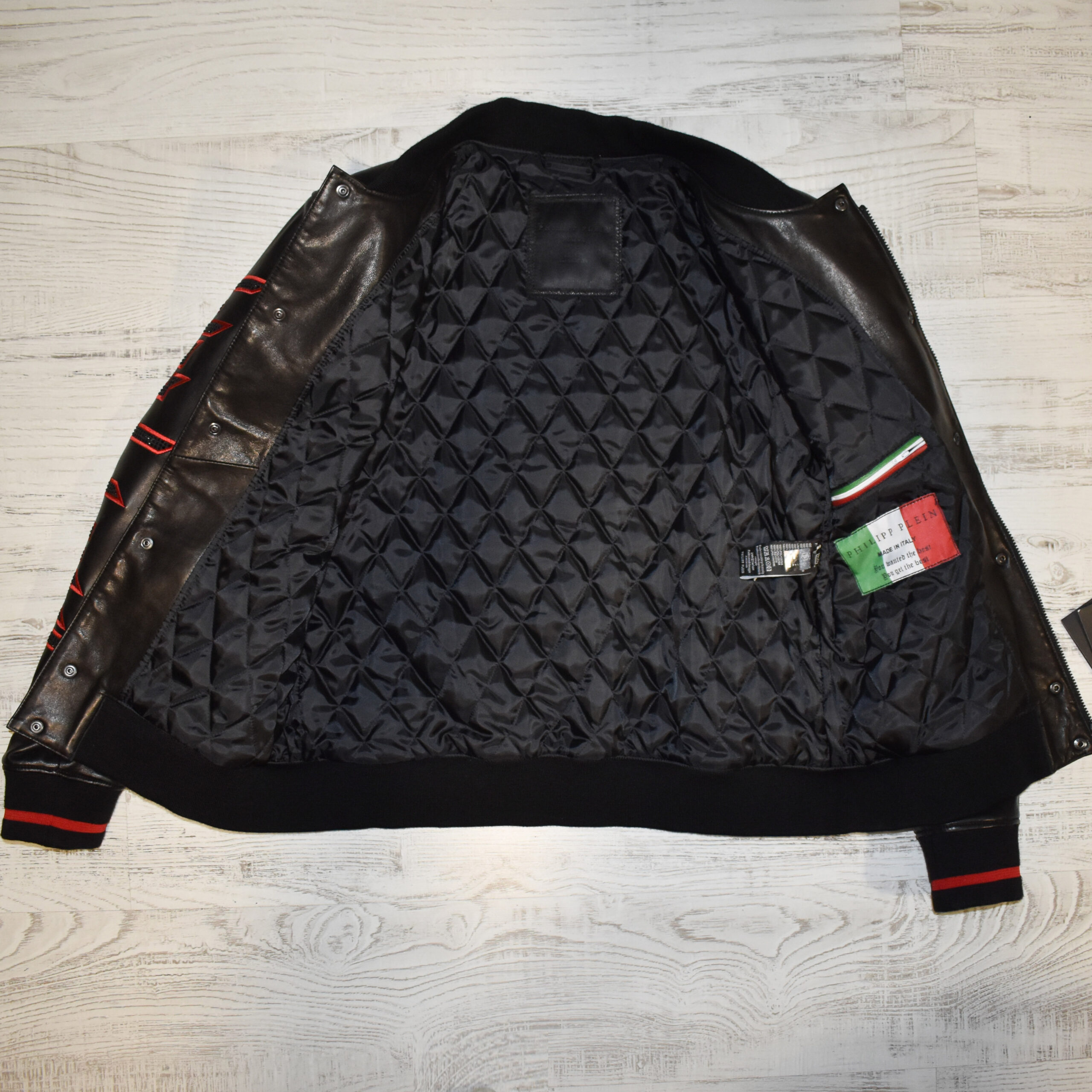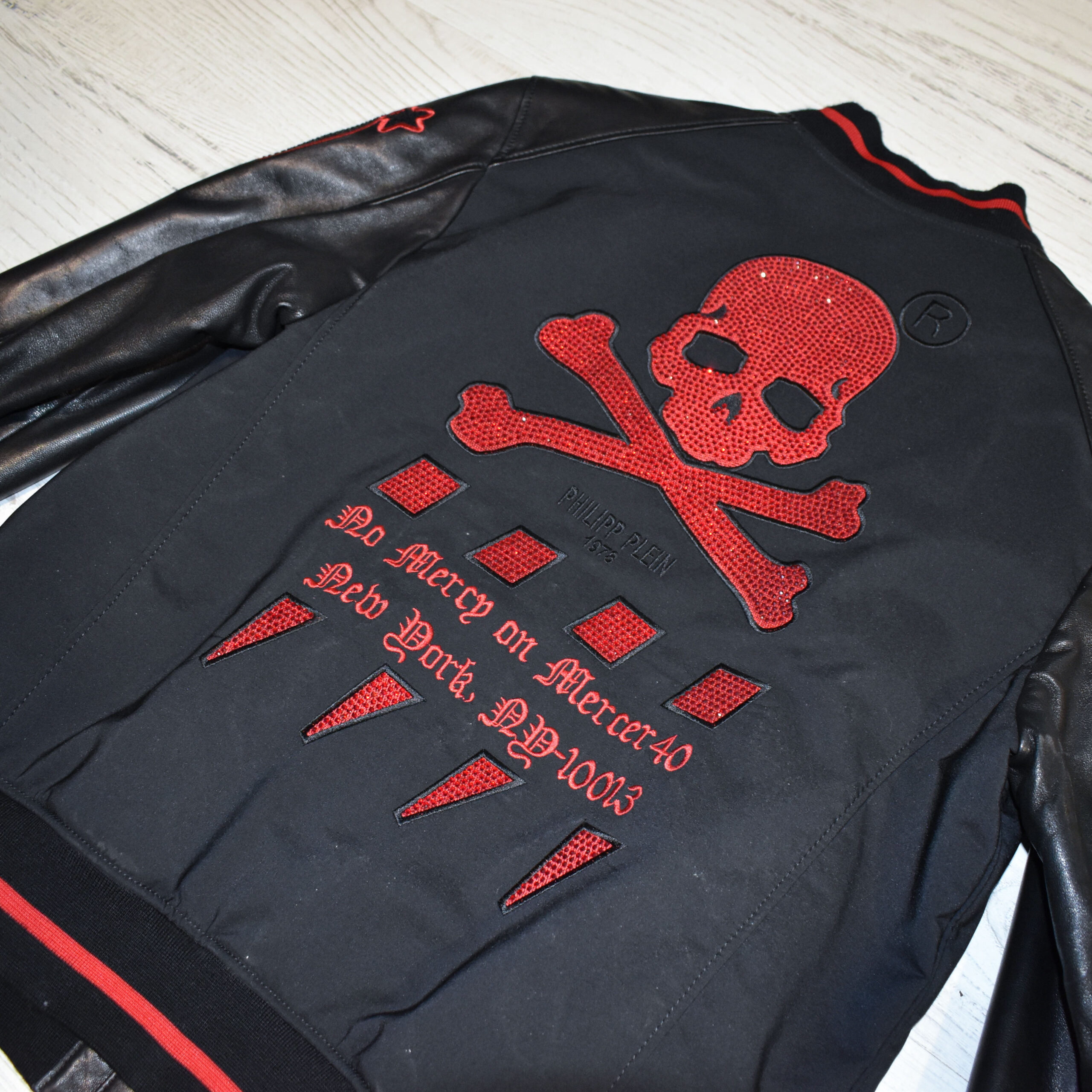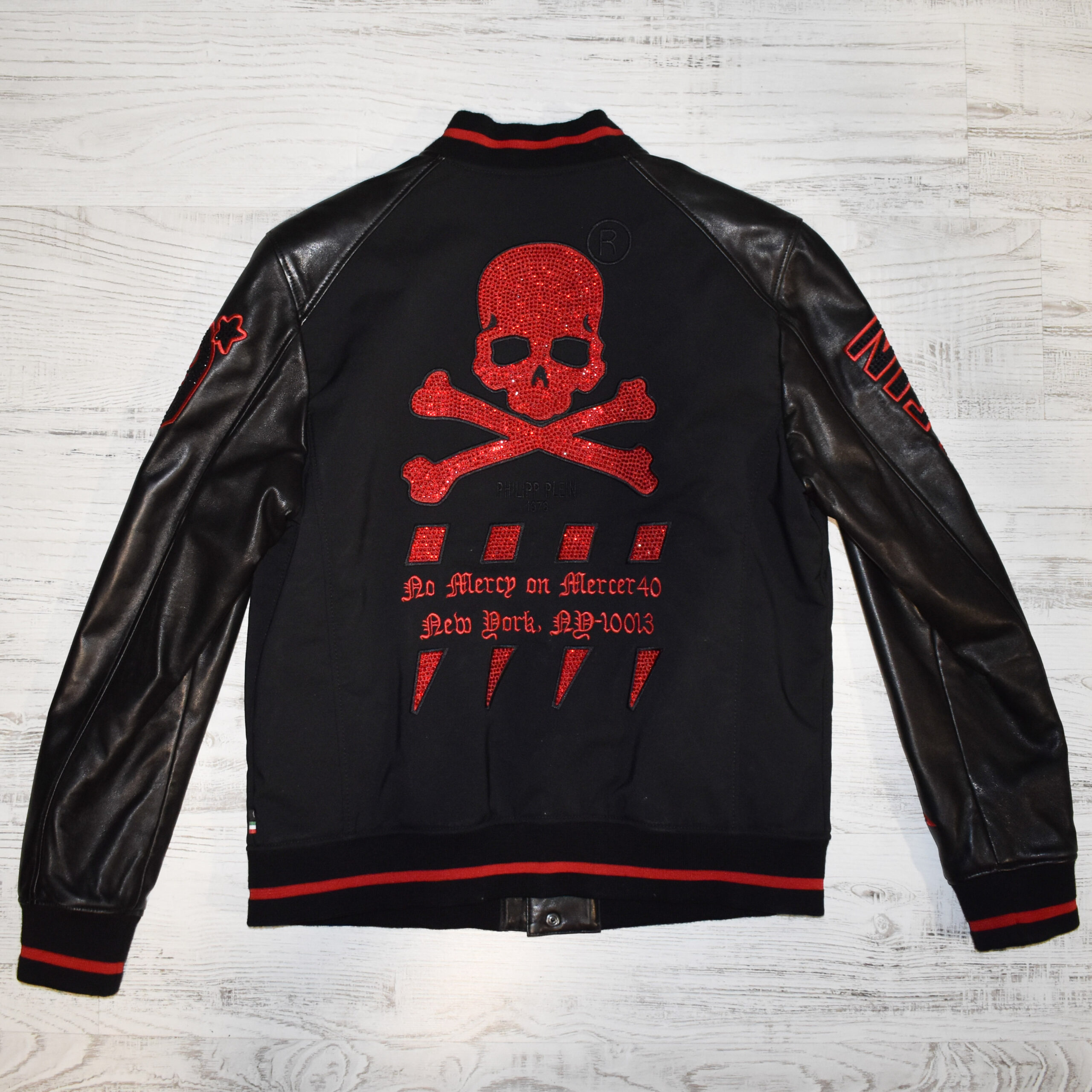 Philipp Plein Crystal Skull Printed Leather Jacket