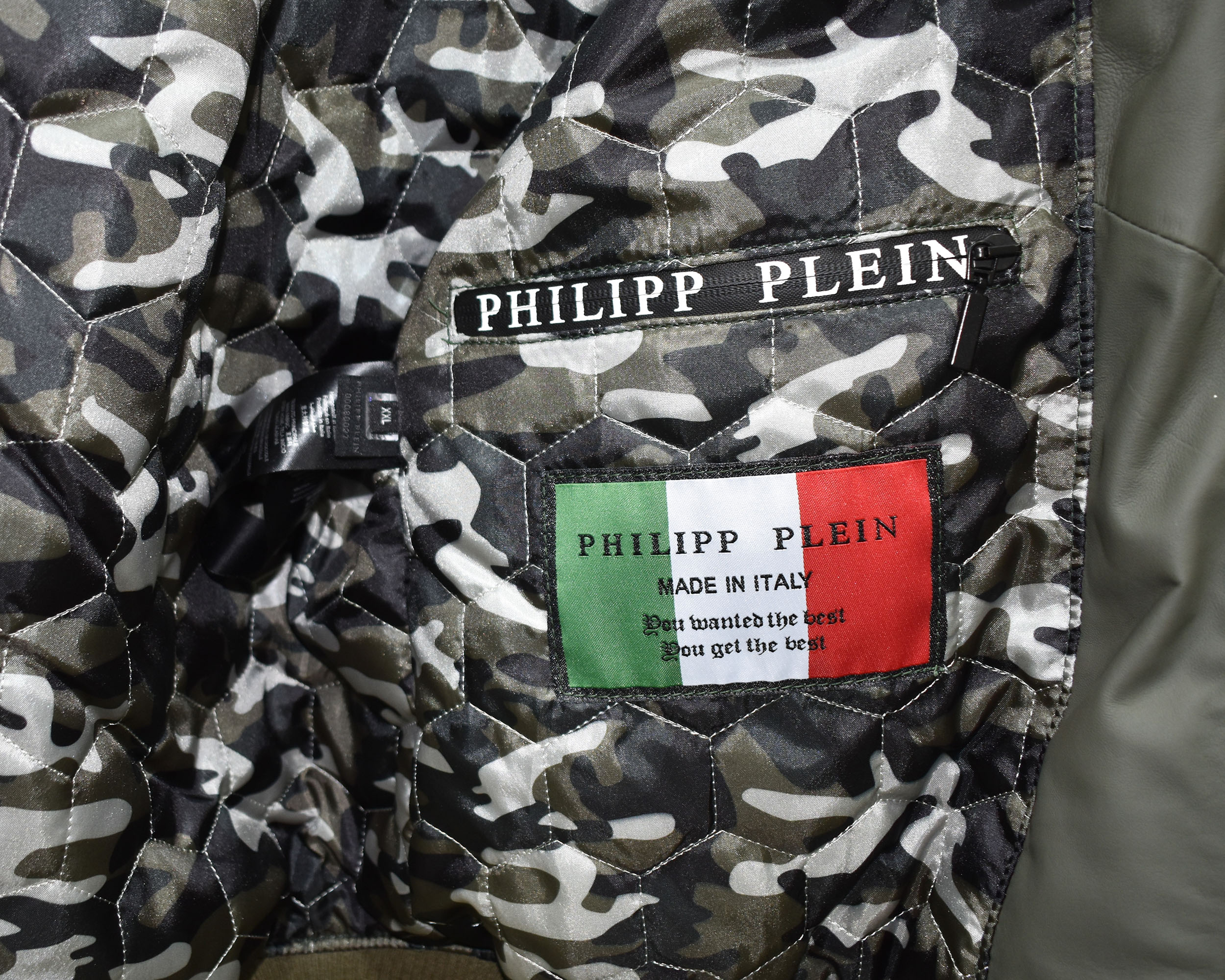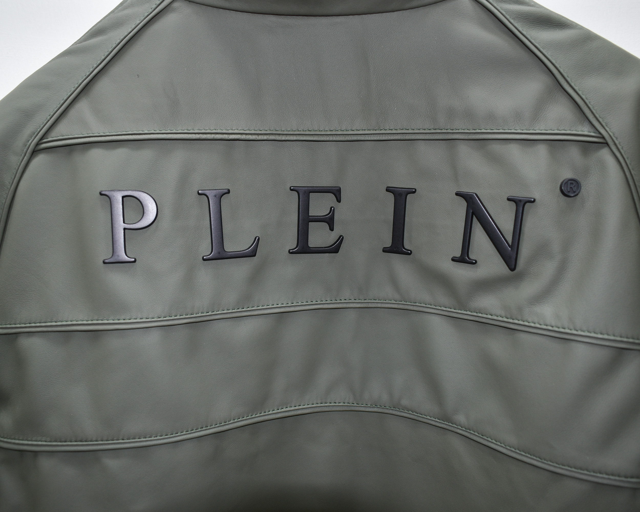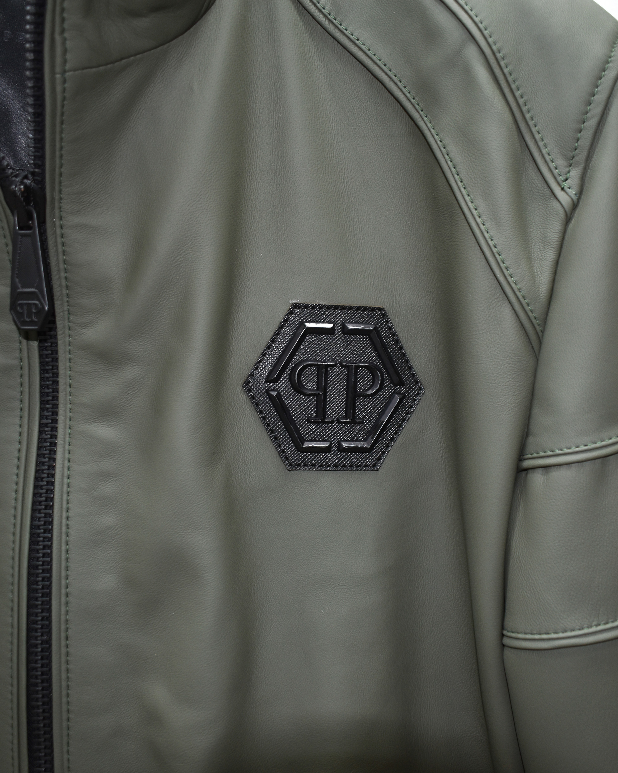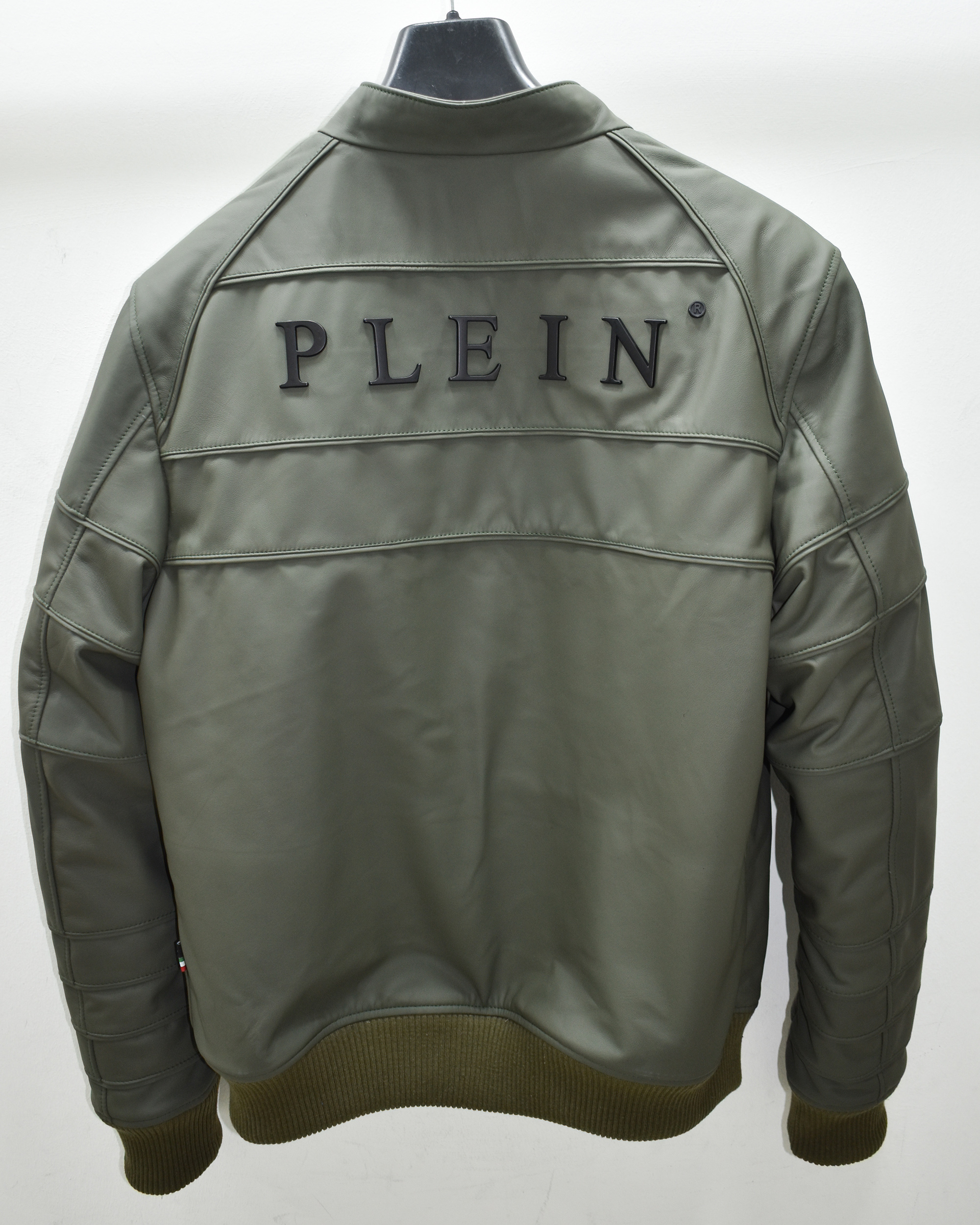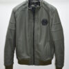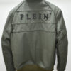 Philipp Plein Green Leather Bomber Jacket