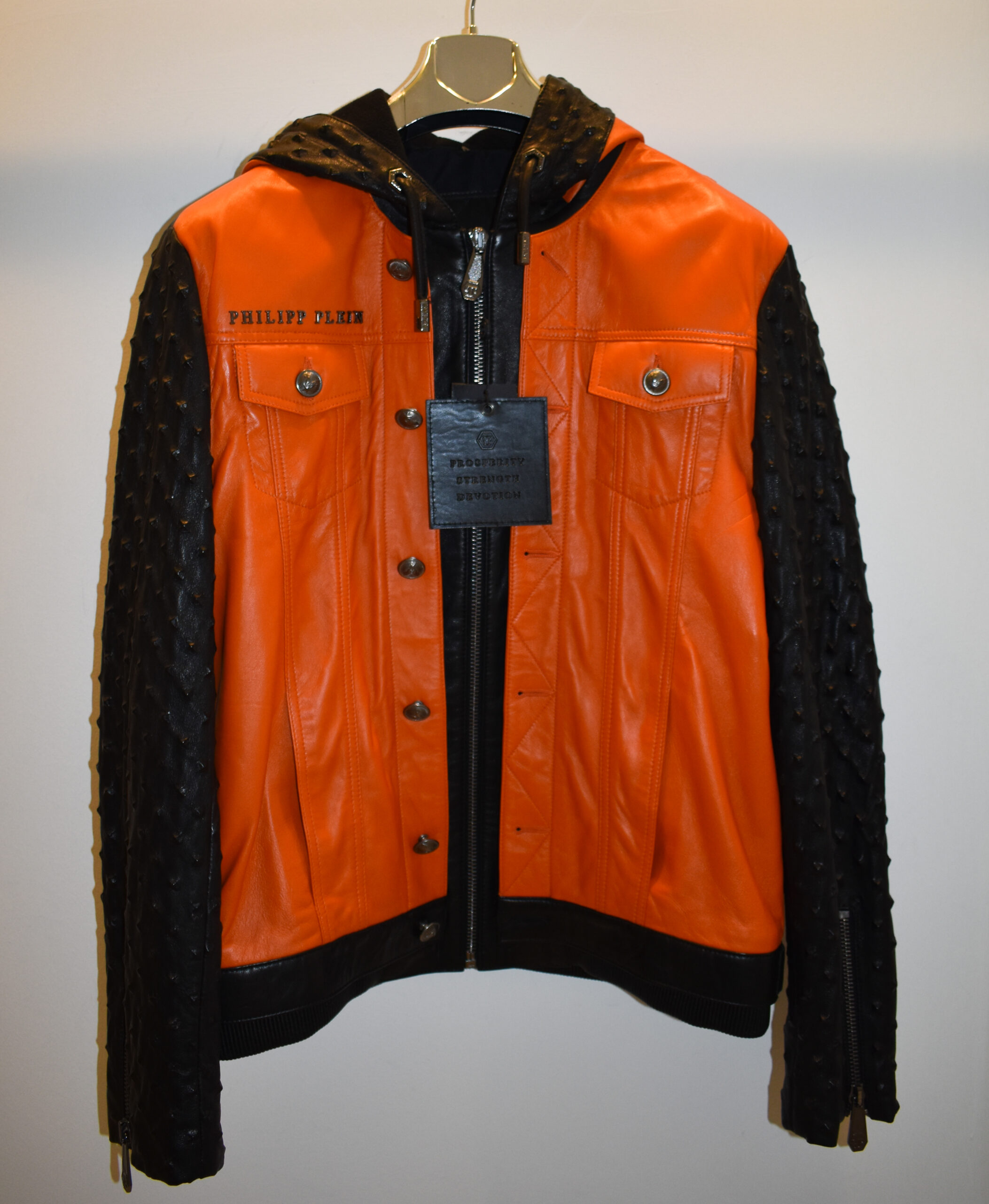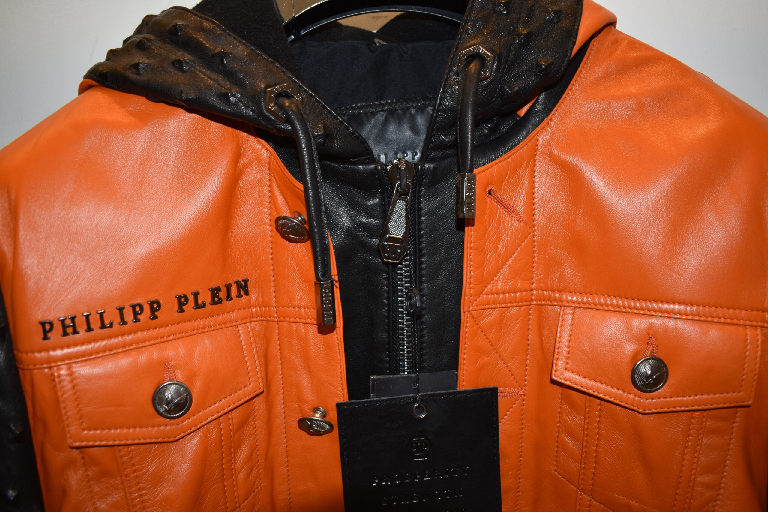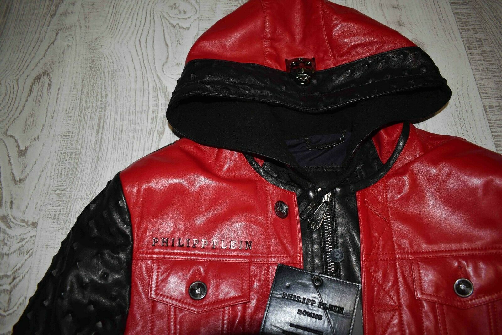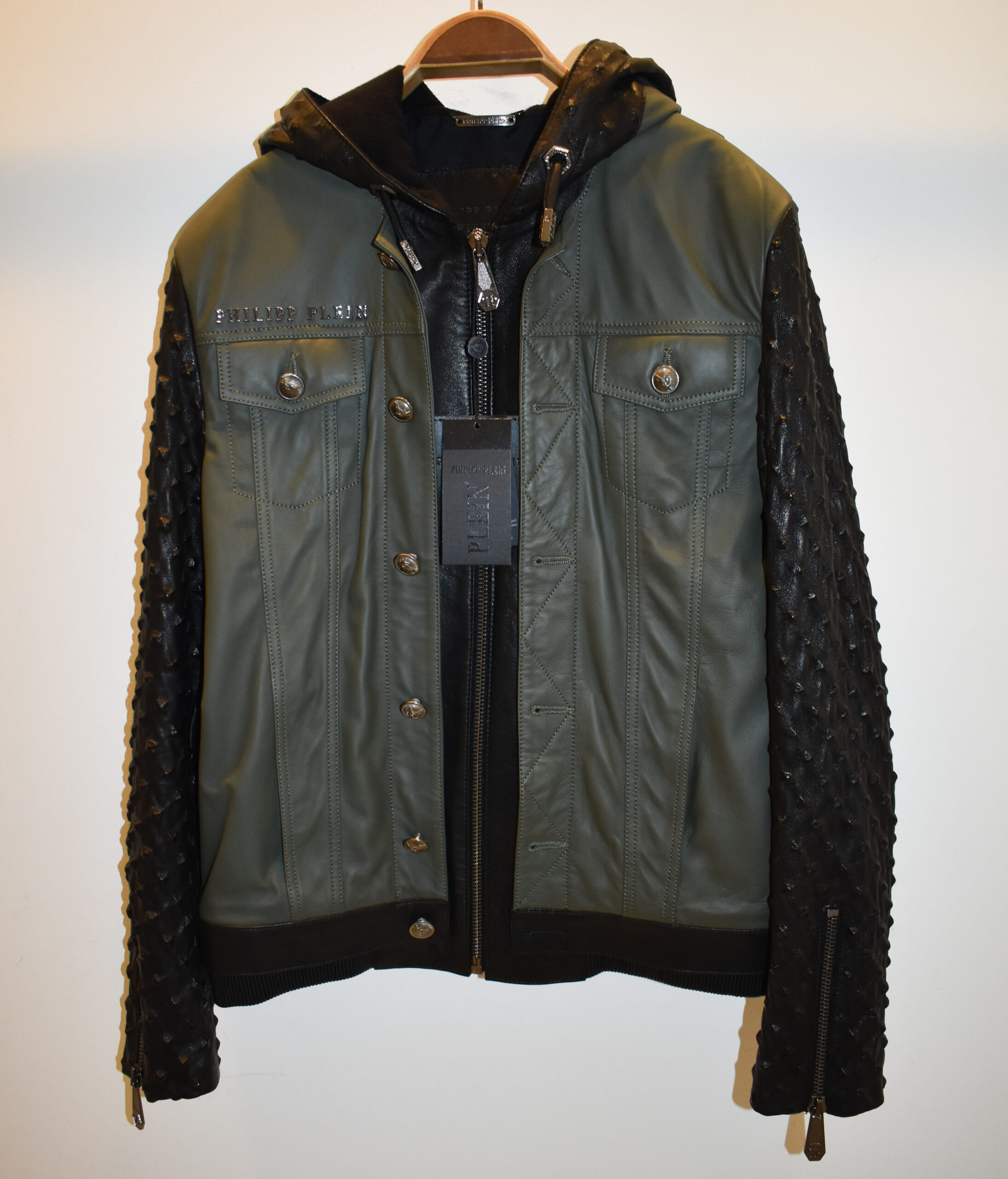 Philipp Plein Leather Hoodie Jacket