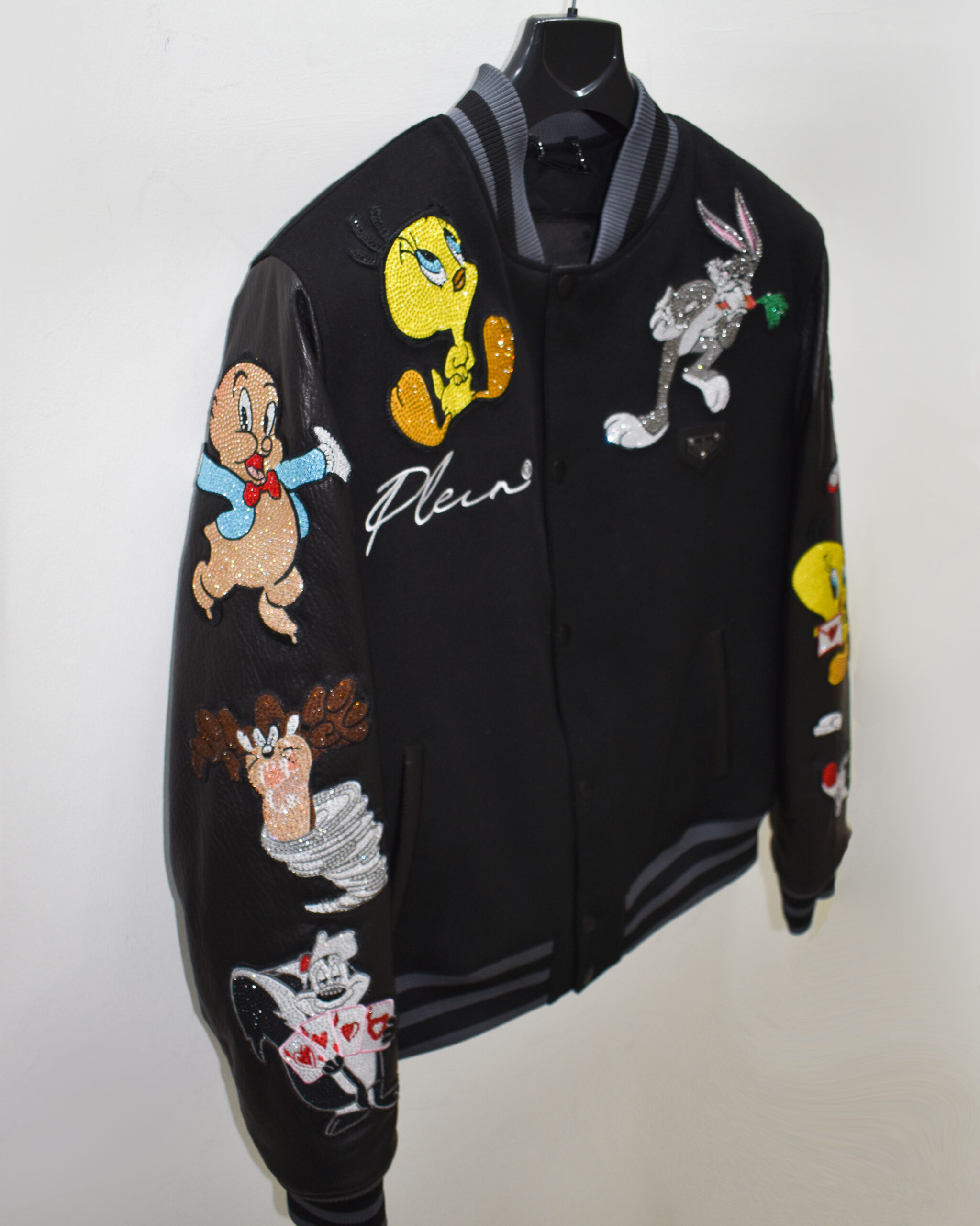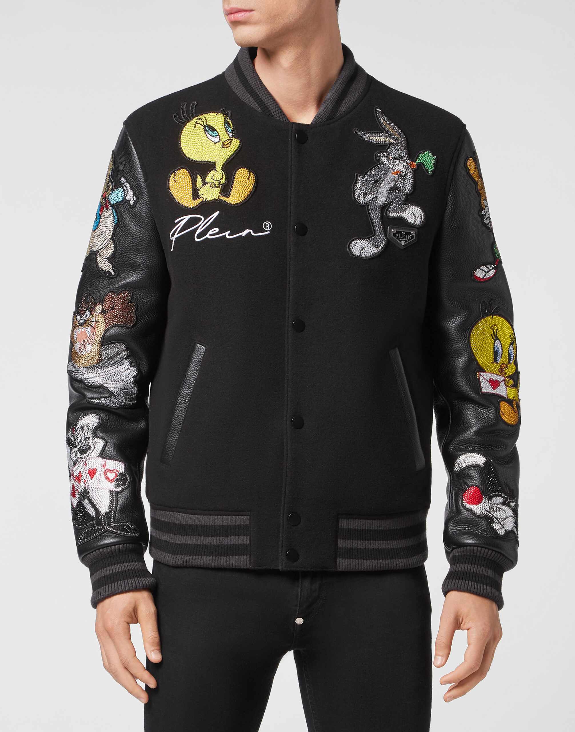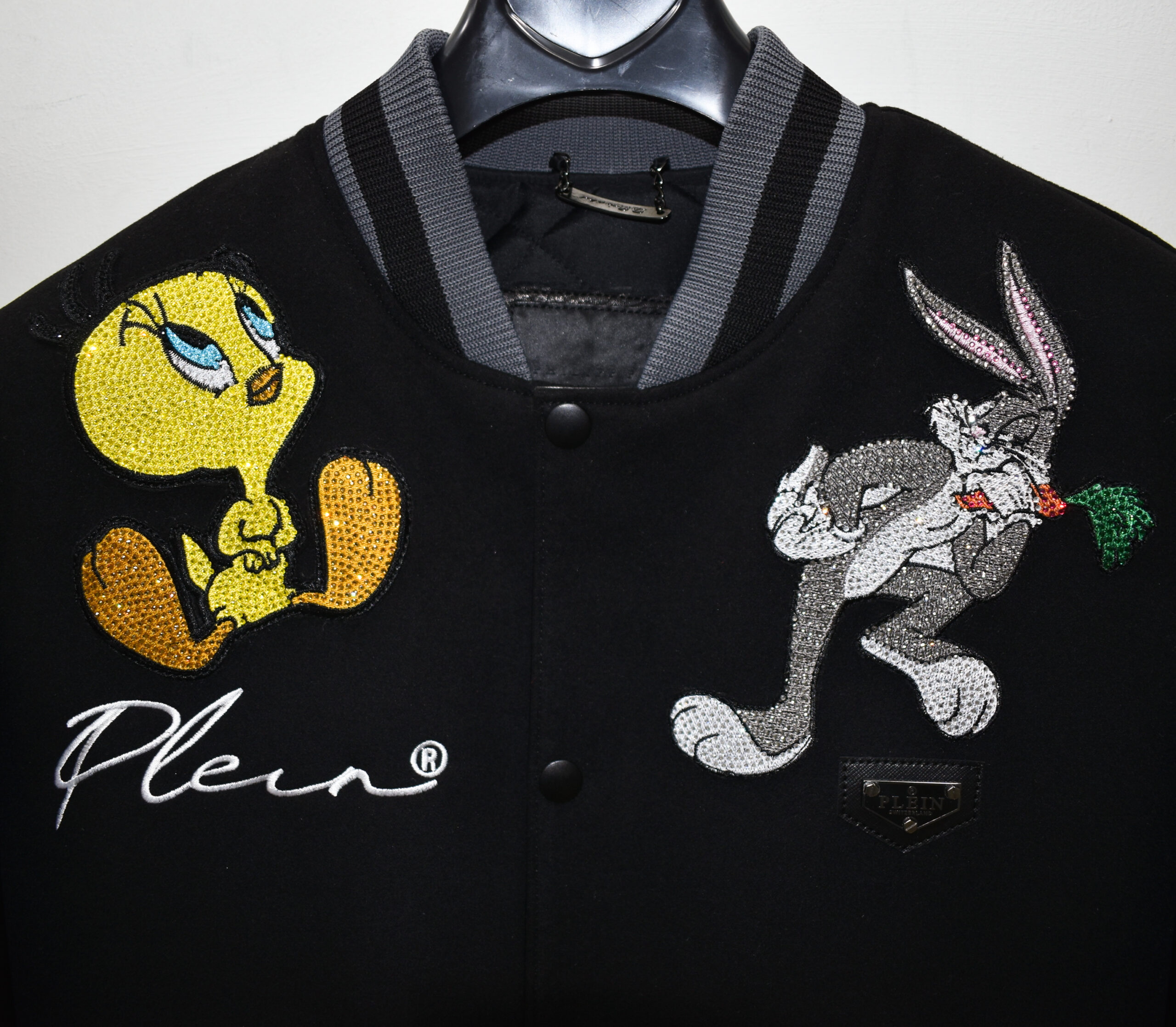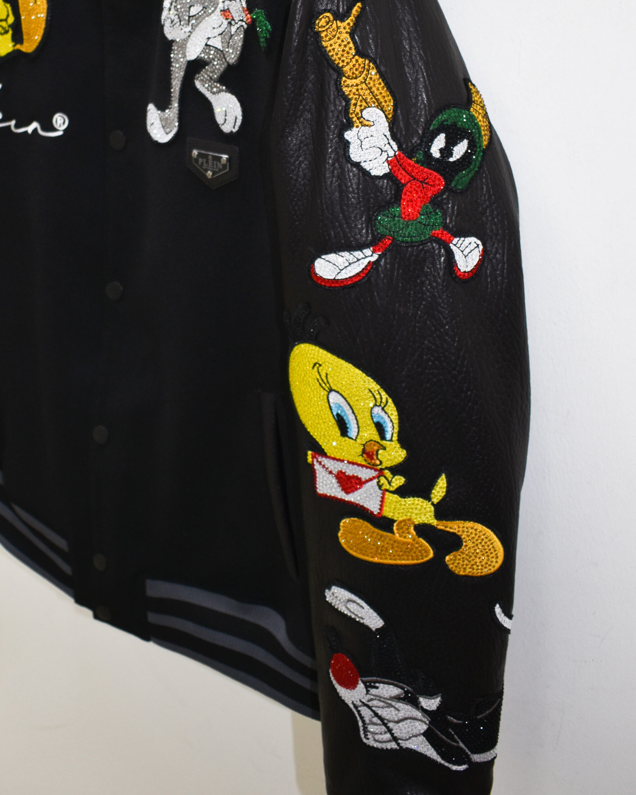 Philipp Plein Leather Sleeves Looney Tunes Jacket