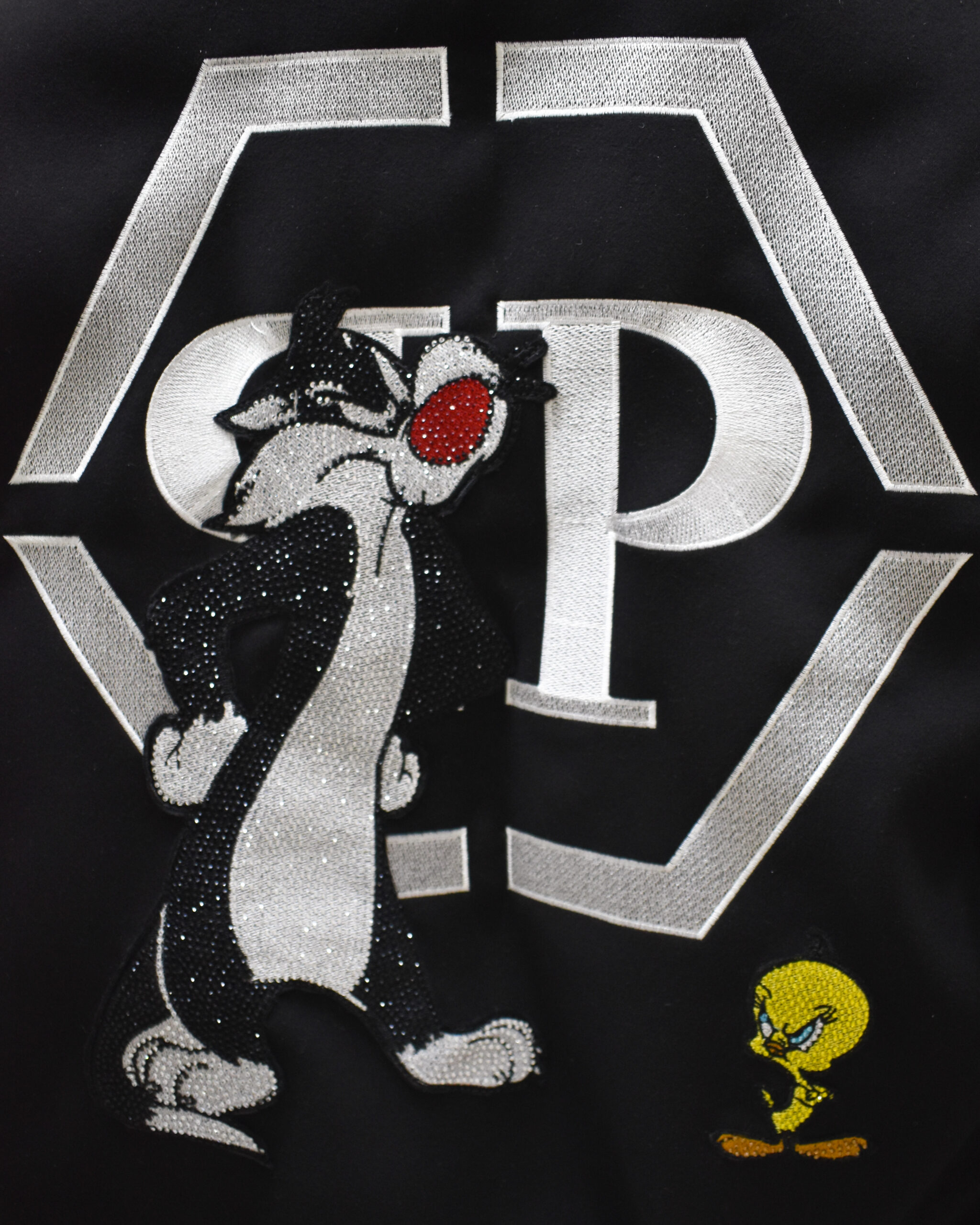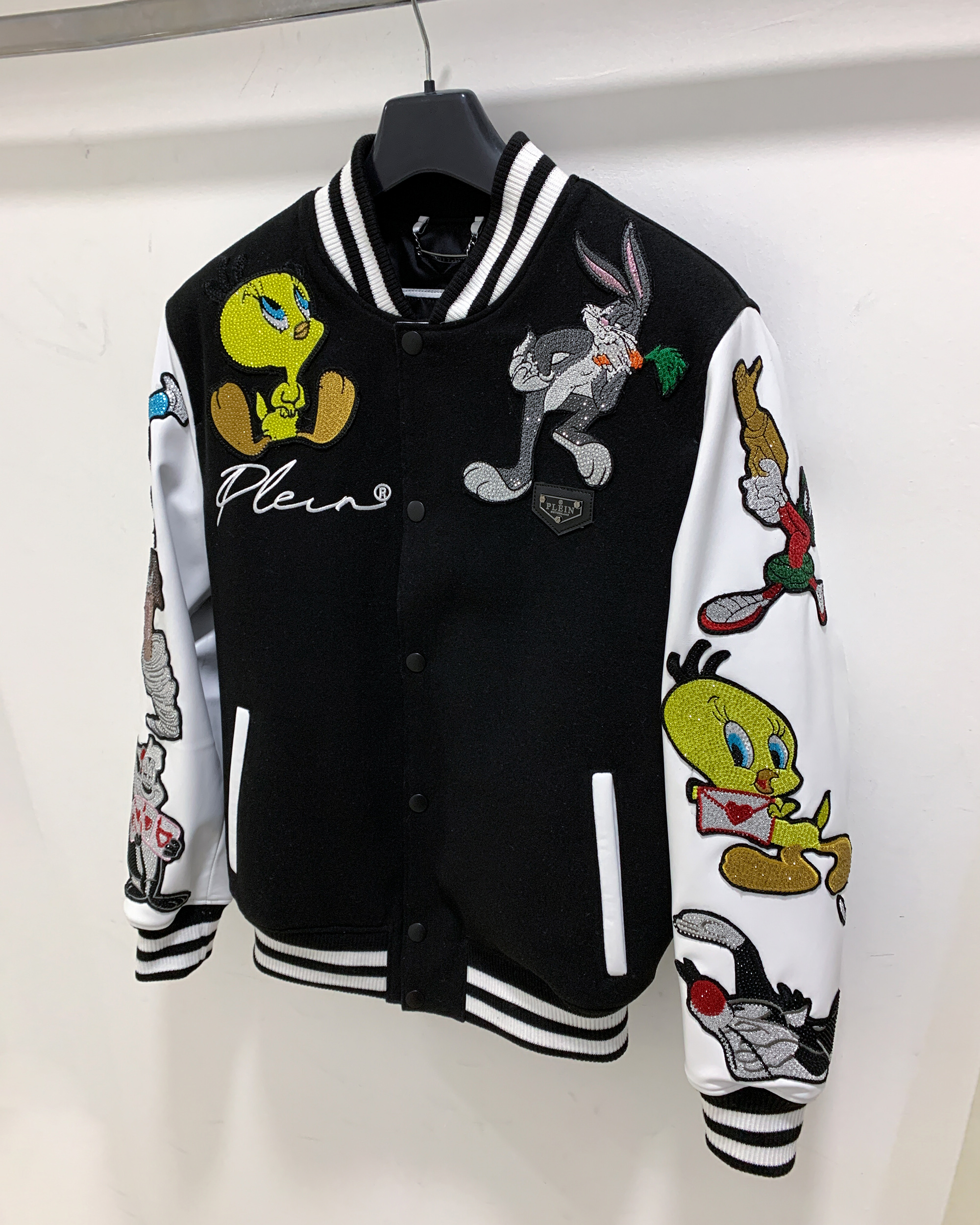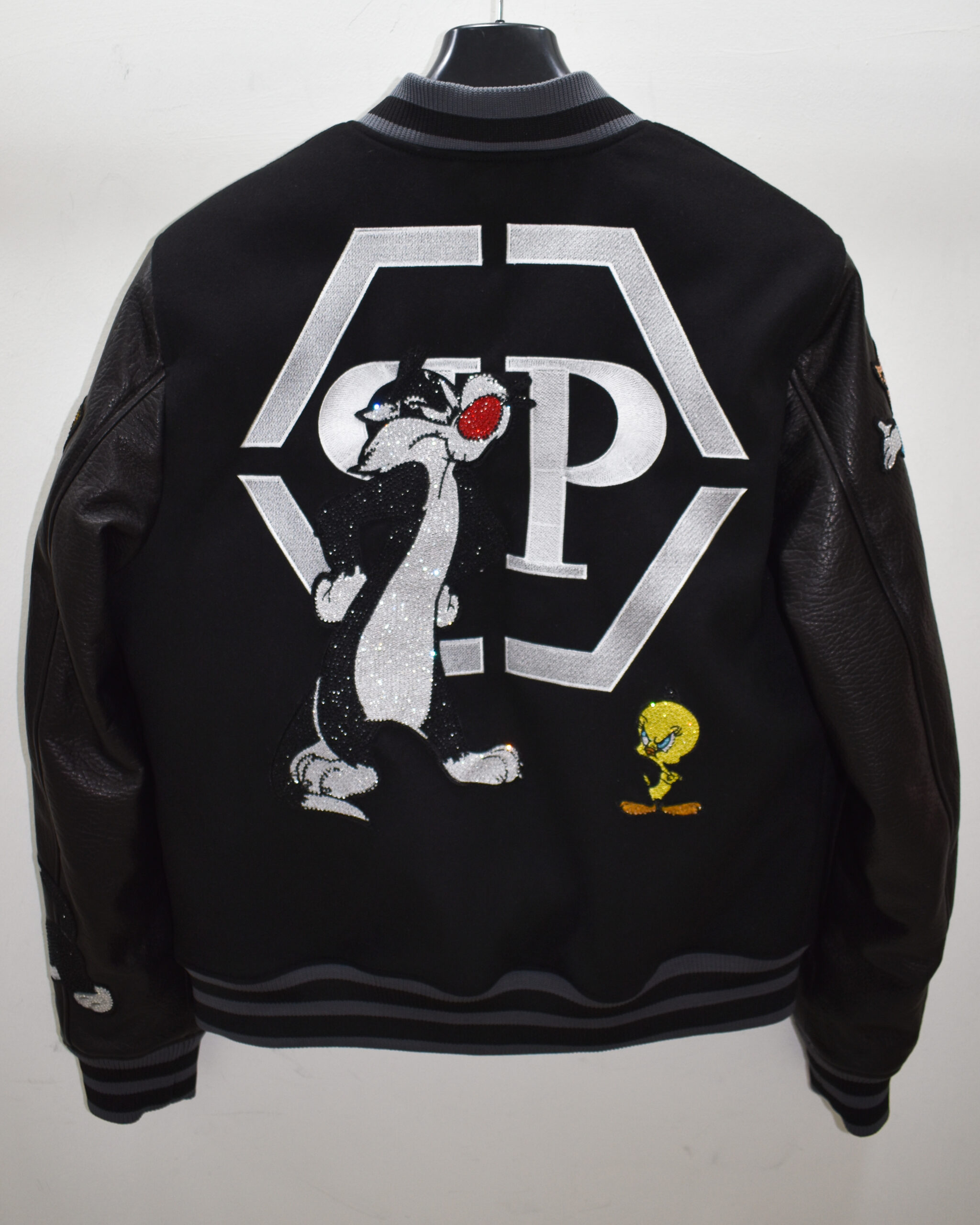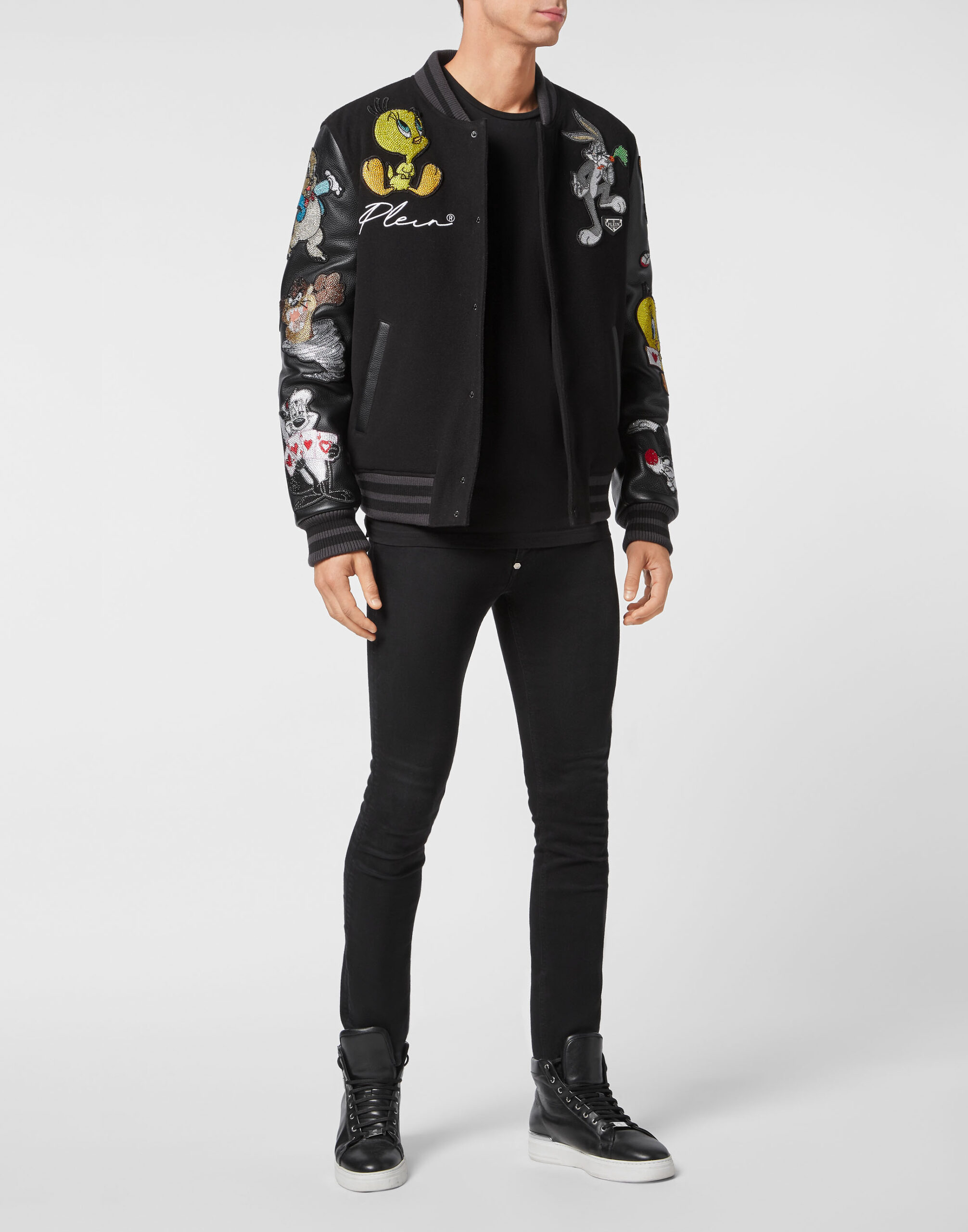 Philipp Plein Leather Sleeves Looney Tunes Jacket