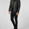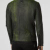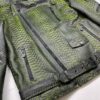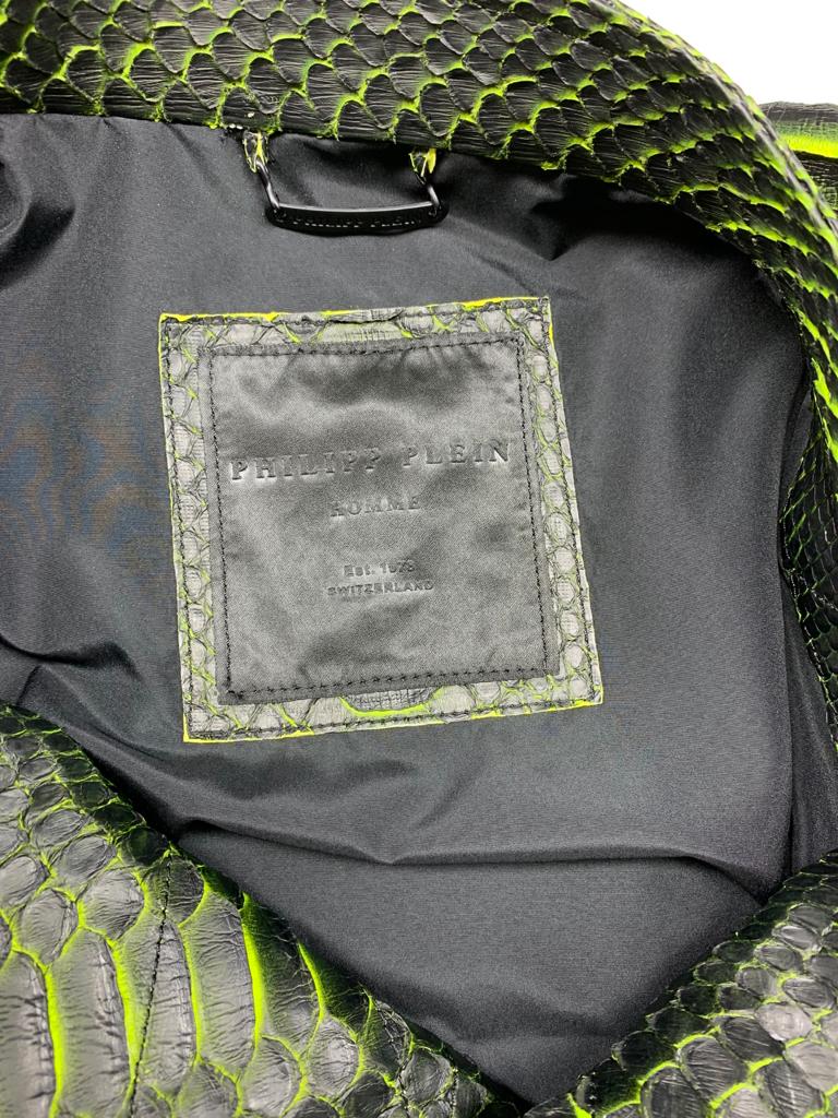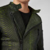 Philipp Plein Matte Black Green Snake Skin Biker Jacket