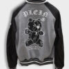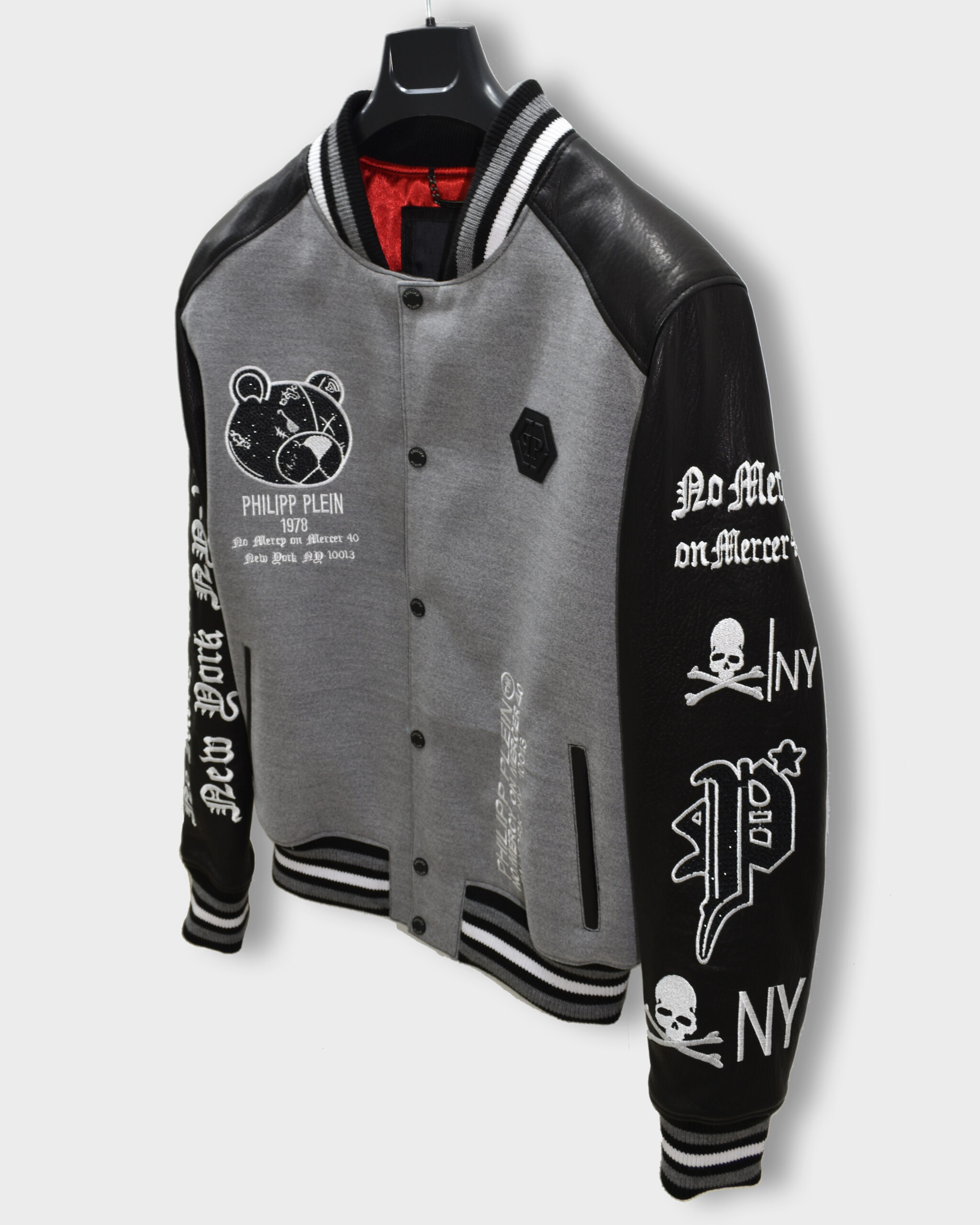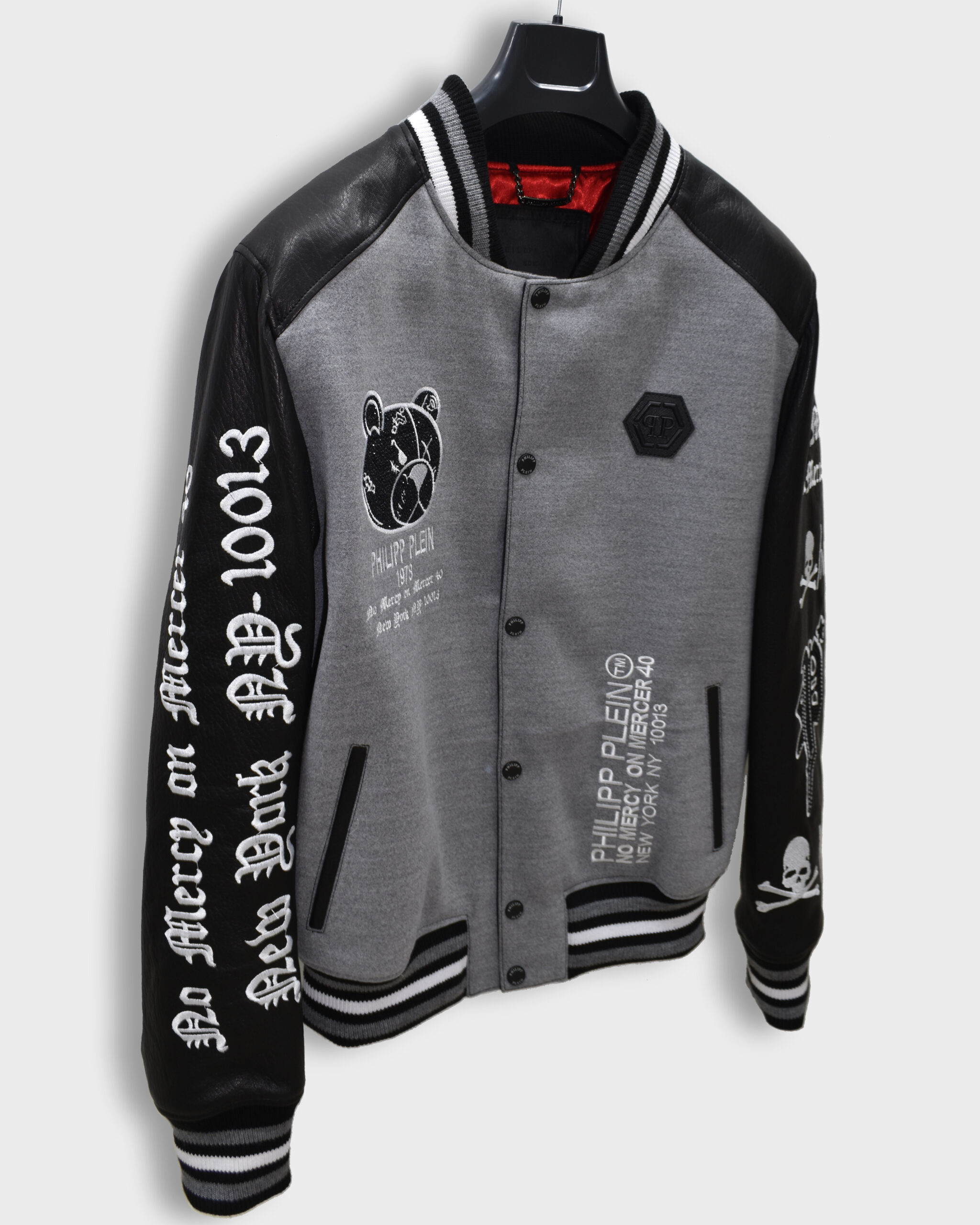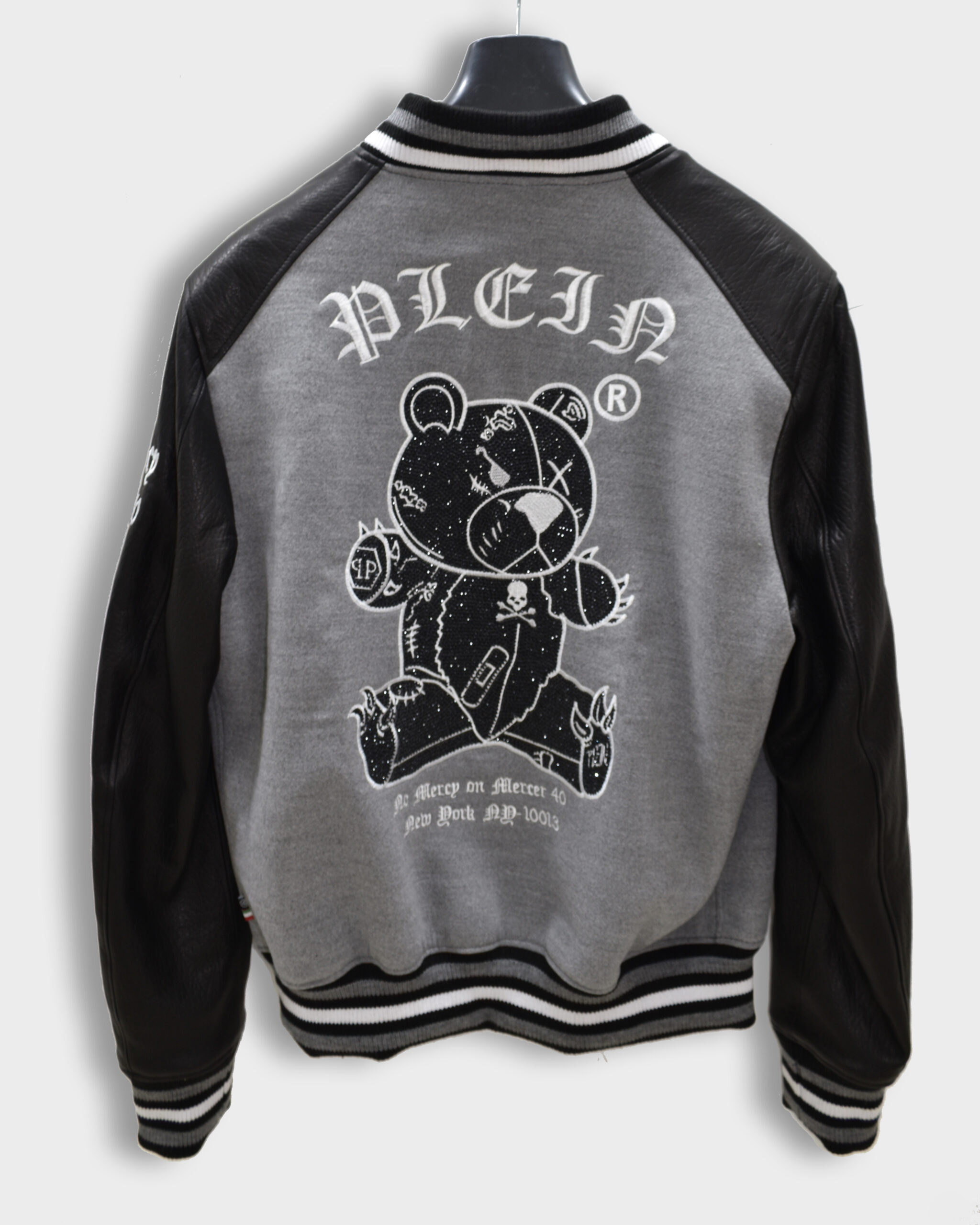 Philipp Plein Teddy Bear Grey Black Leather Jacket
