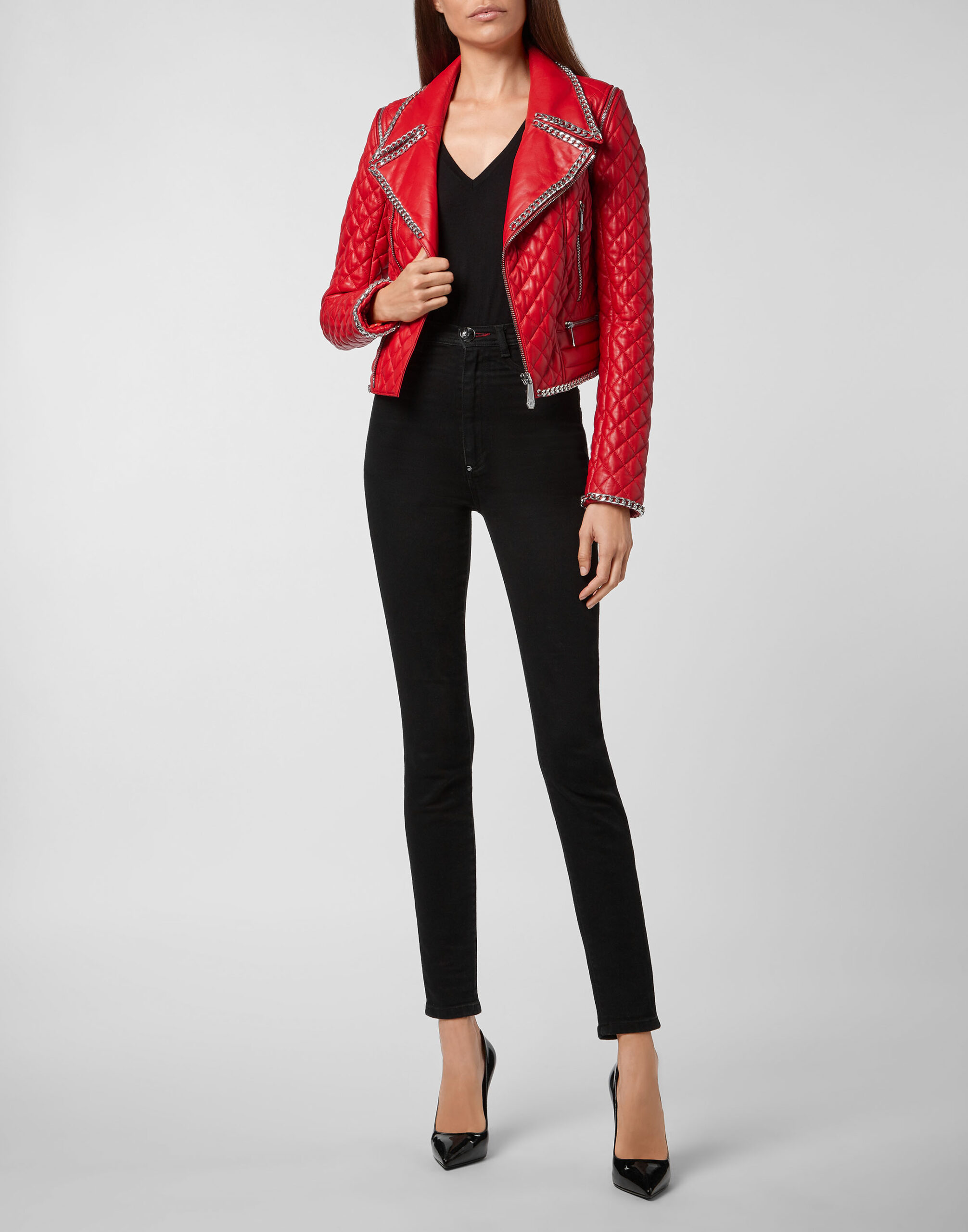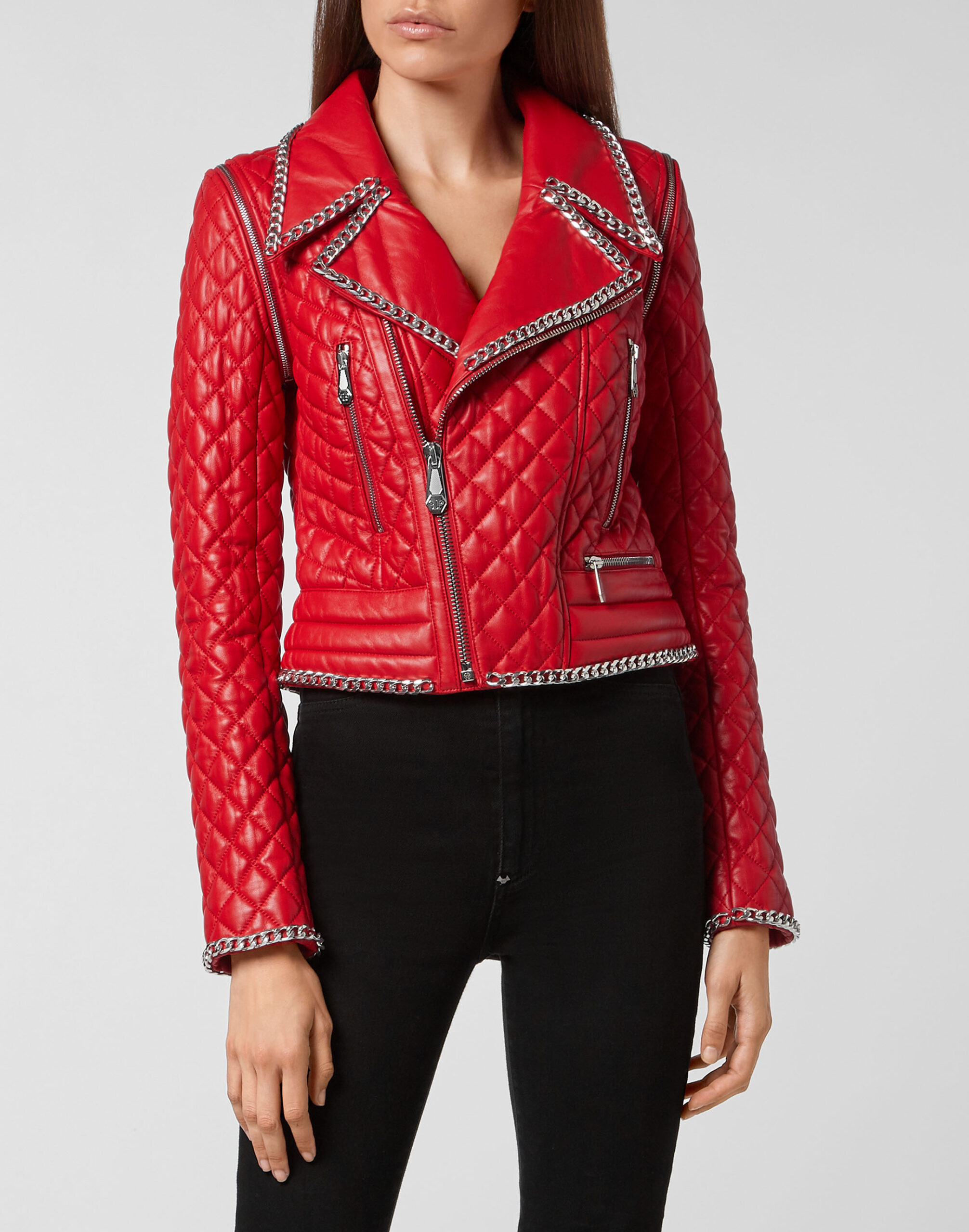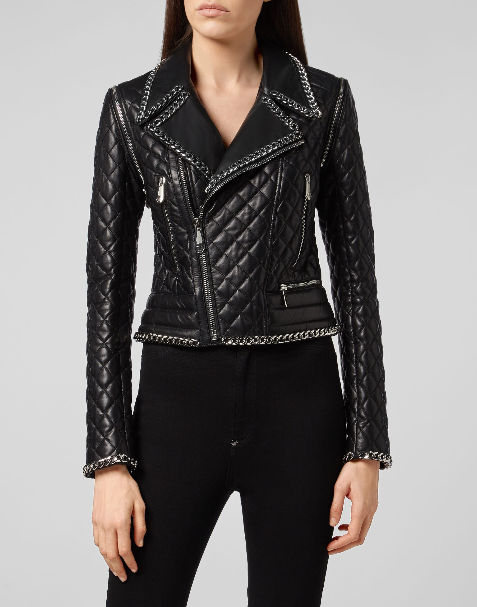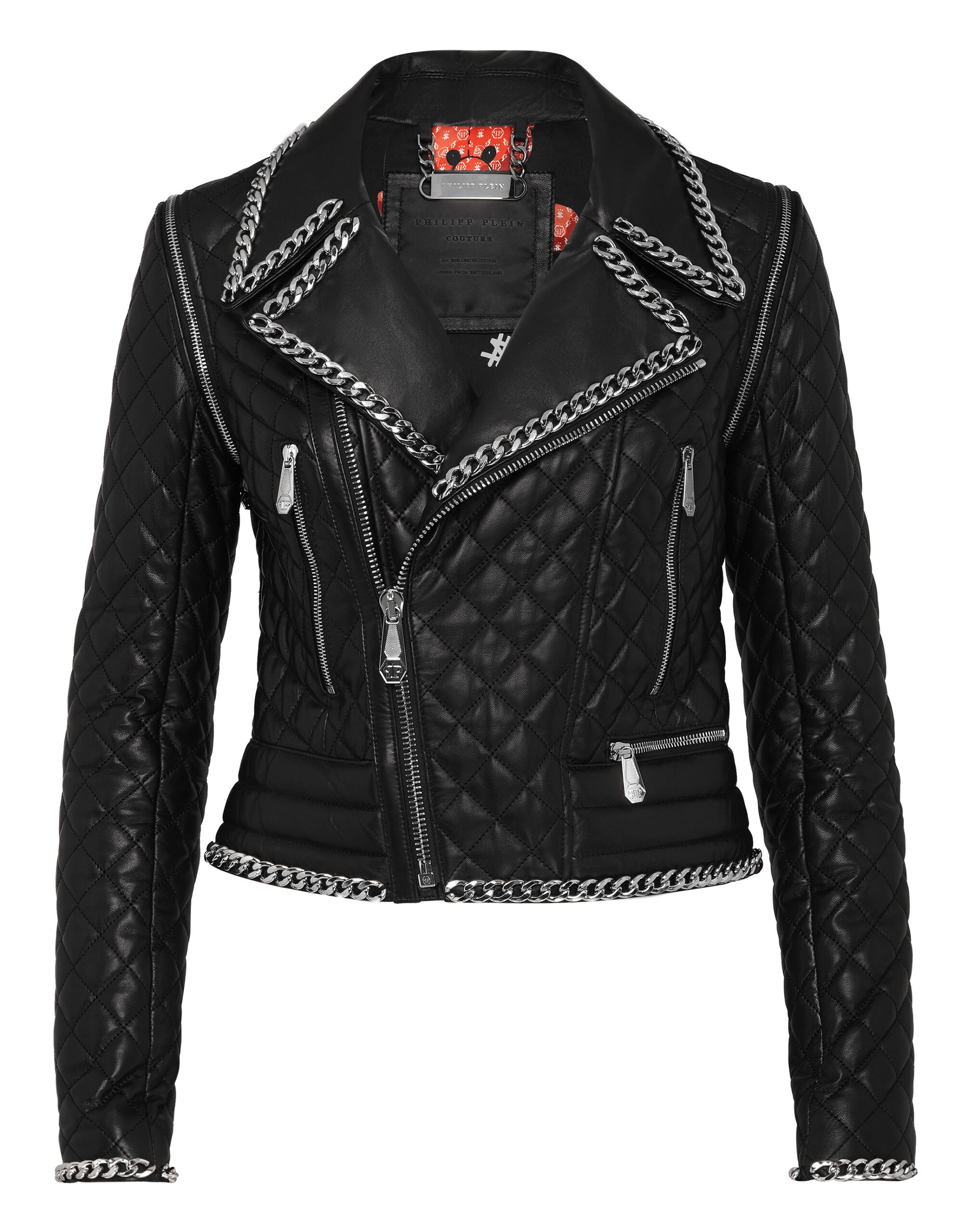 Philipp Plein Teddy Bear Women’s Leather Biker Jacket