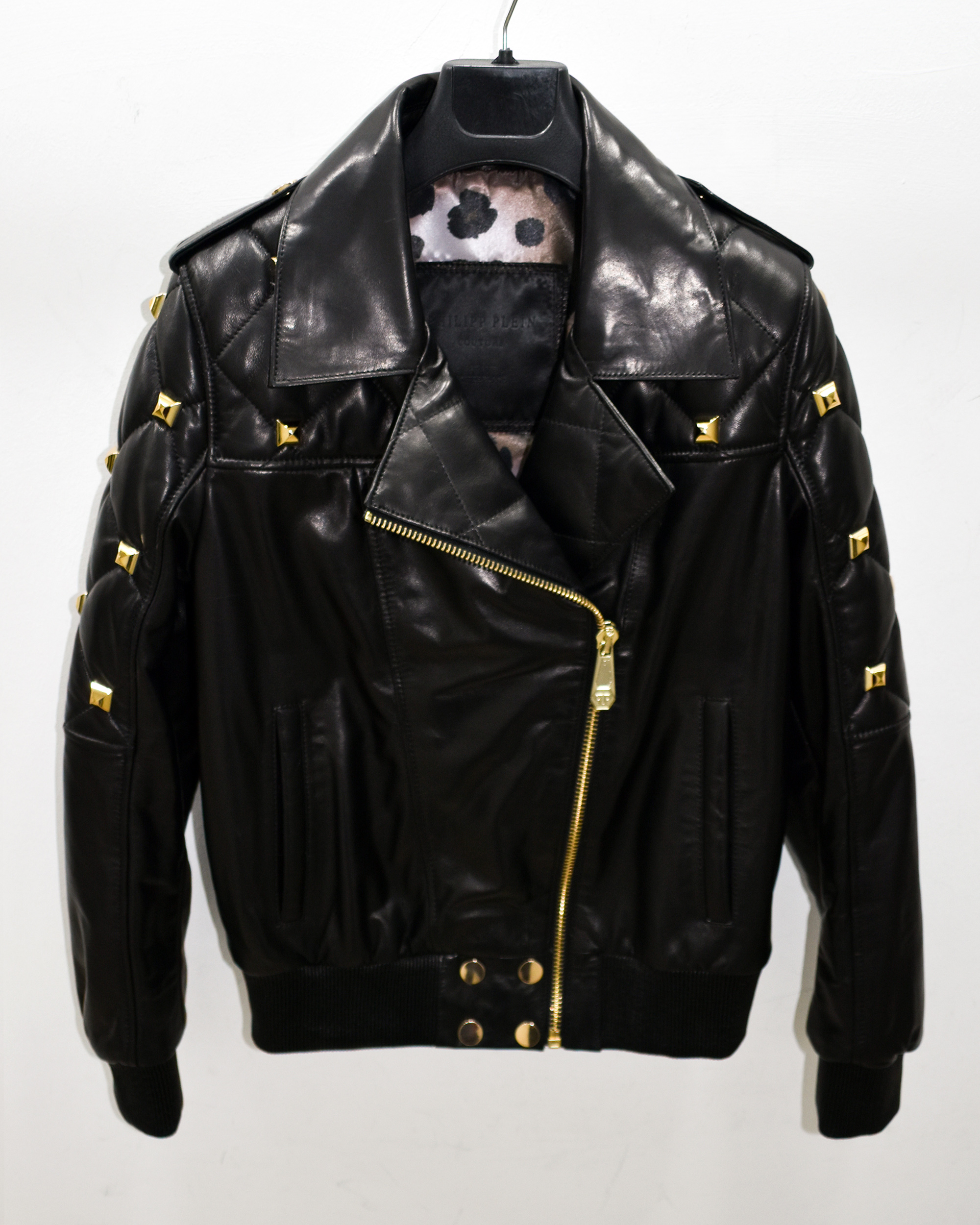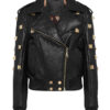 Philipp Plein Women Black Studded Leather Biker Jacket