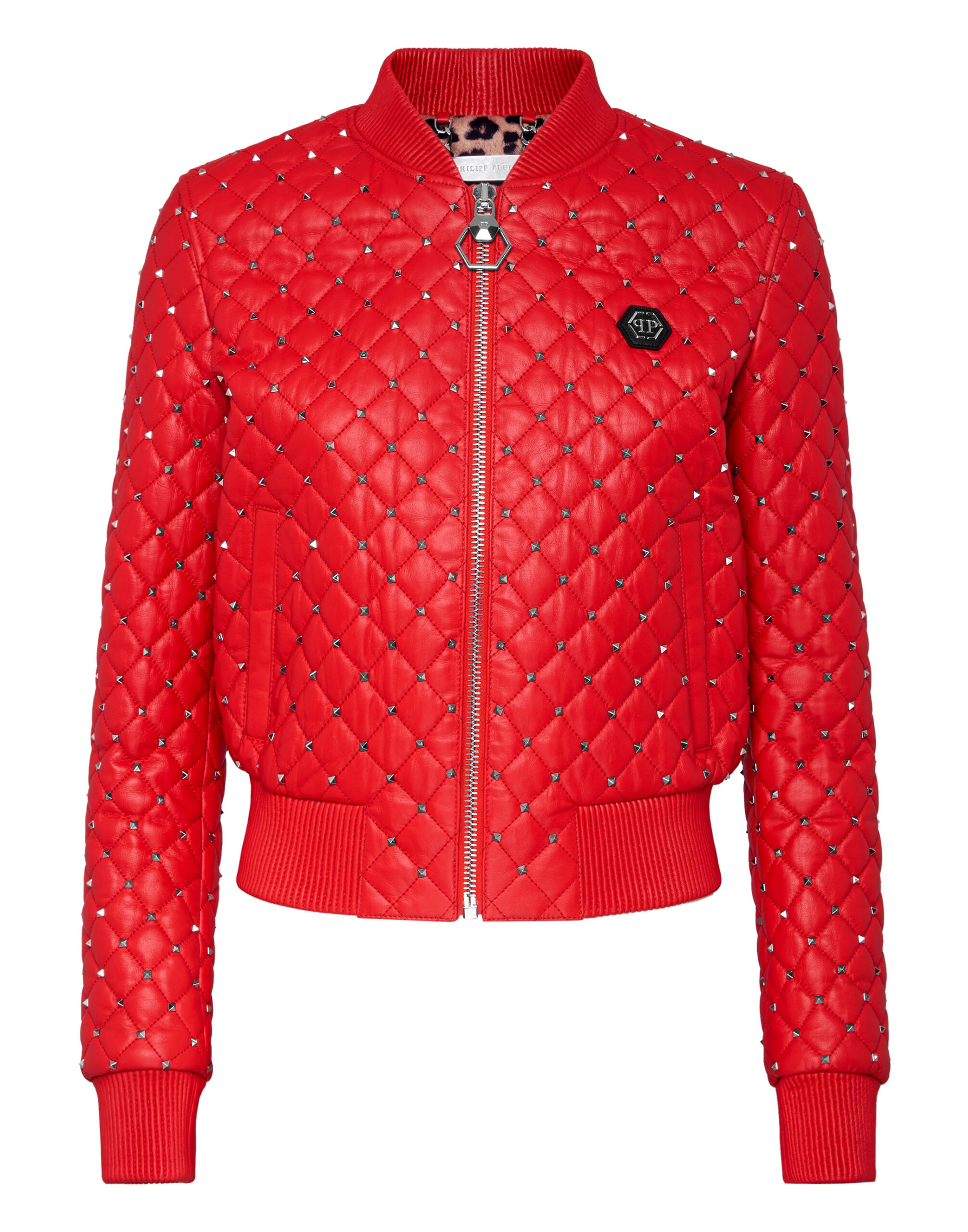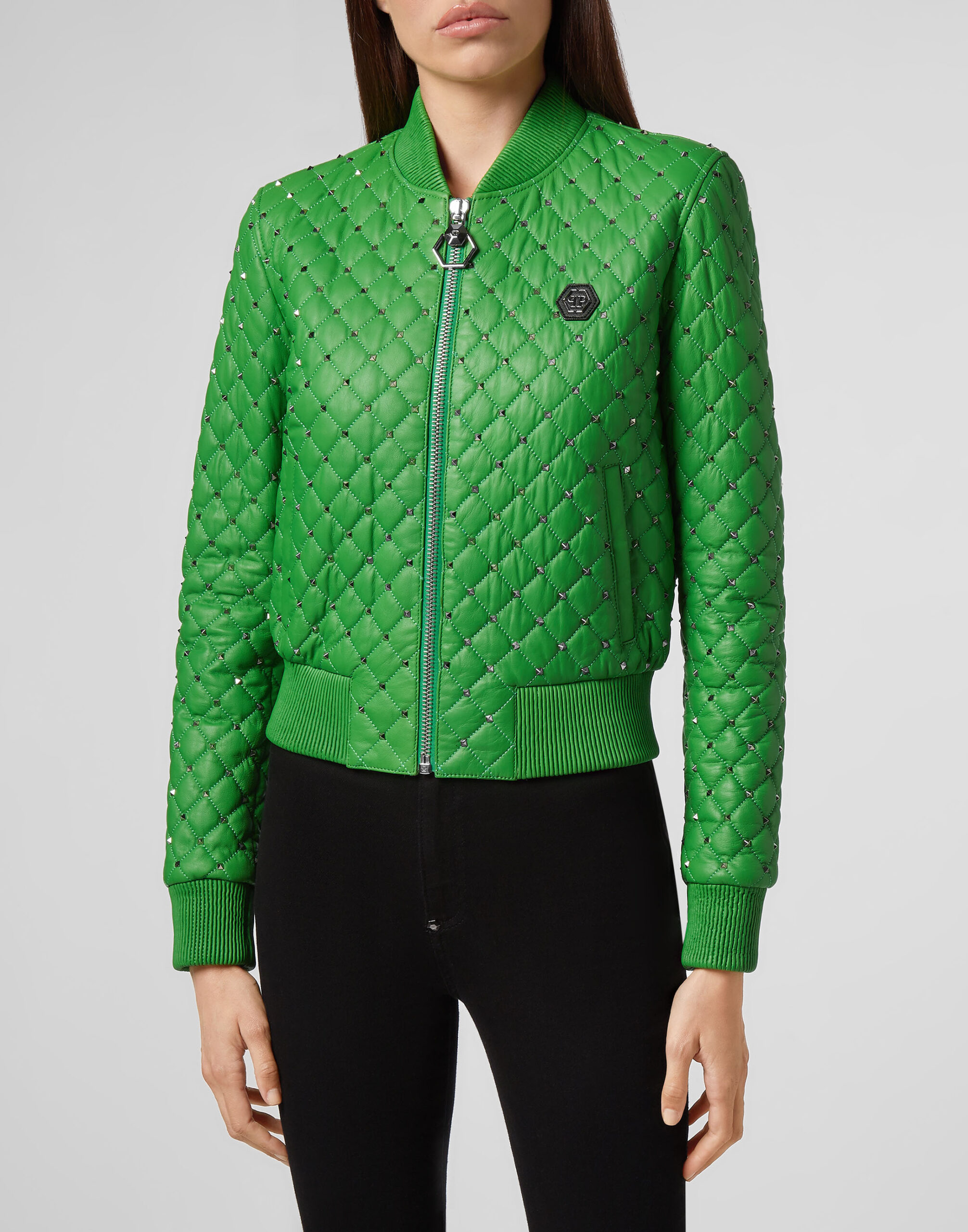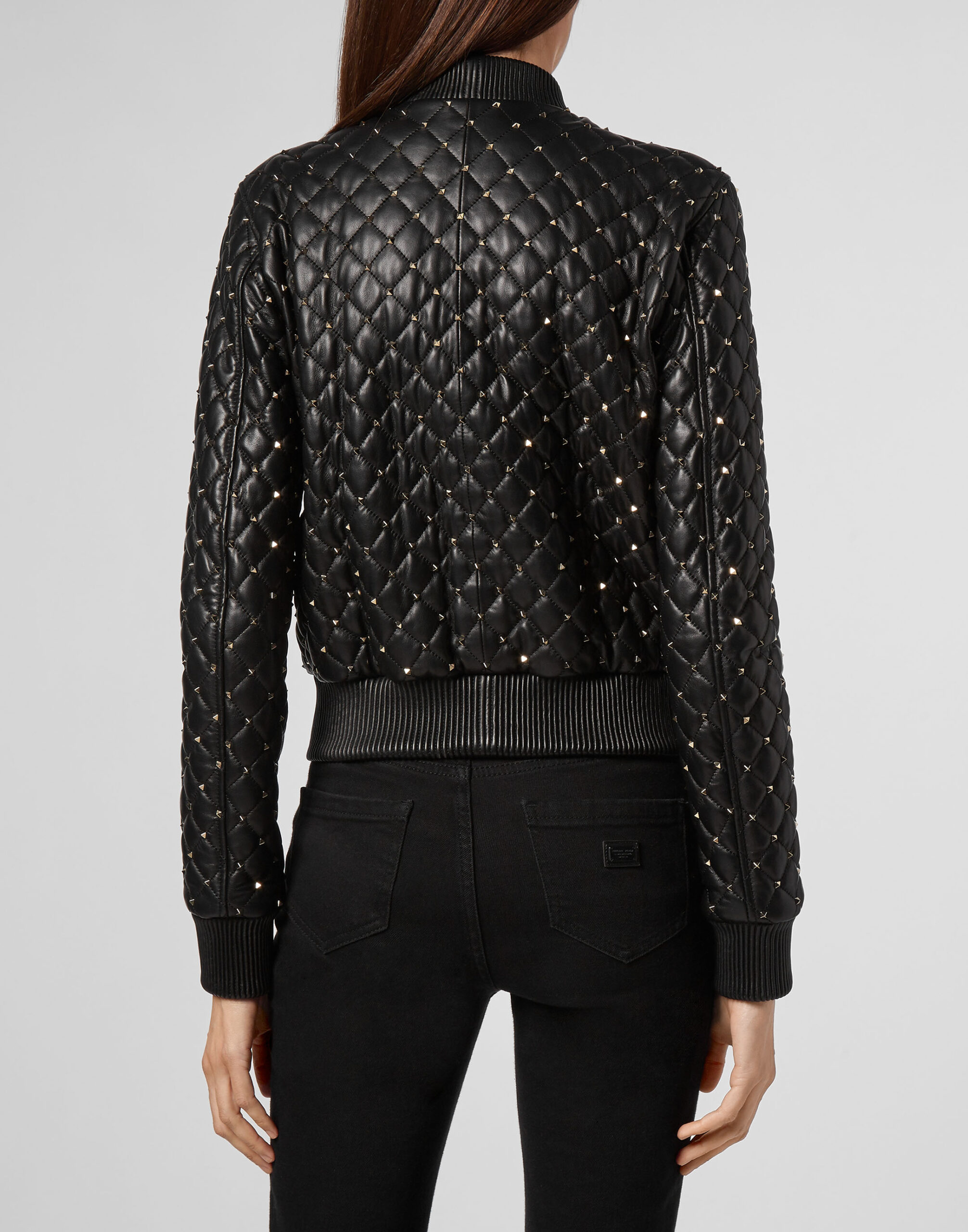 Philipp Plein Women’s Bomber Studded Leather Jacket