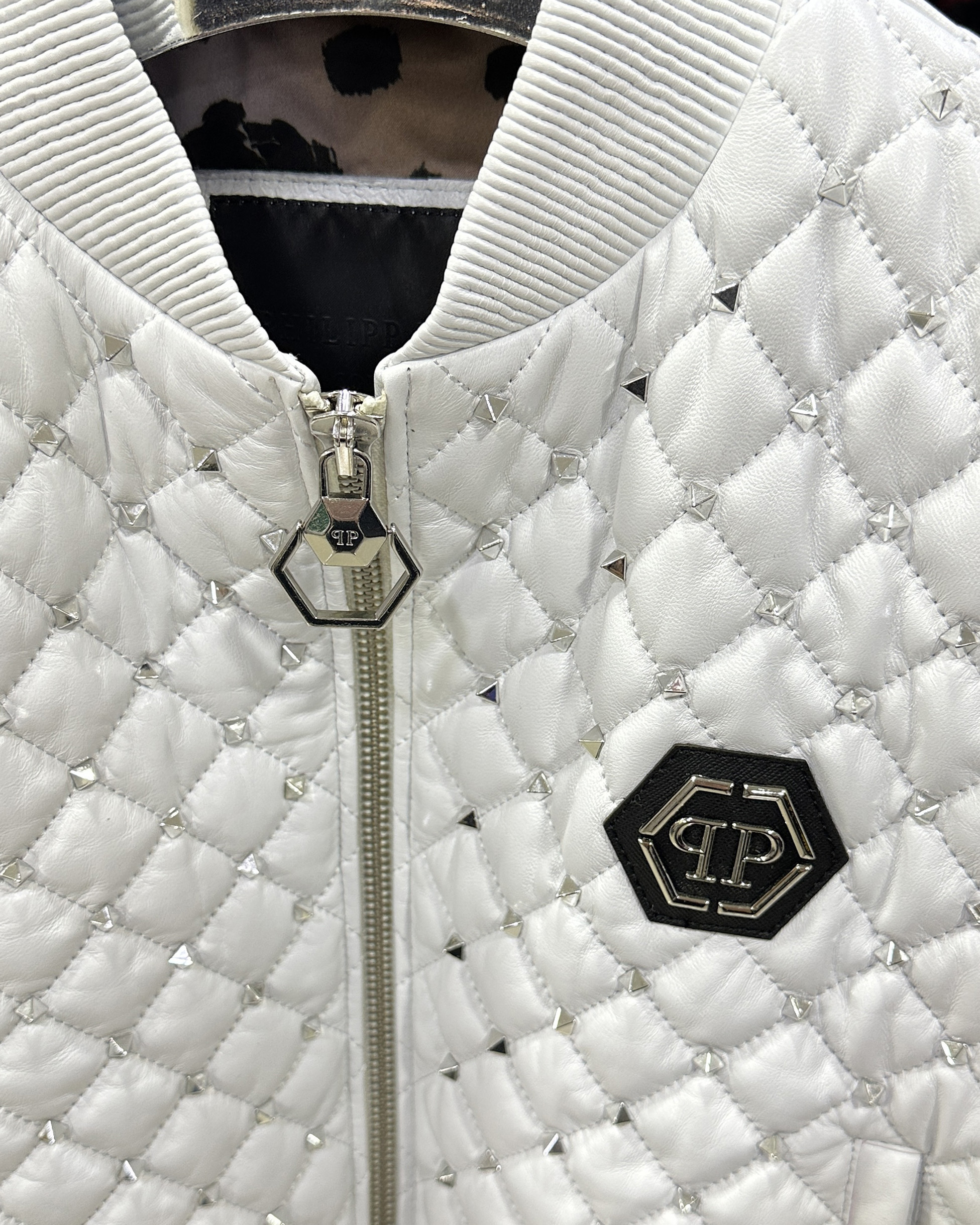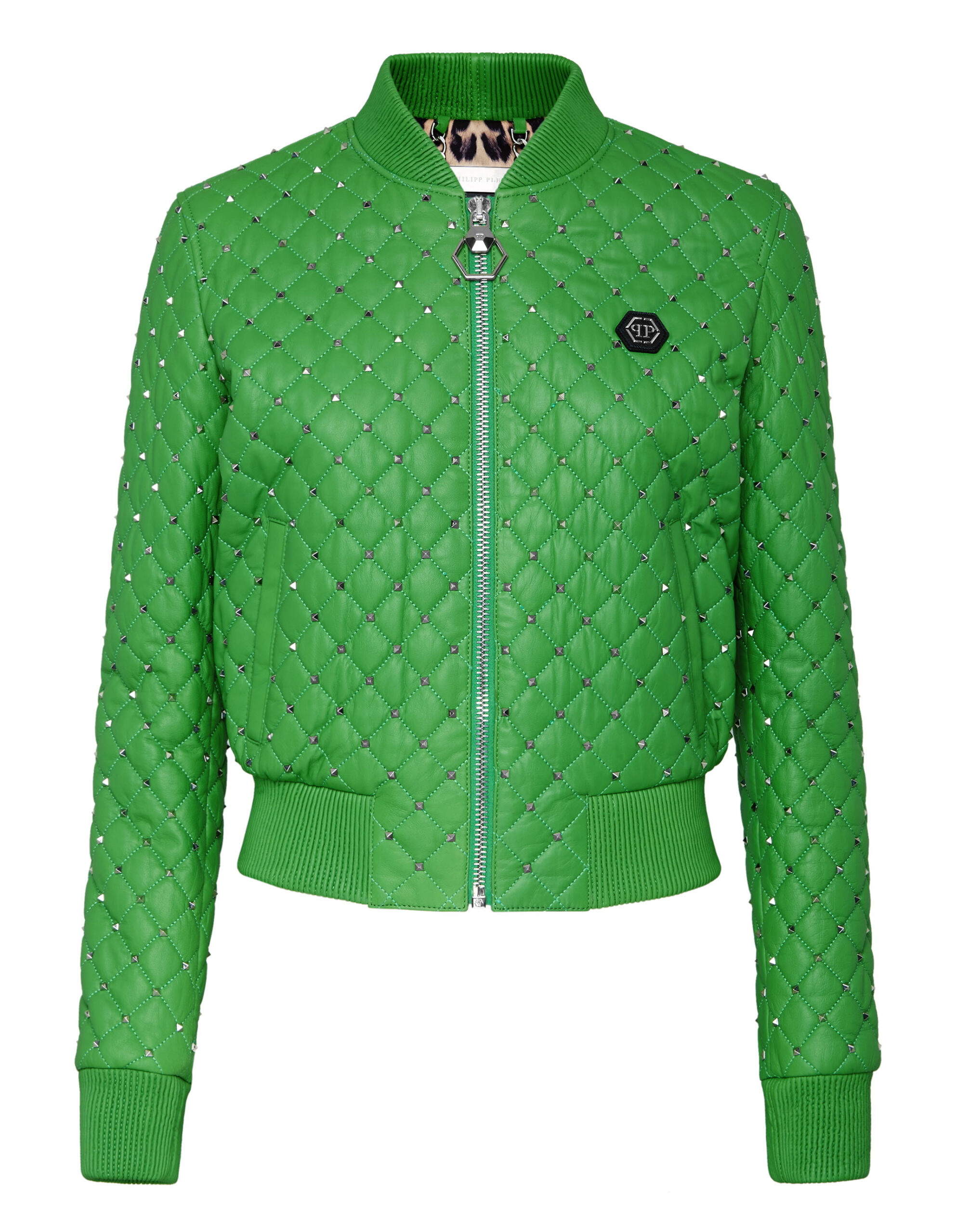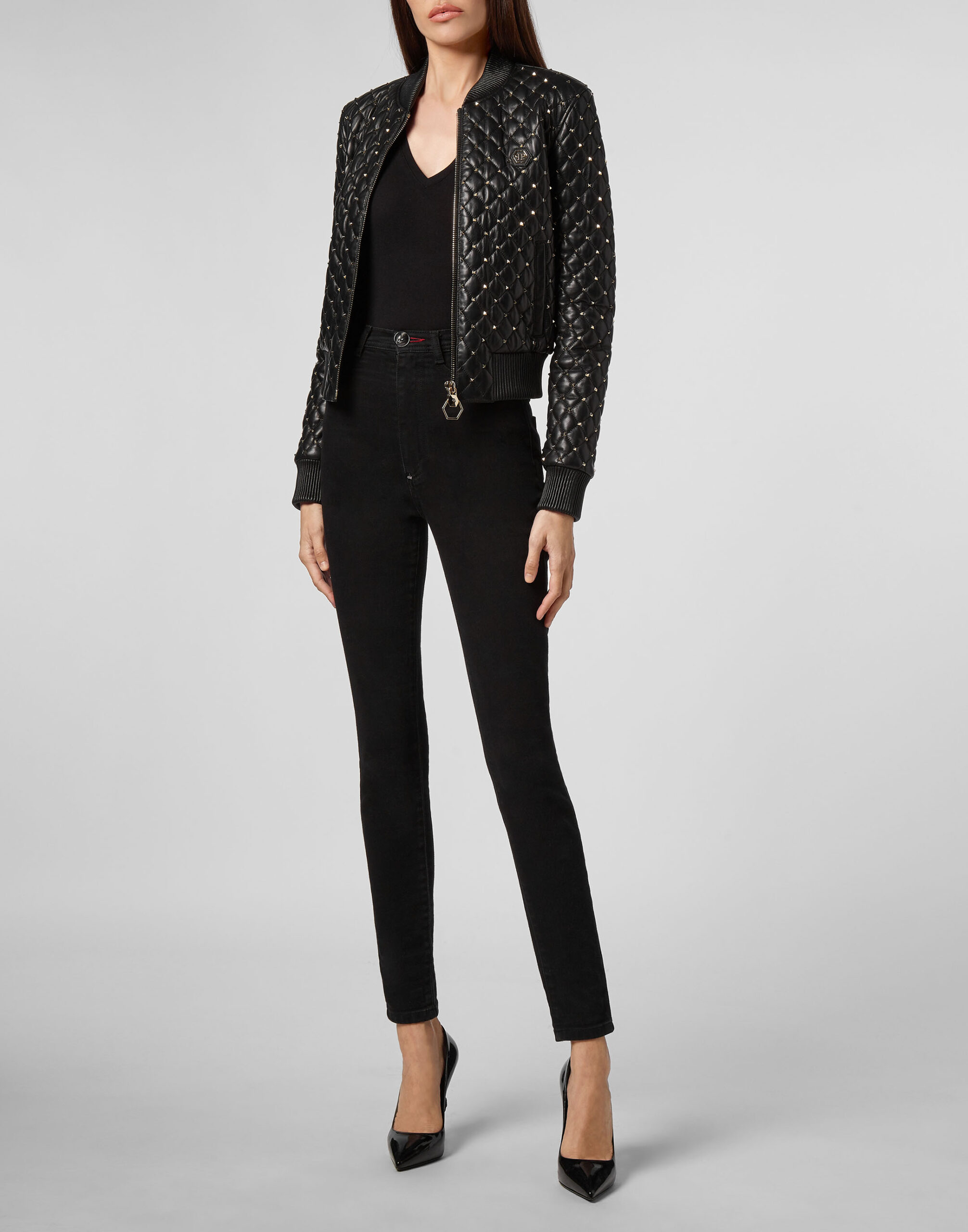 Philipp Plein Women’s Bomber Studded Leather Jacket