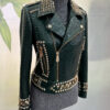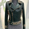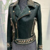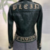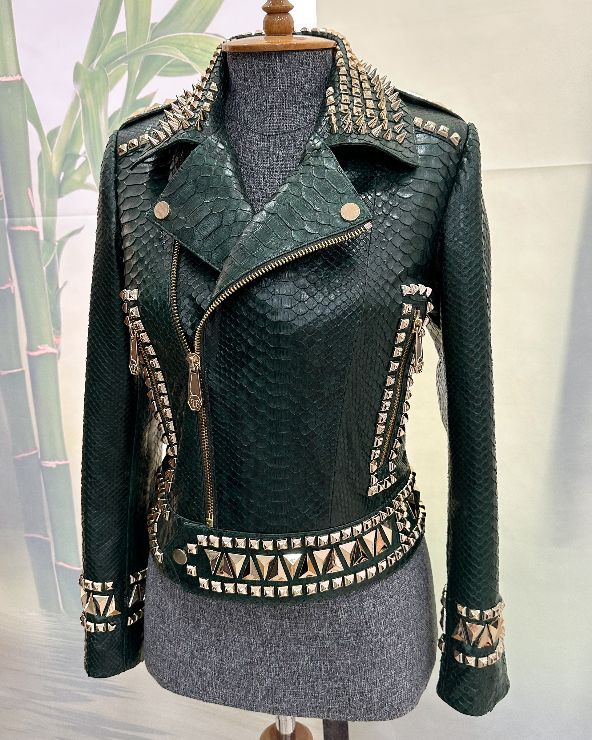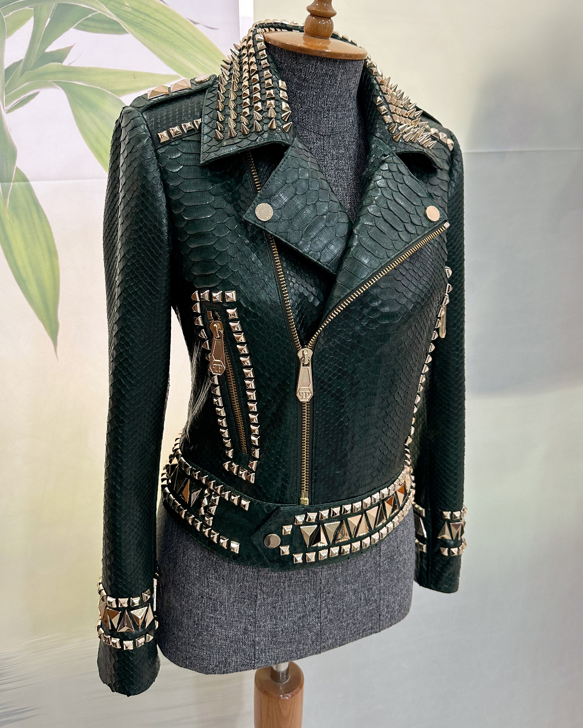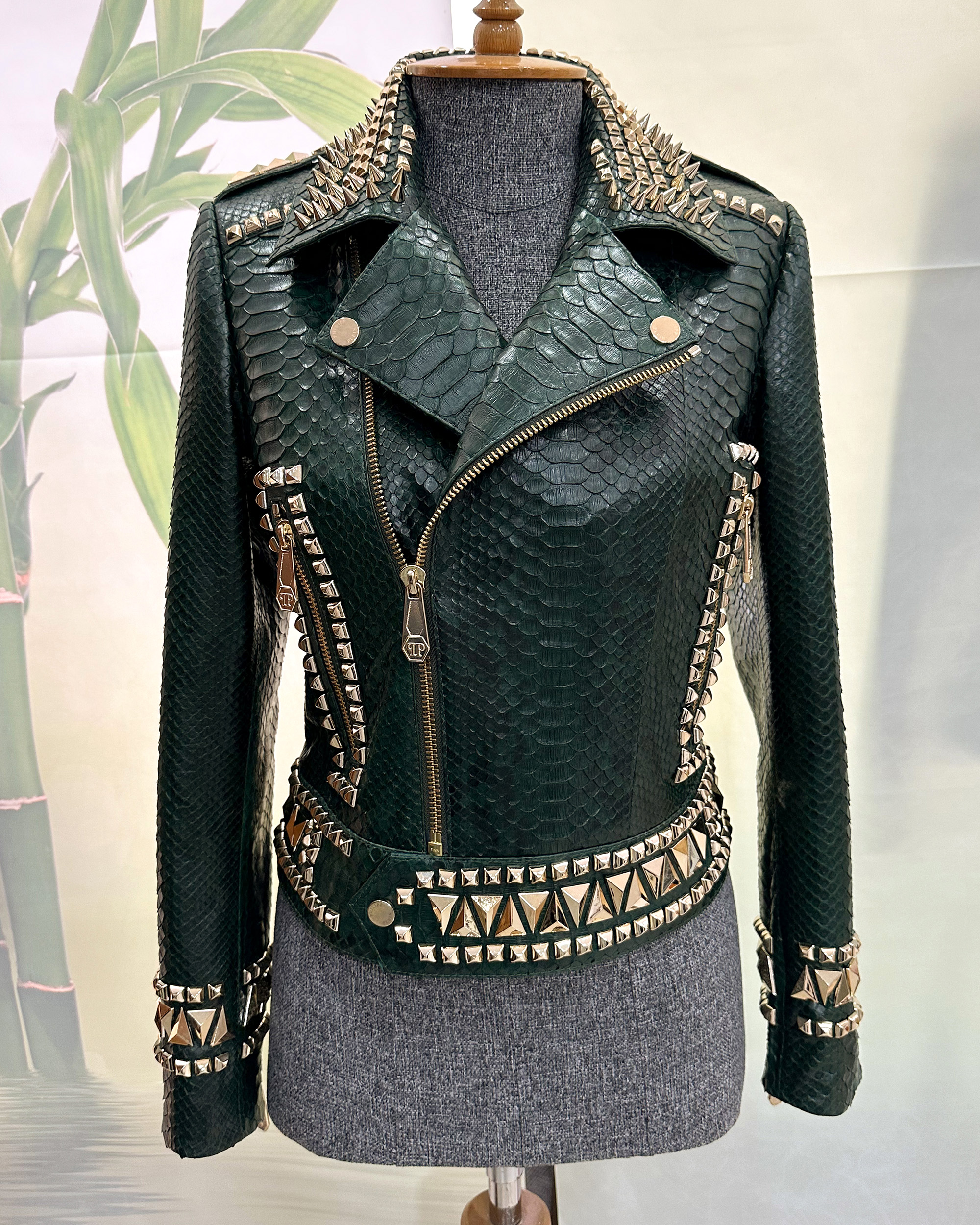 Philipp Plein Womens Green Python Leather Biker Jacket