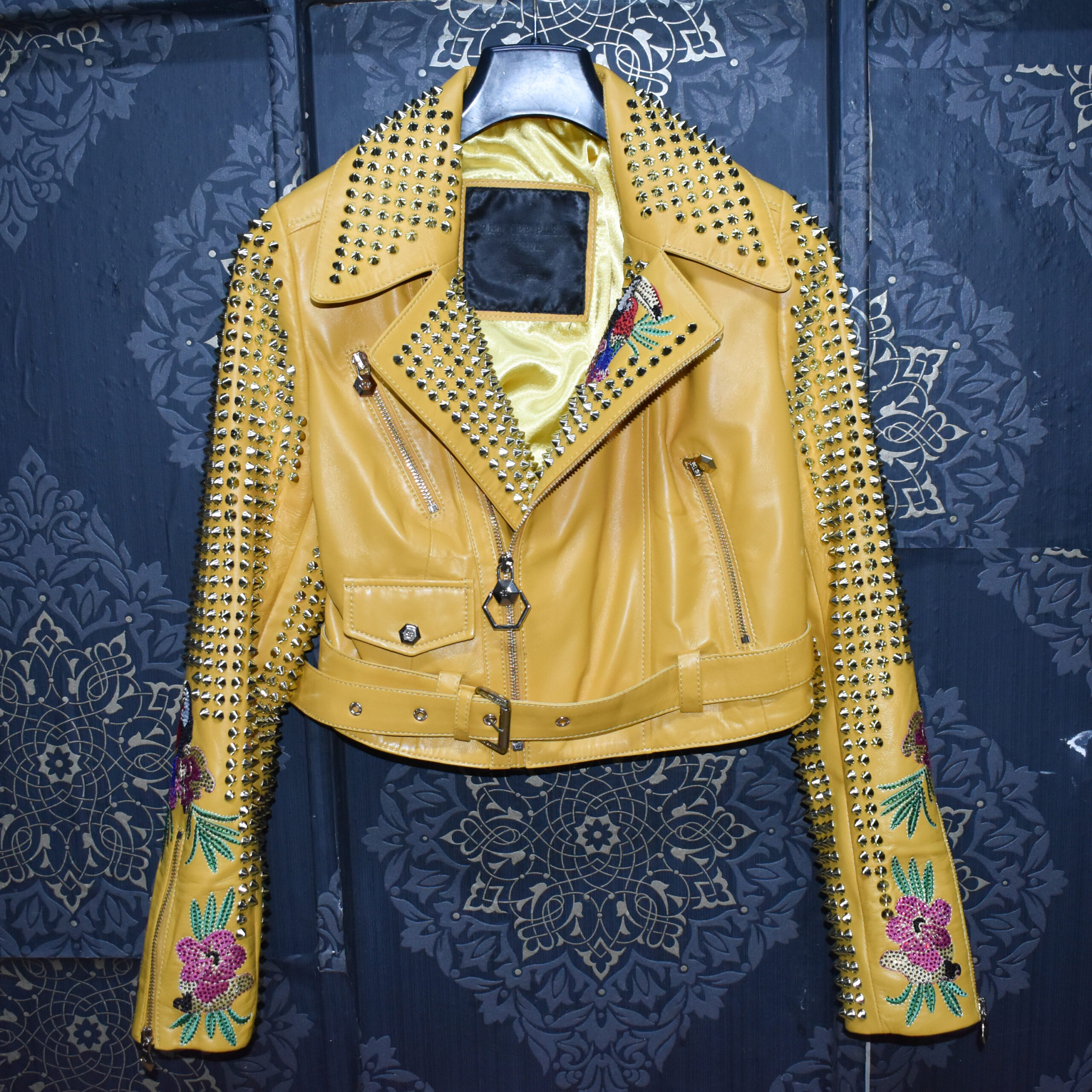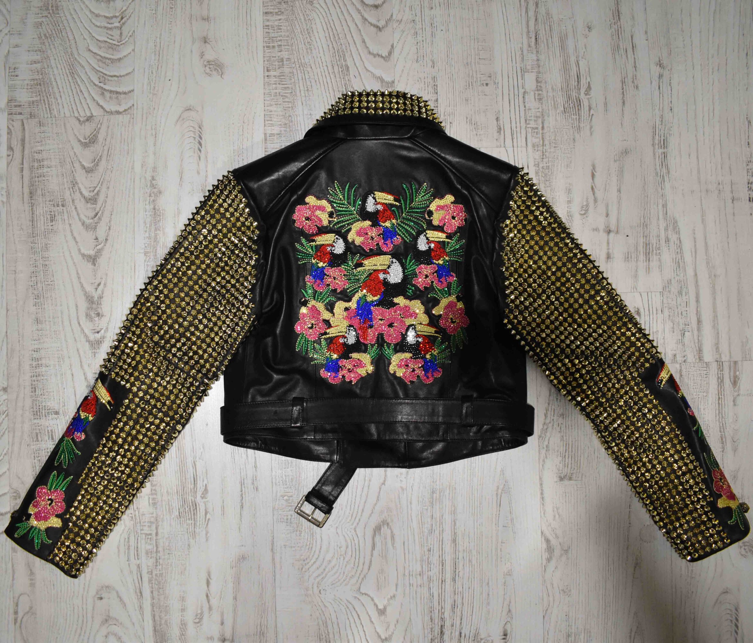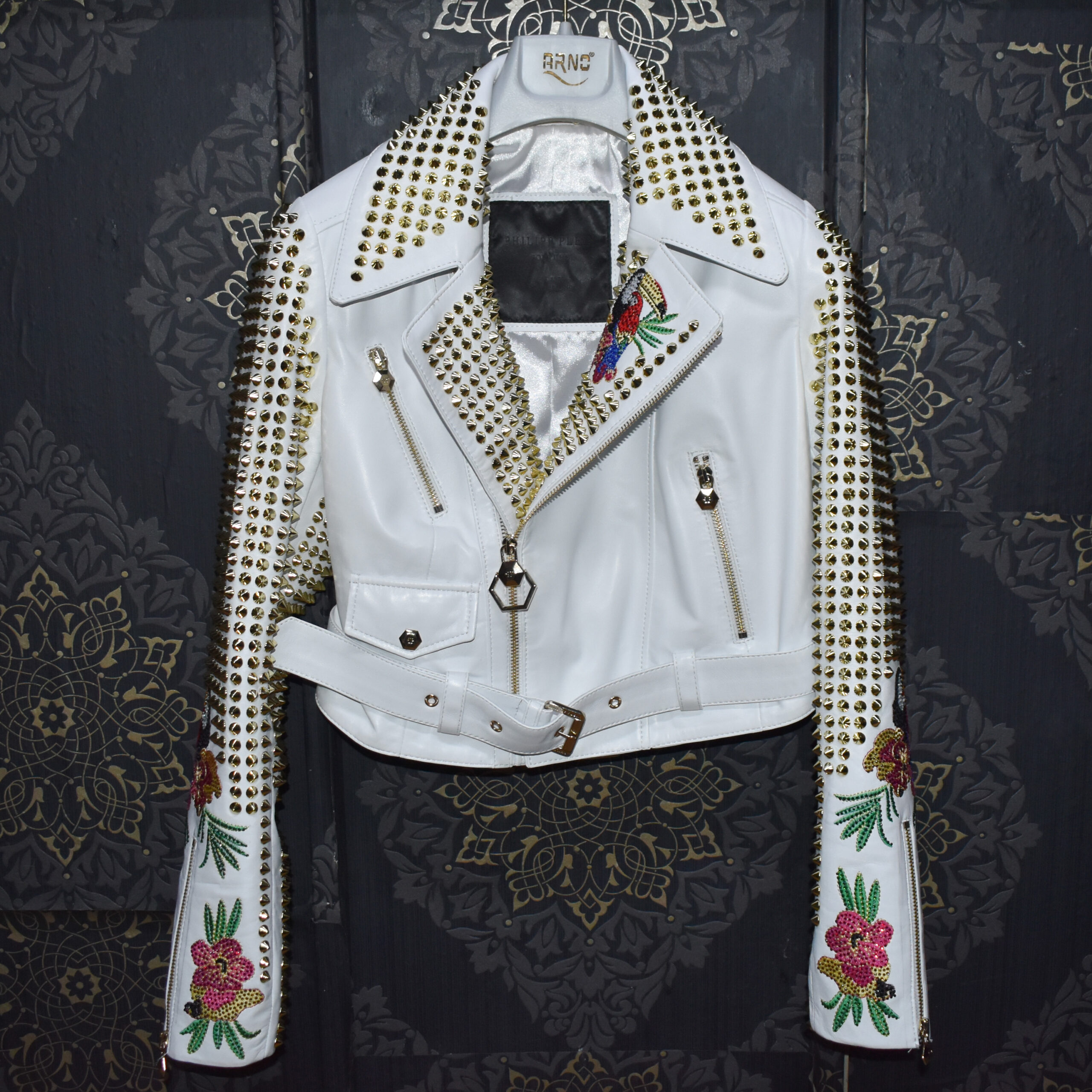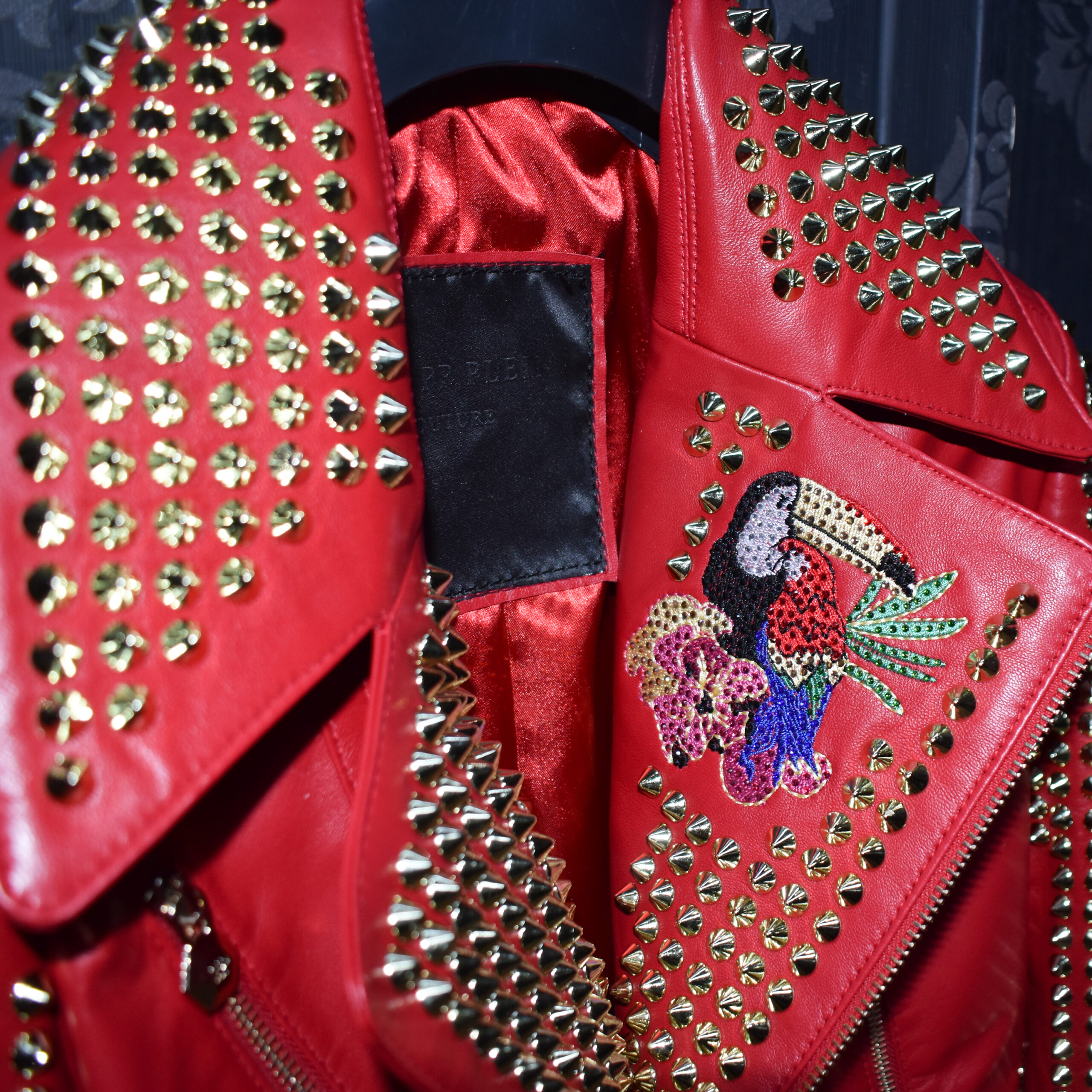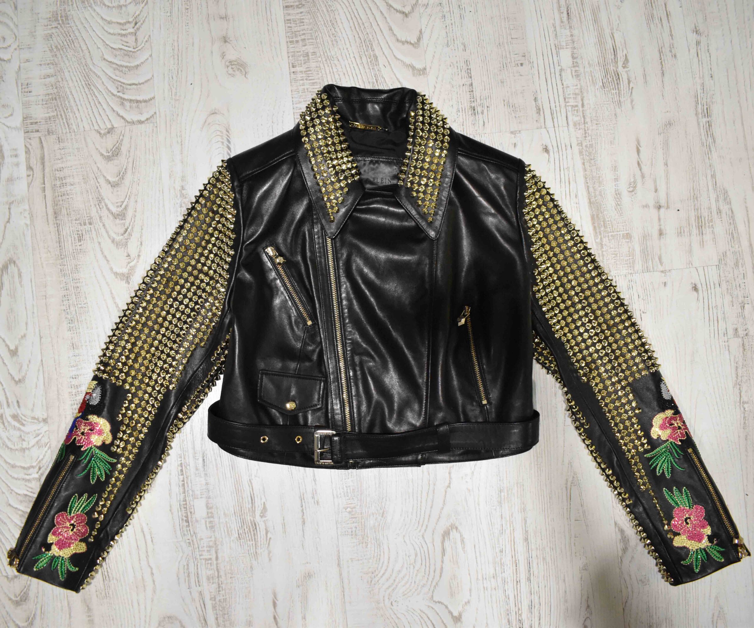 Philipp Plein Women’s Leather Biker Jacket Studs