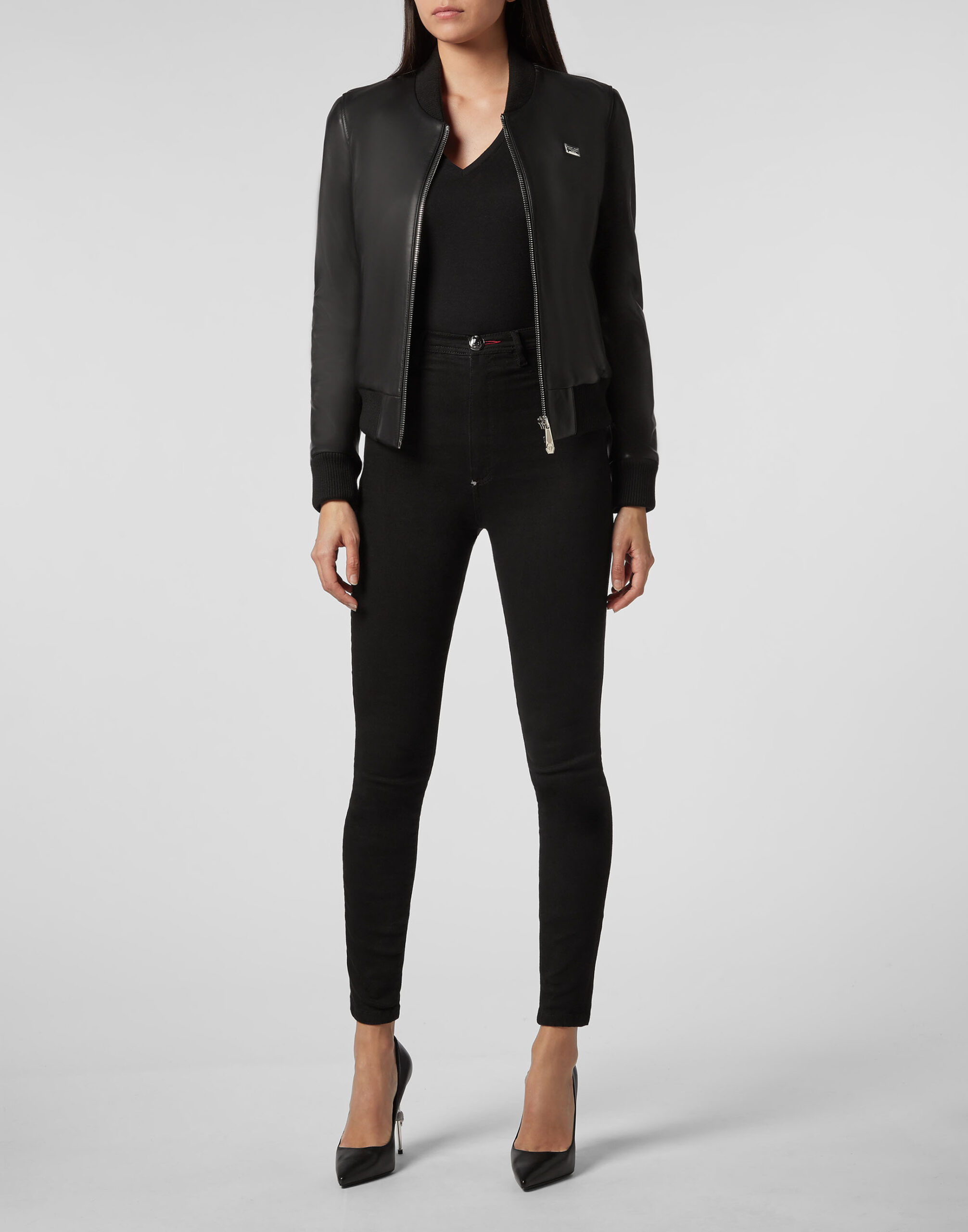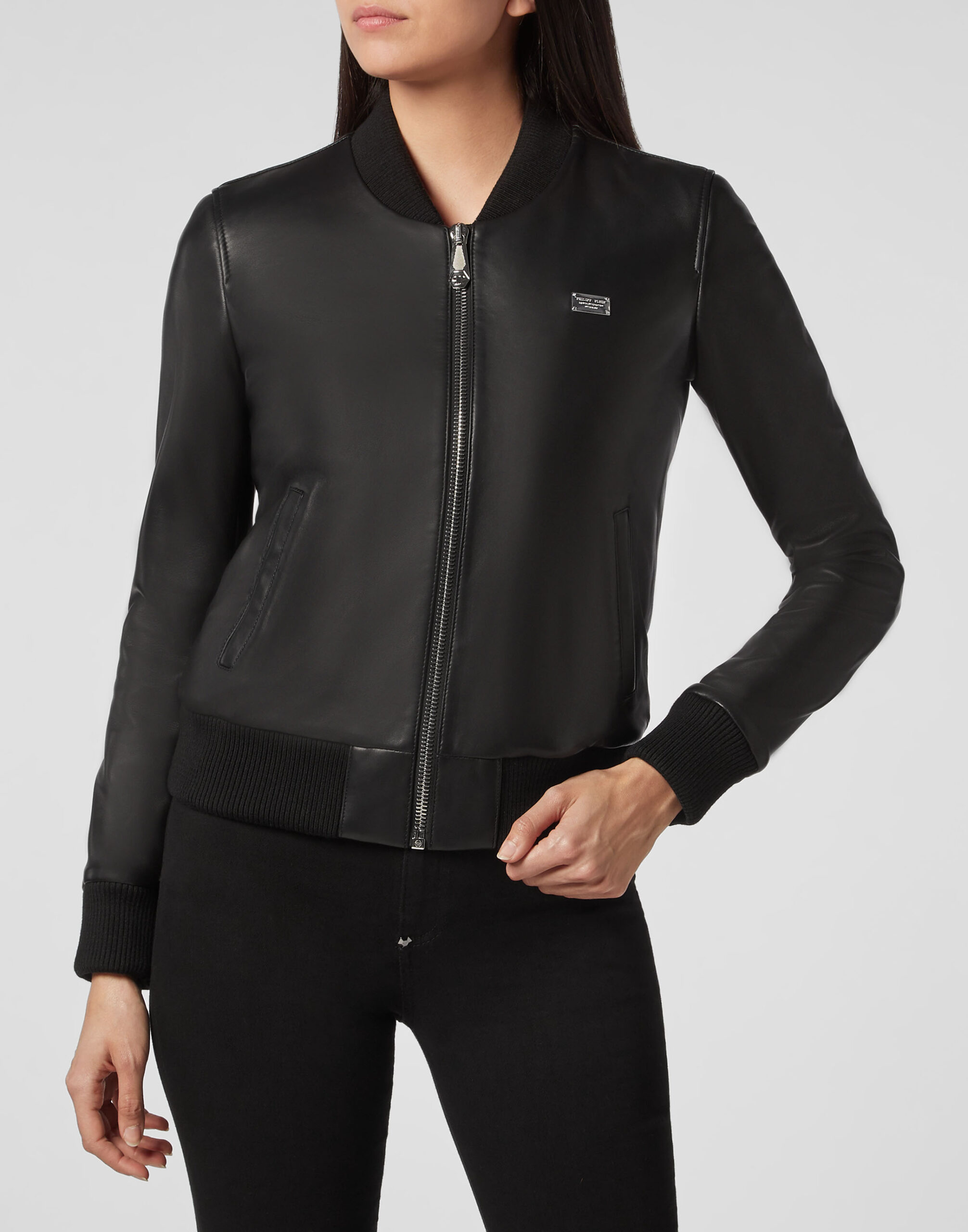 Philipp Plein Women’s Skull Leather Bomber Jacket