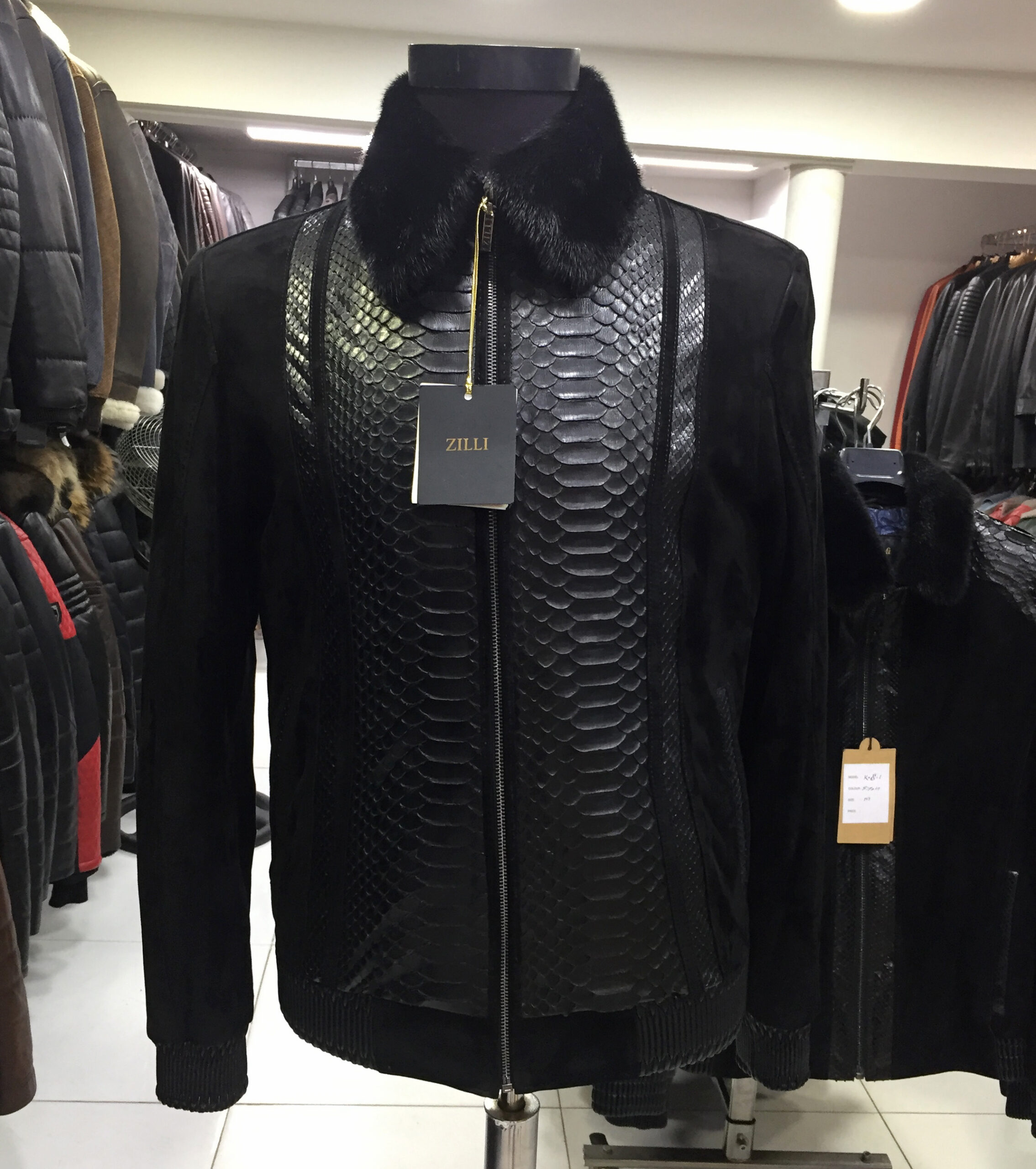 Snake Skin Suede Mink Fur Collar Jacket