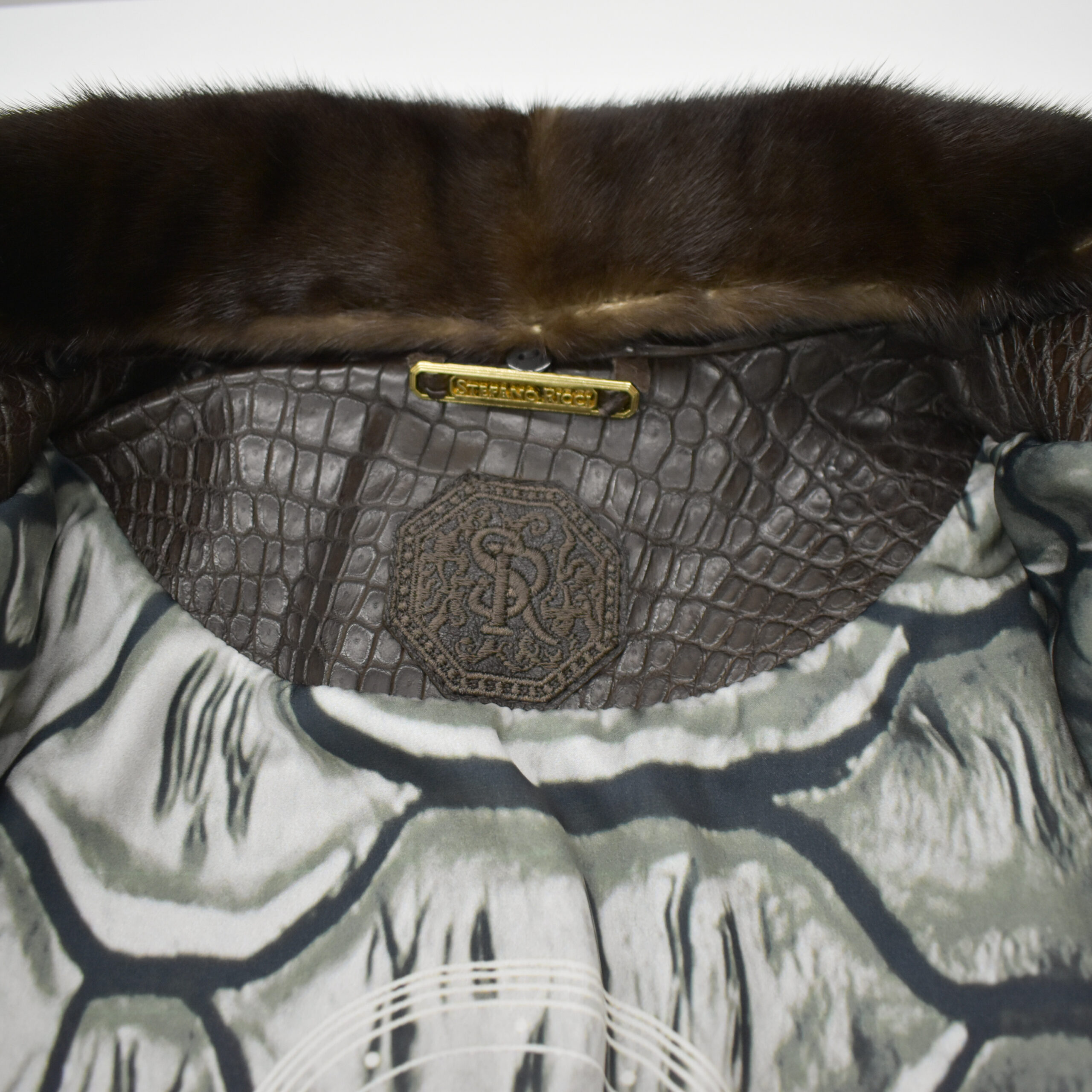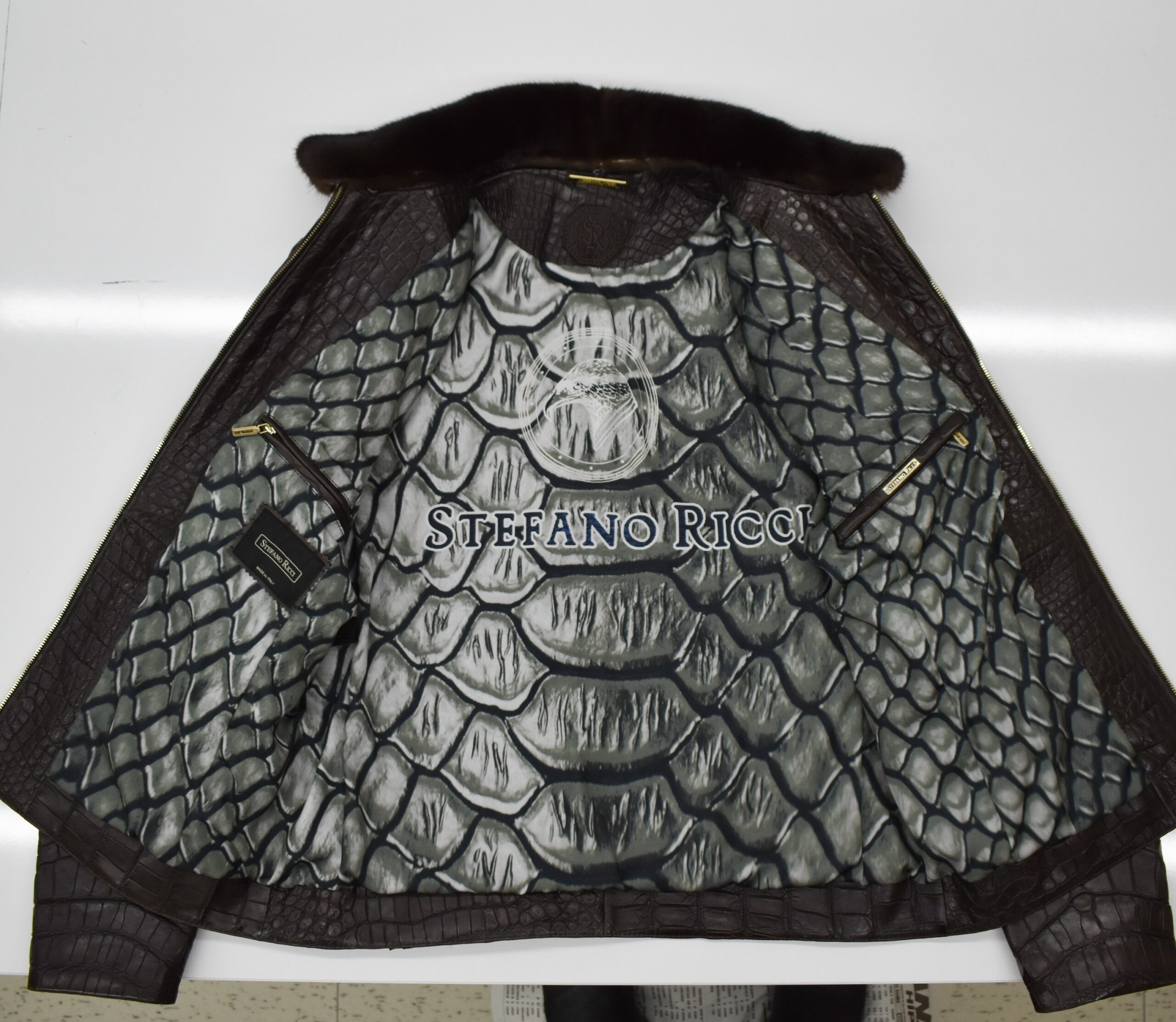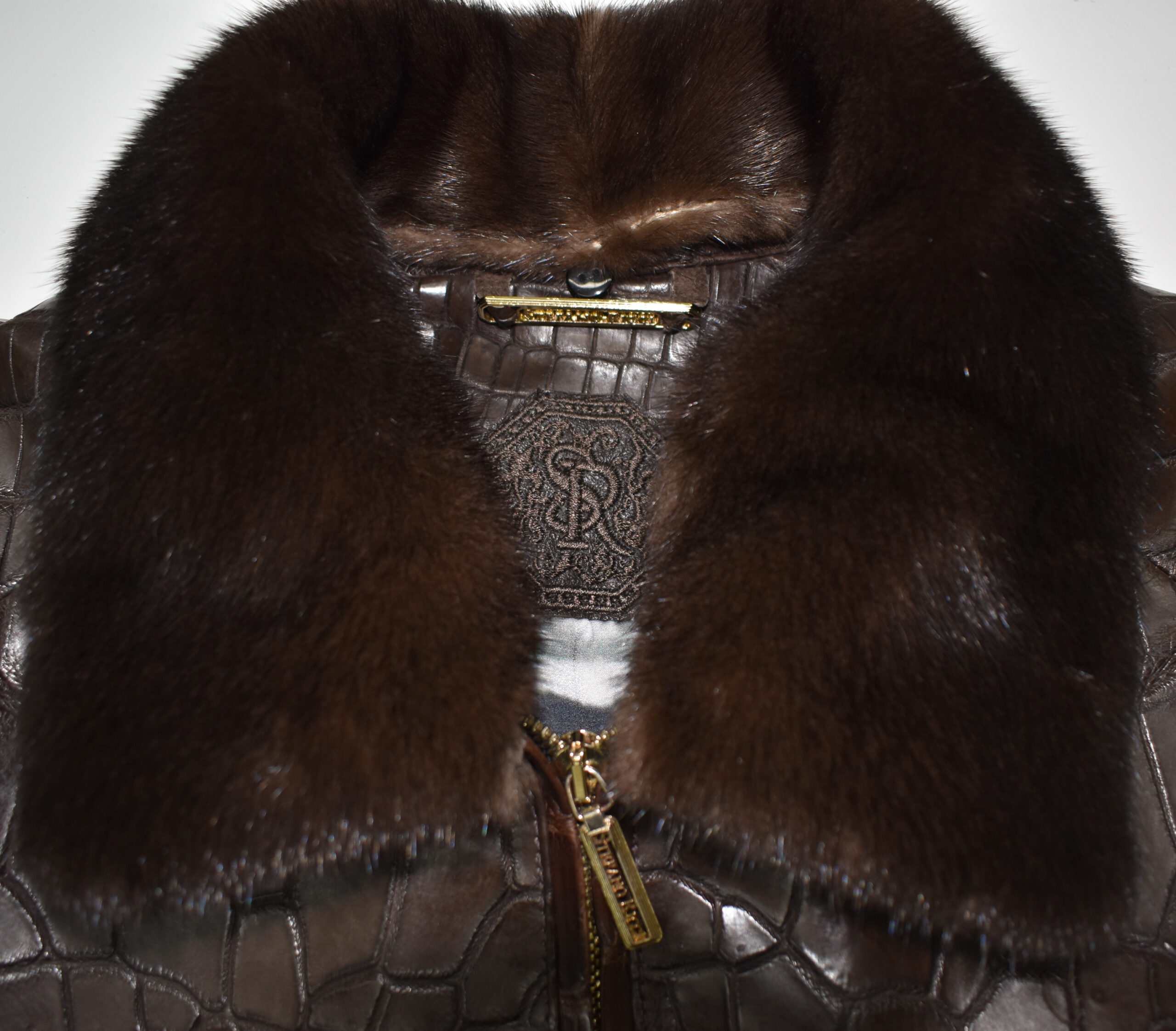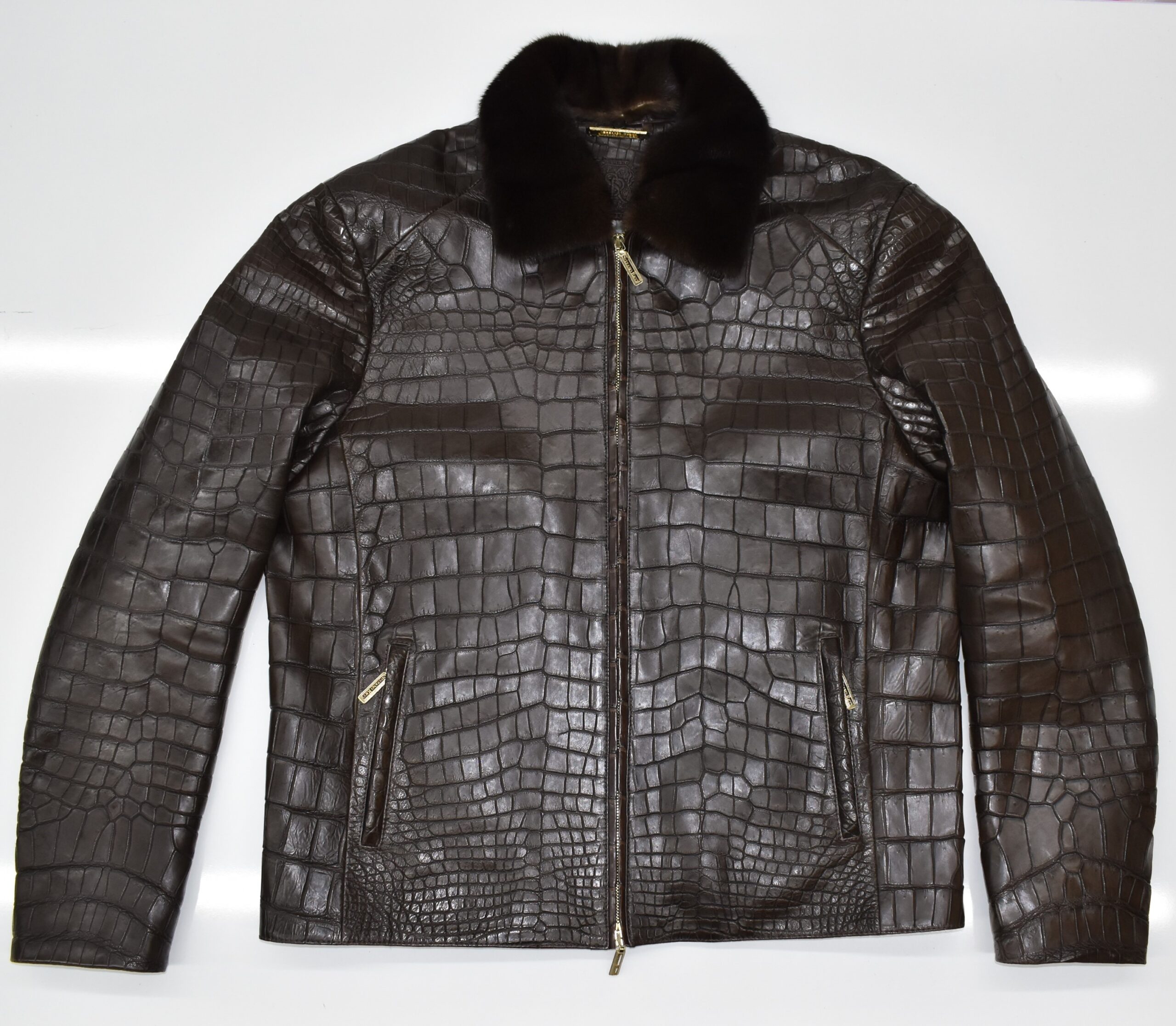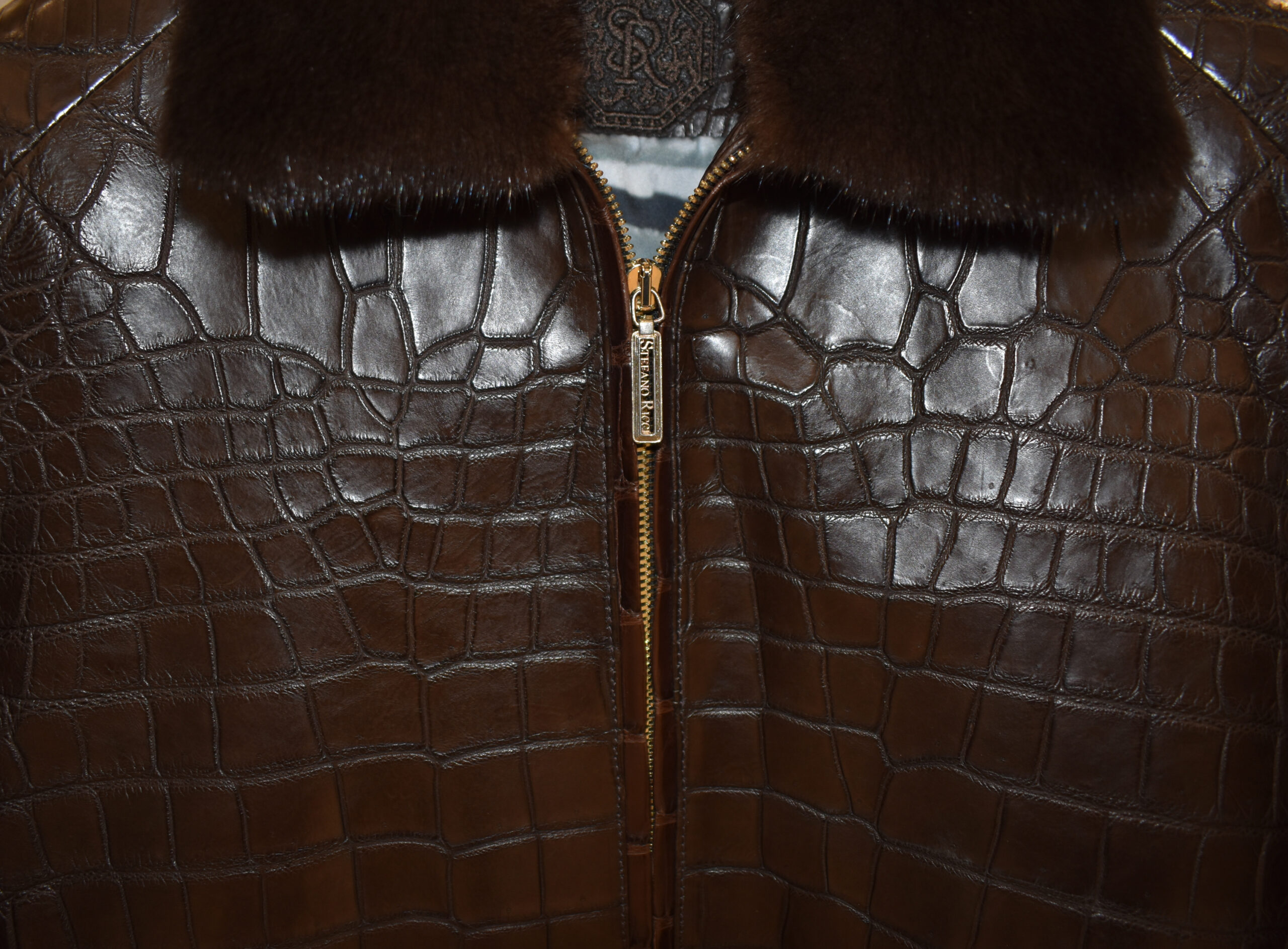 SR Brown Crocodile Leather Jacket With Mink Fur