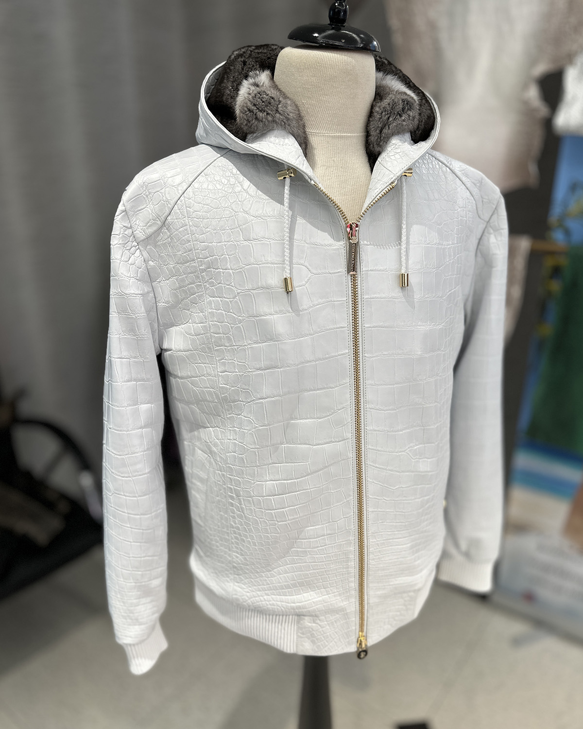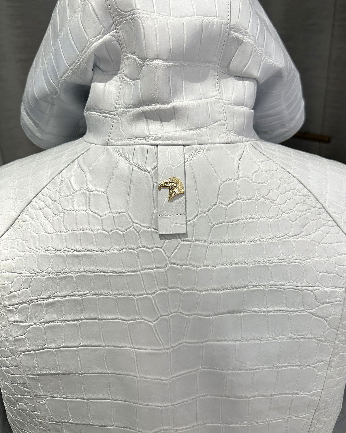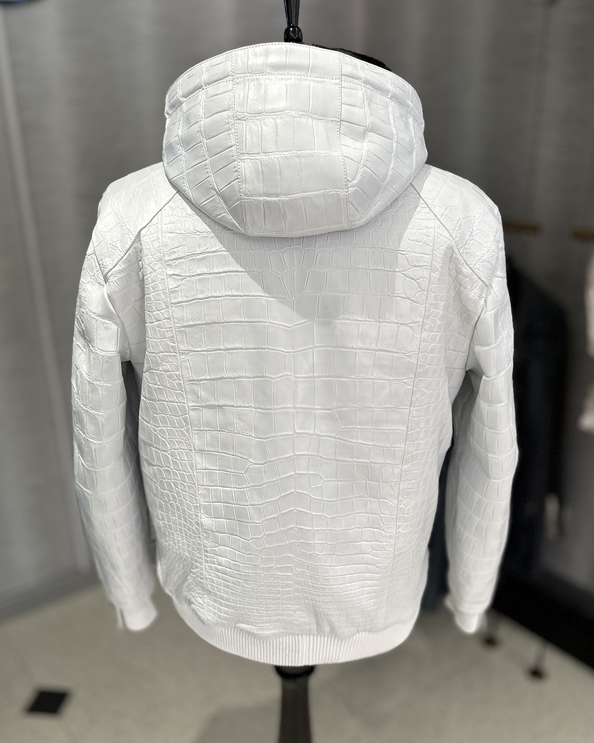 SR Genuine Crocodile Leather White Hooded Jacket