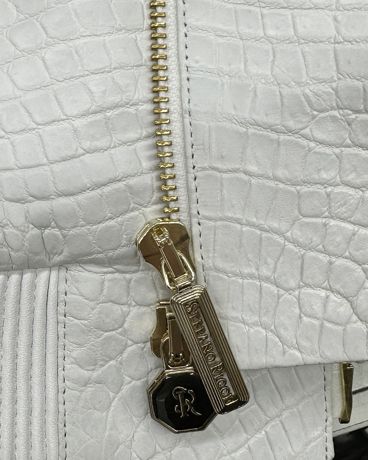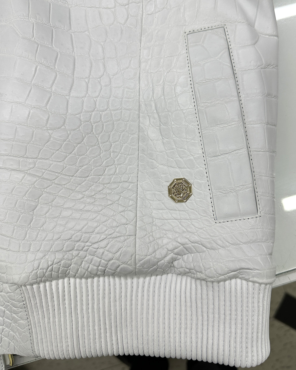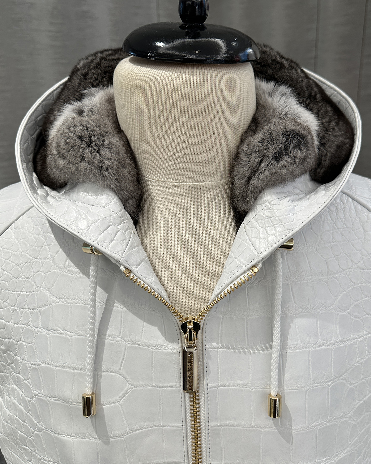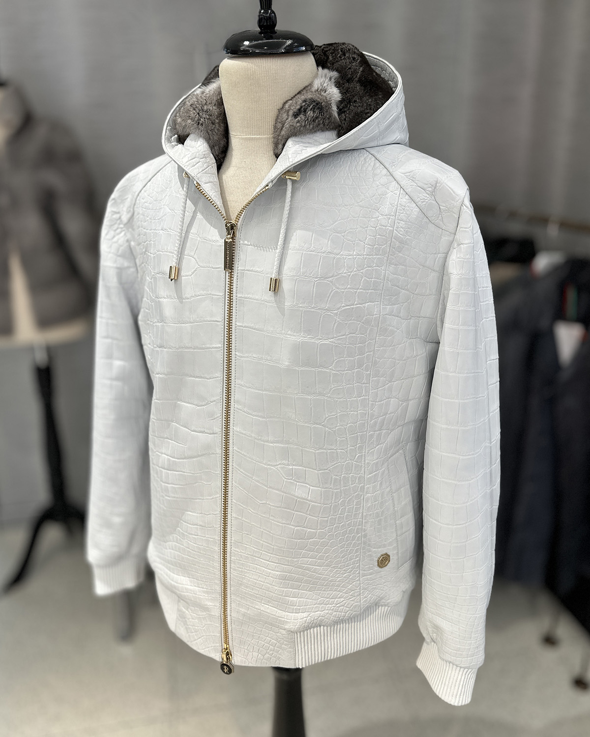 SR Genuine Crocodile Leather White Hooded Jacket