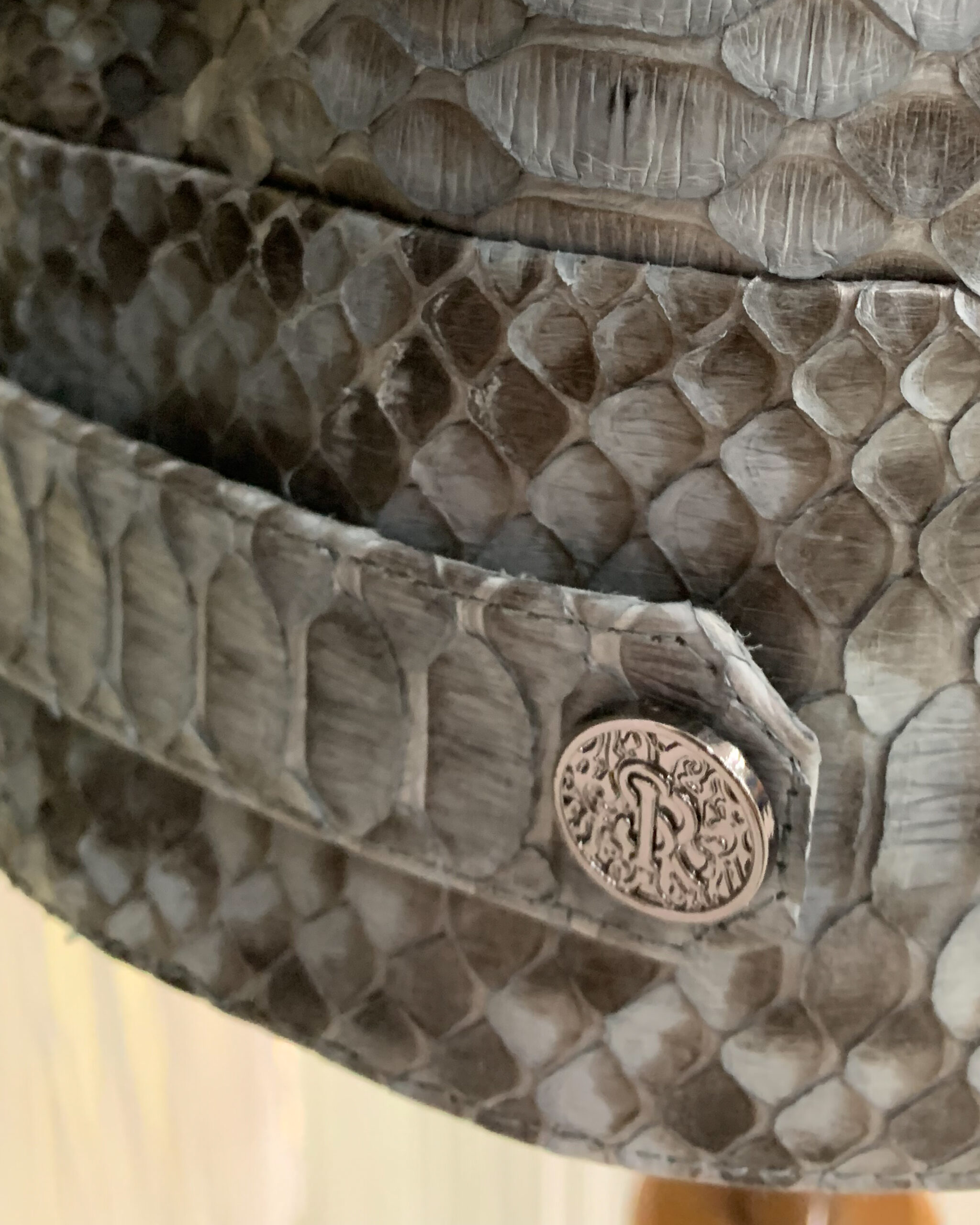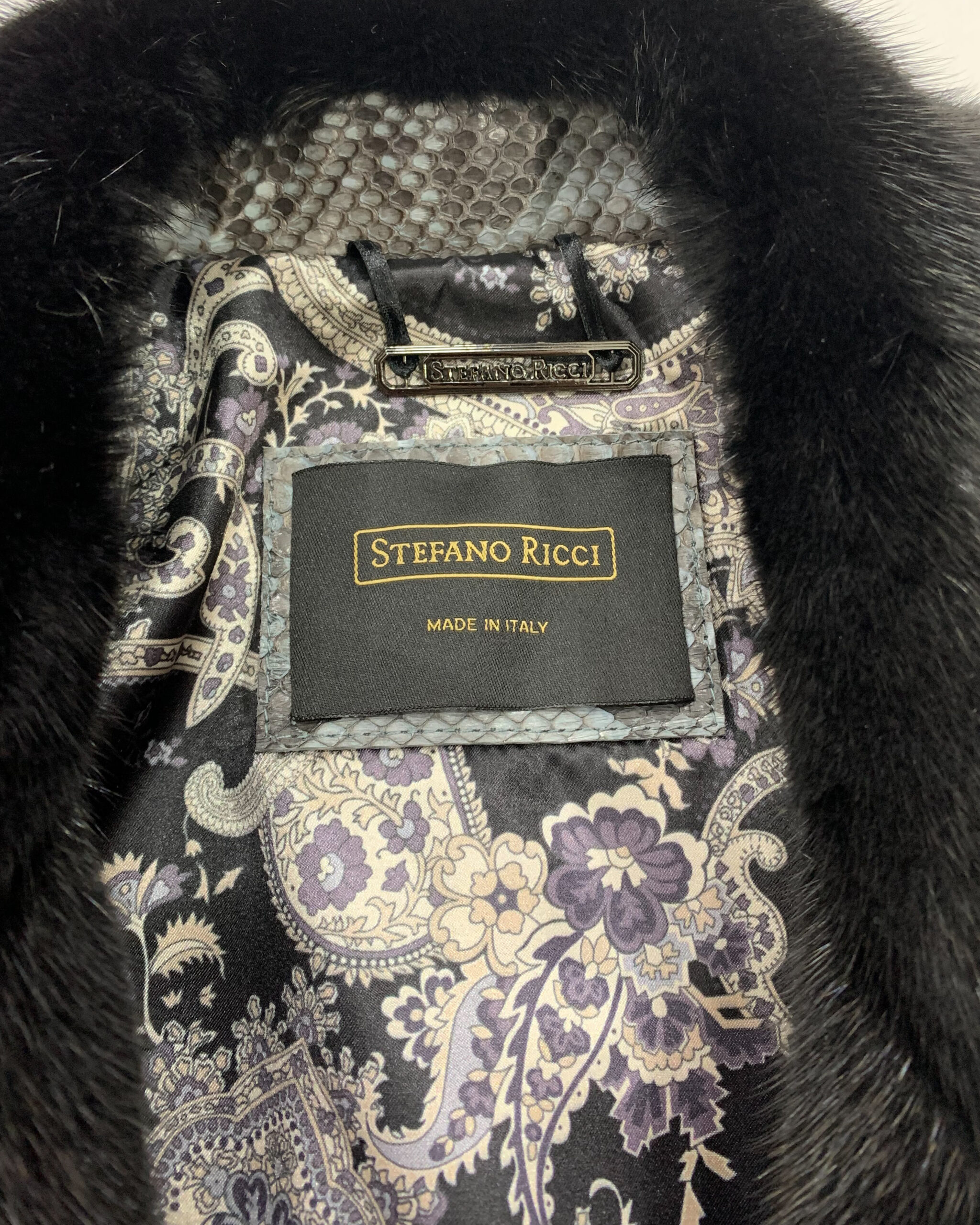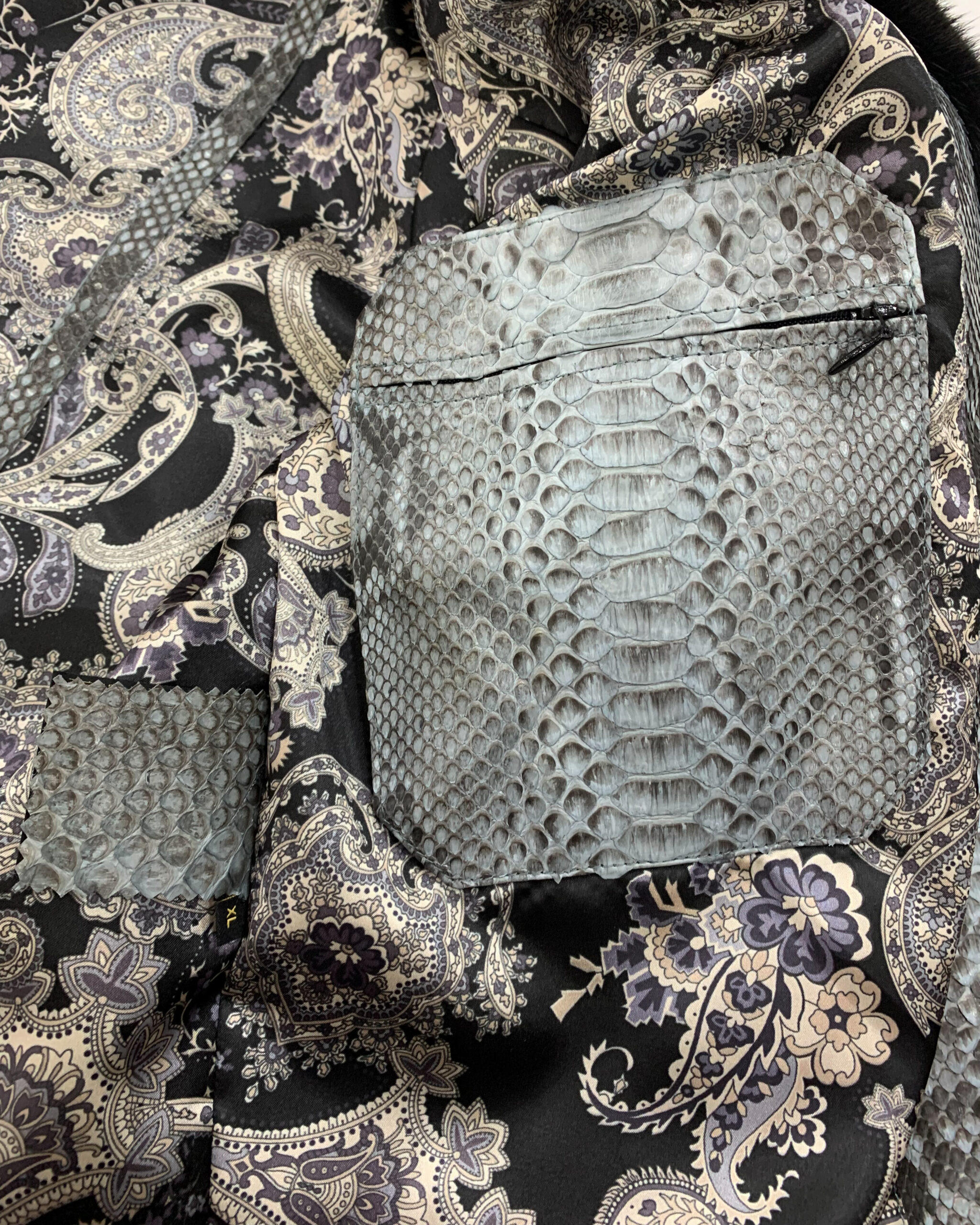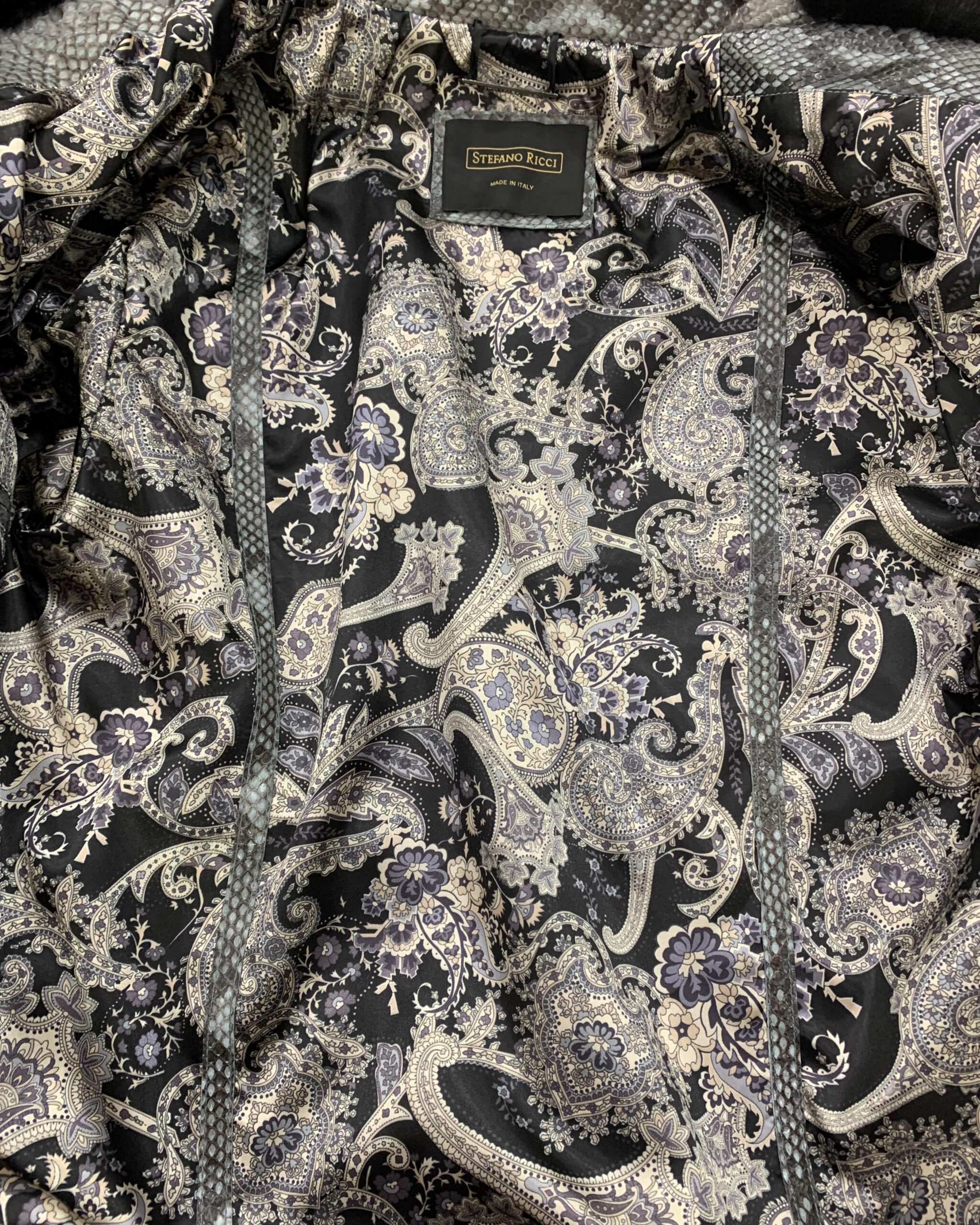 SR Python Skin Mink Fur Collar Grey Biker Jacket