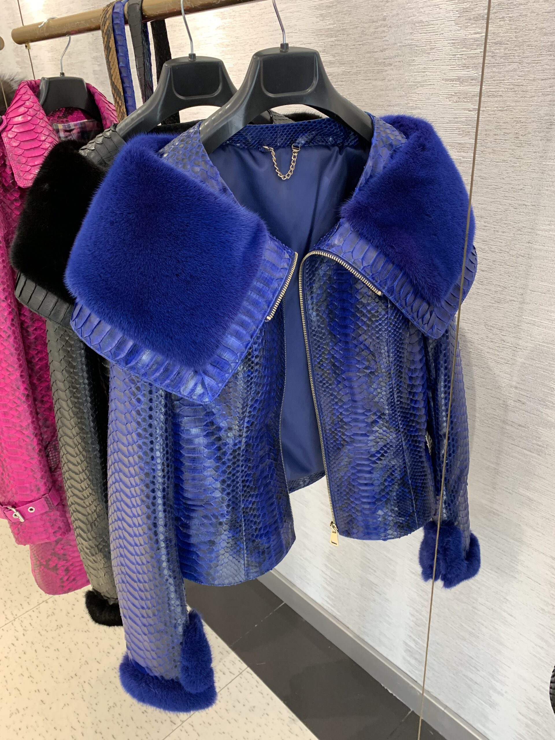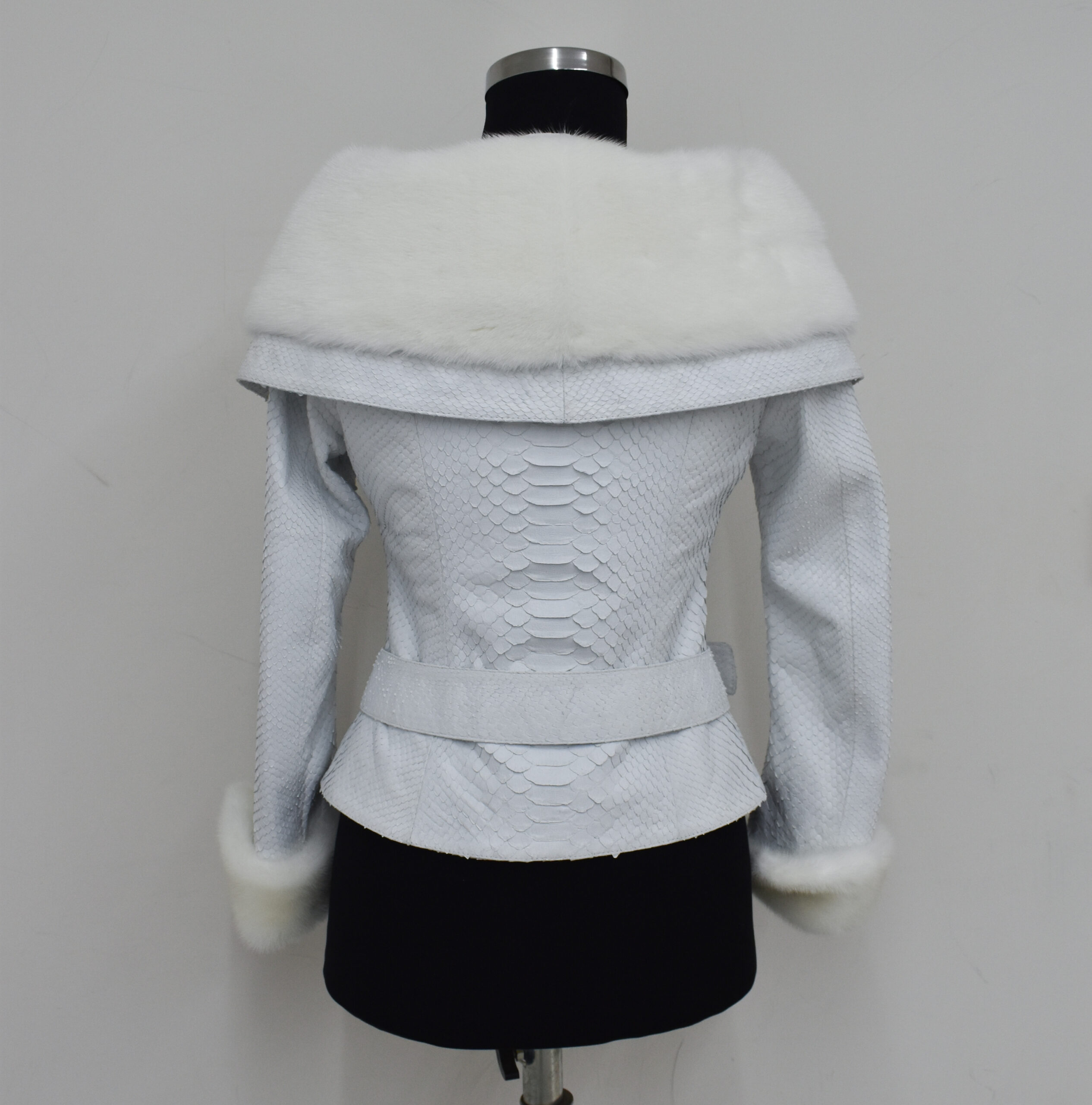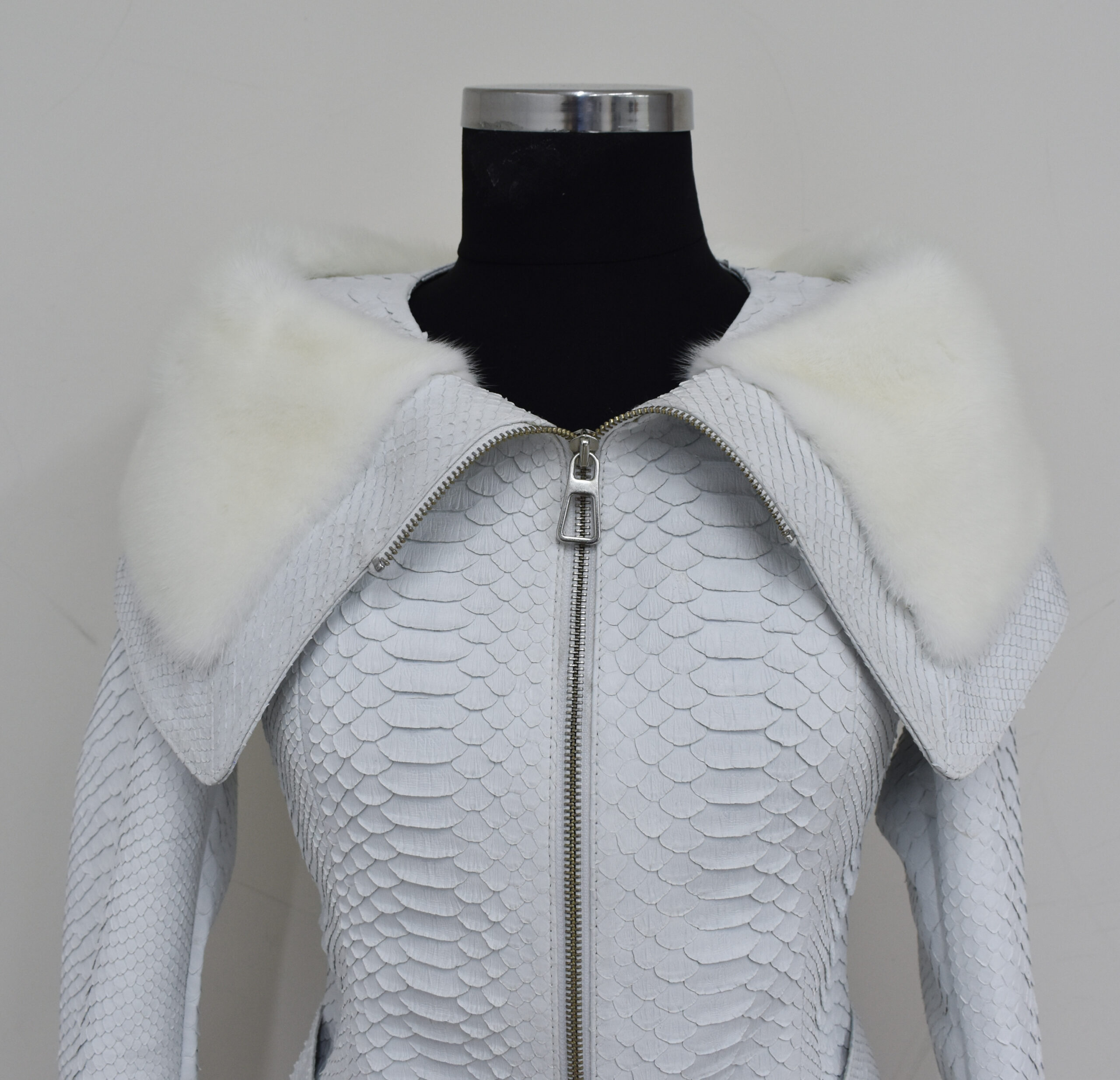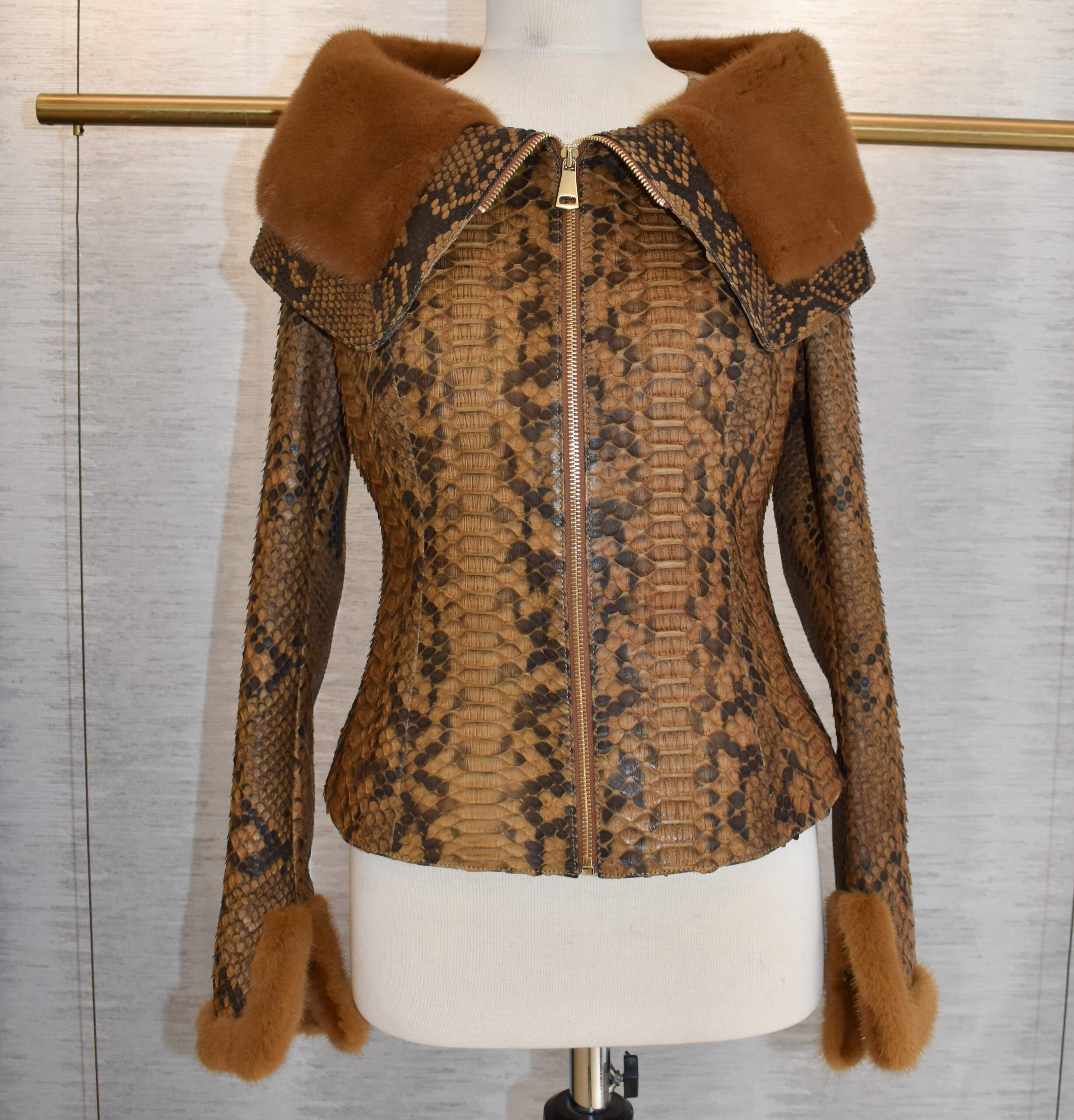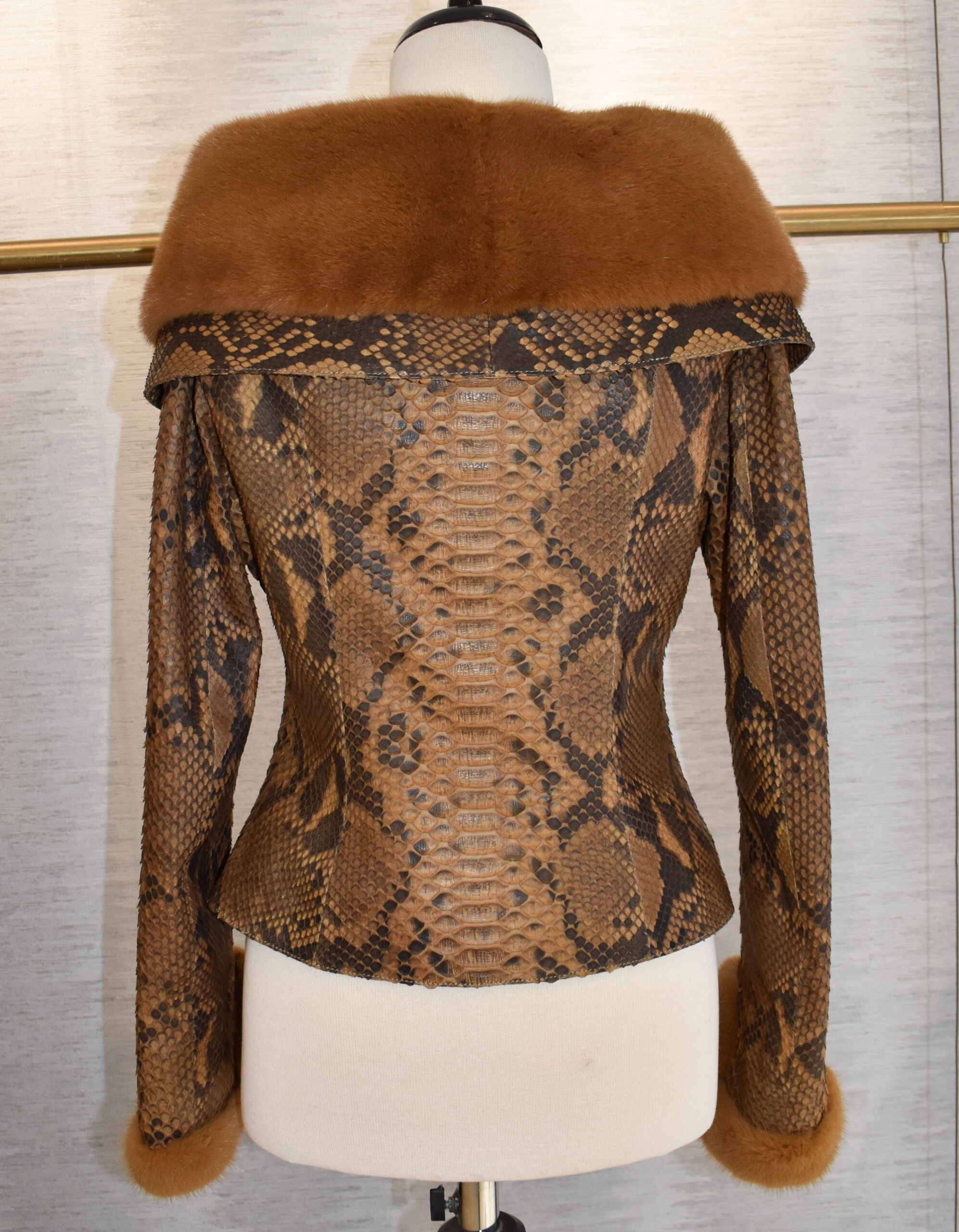 Women Python Leather Mink Fur Collar Jacket