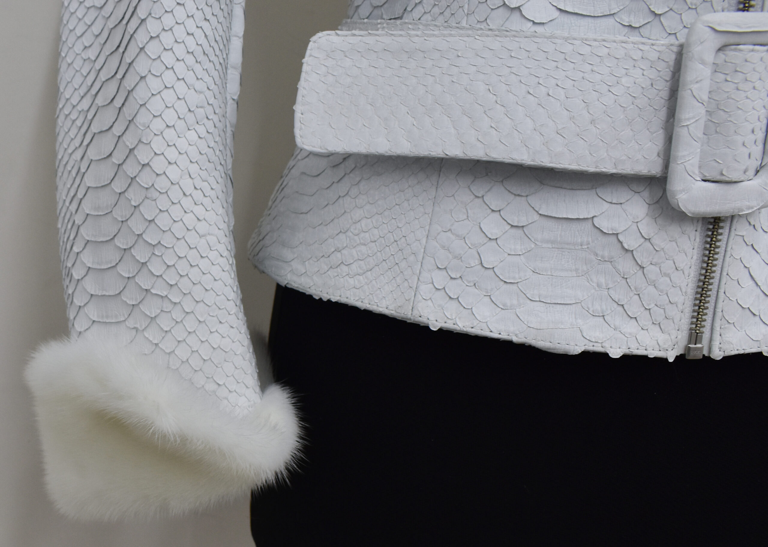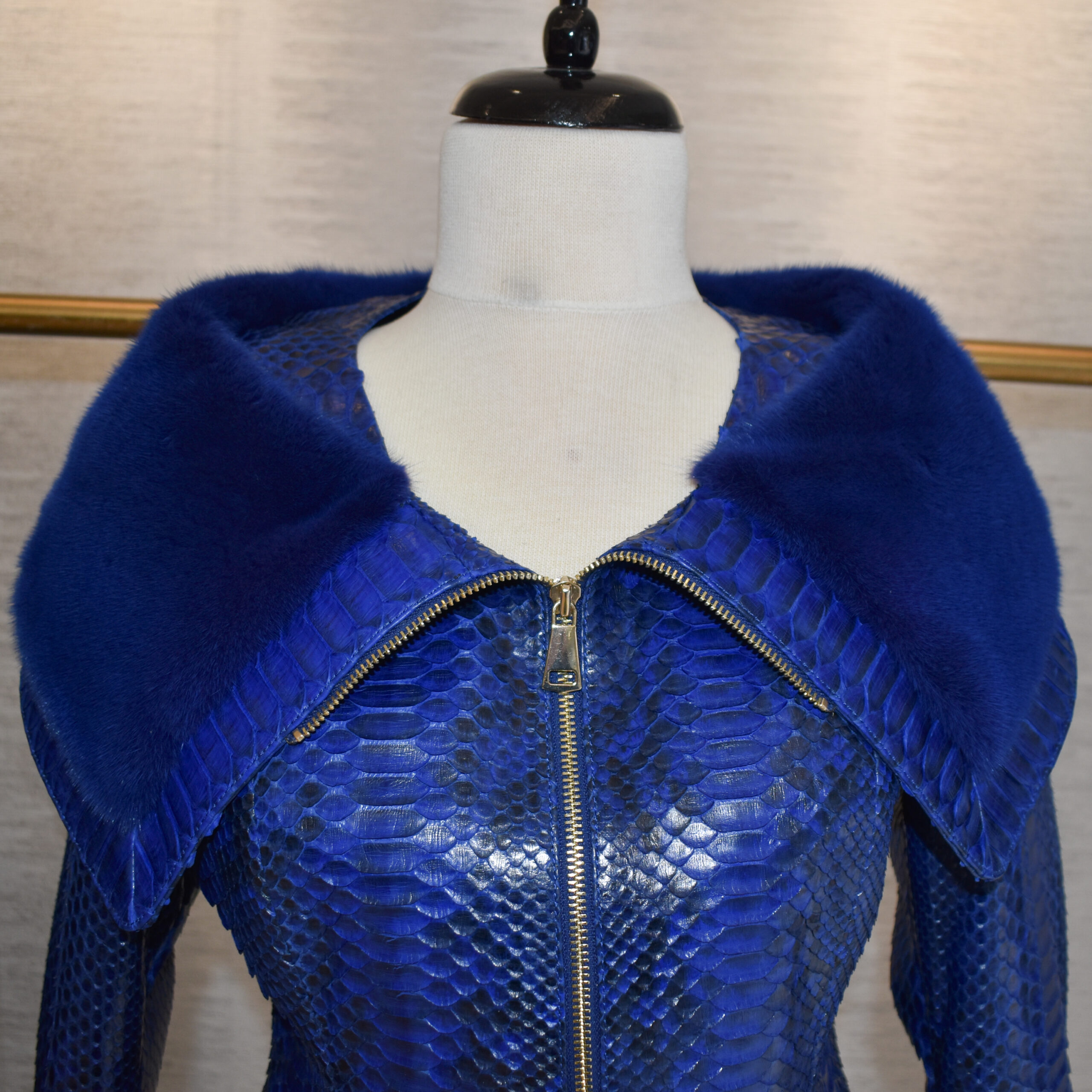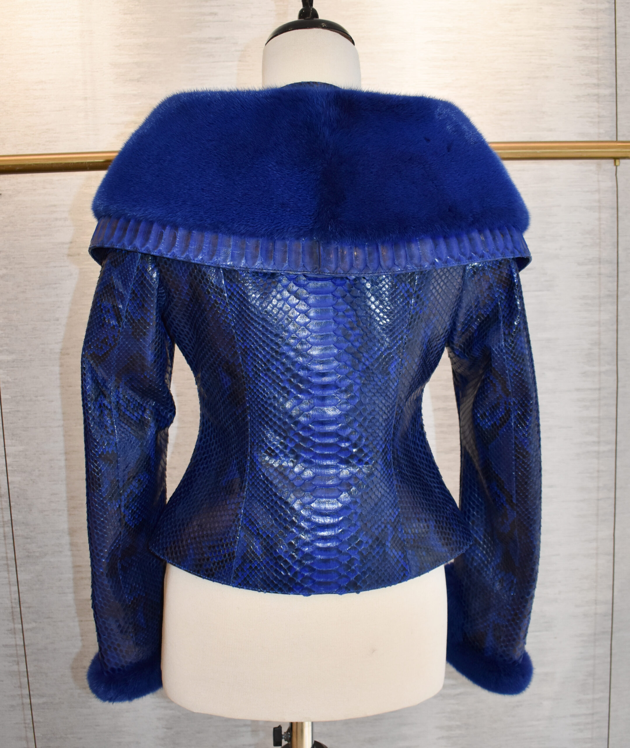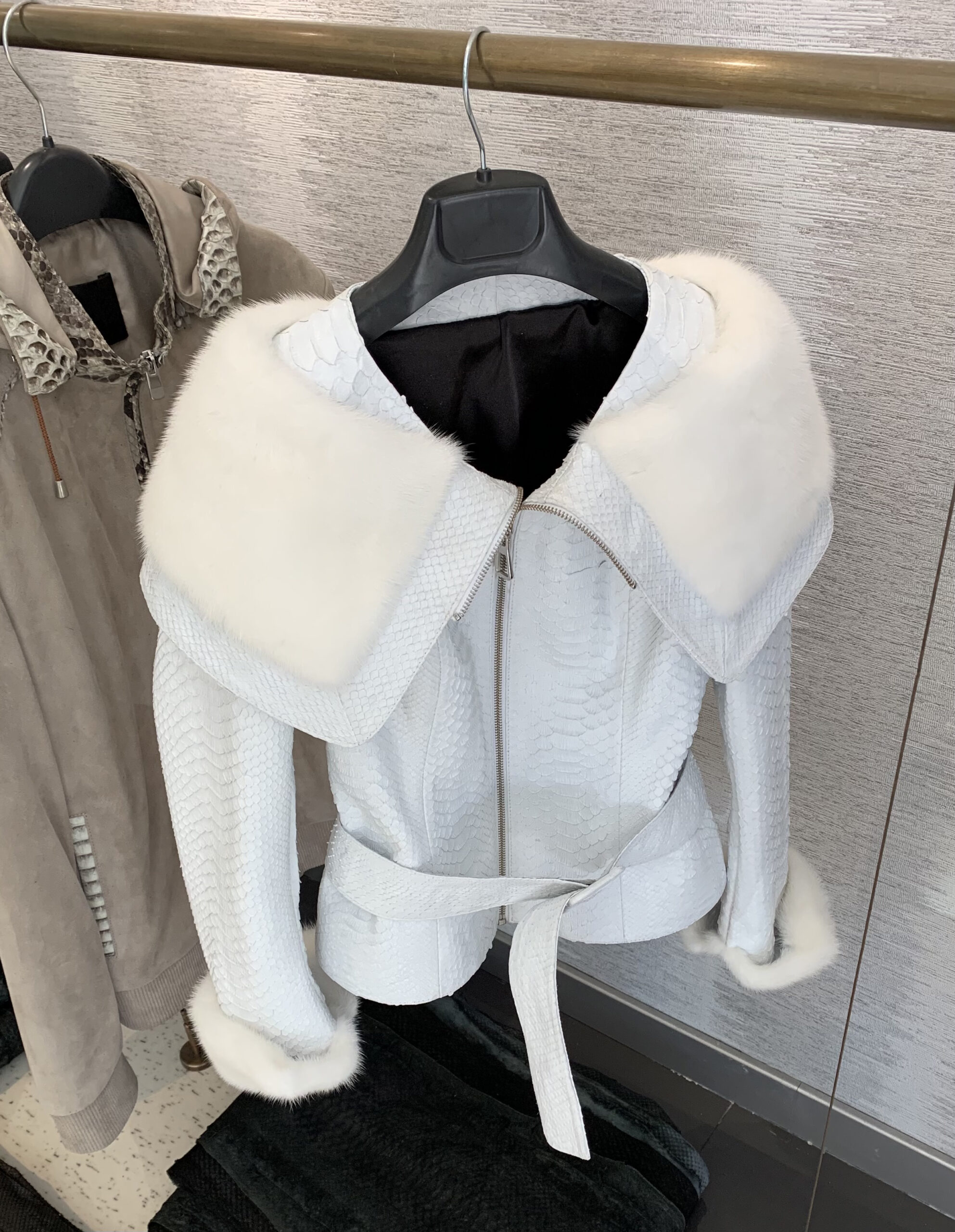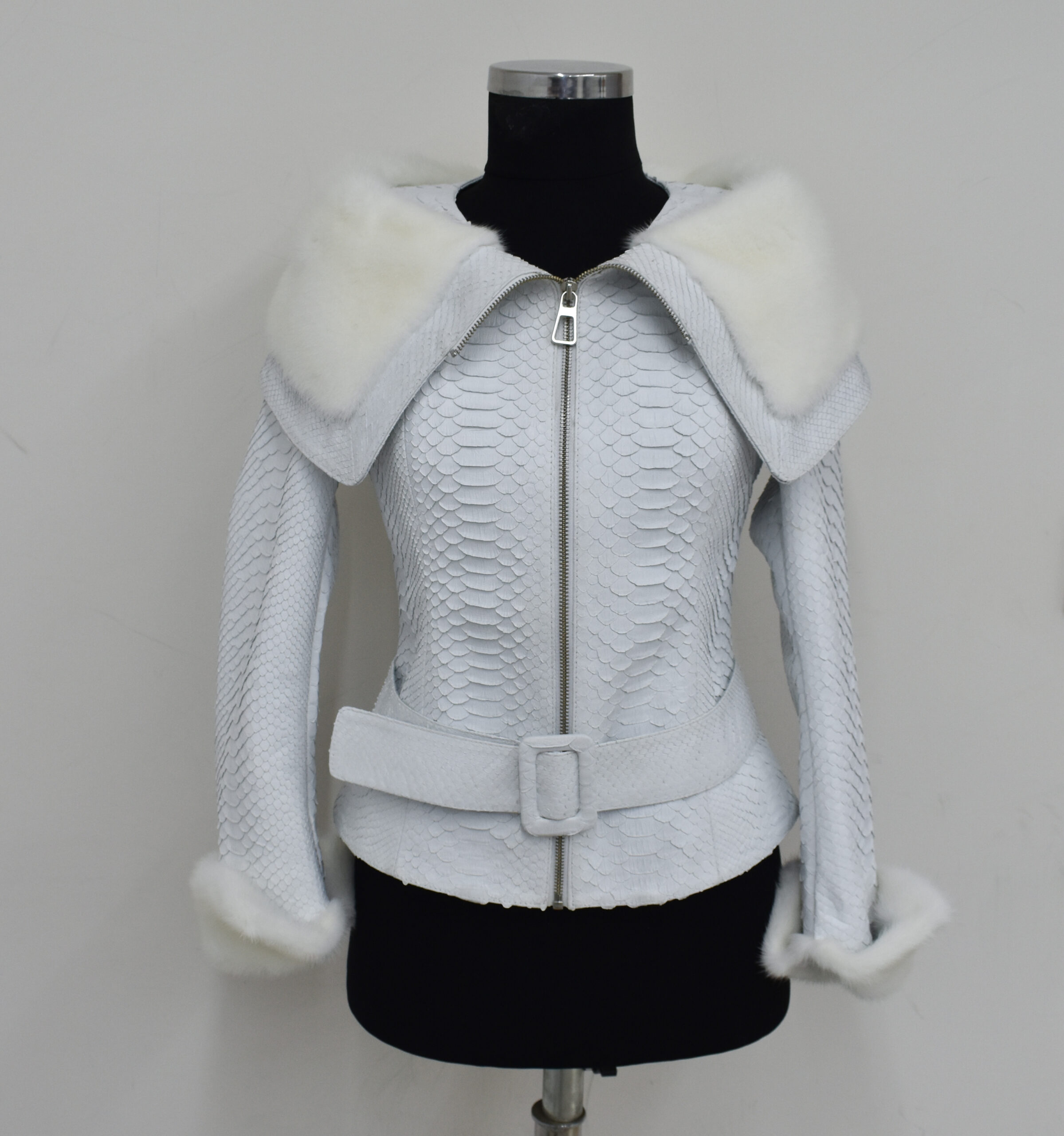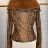 Women Python Leather Mink Fur Collar Jacket