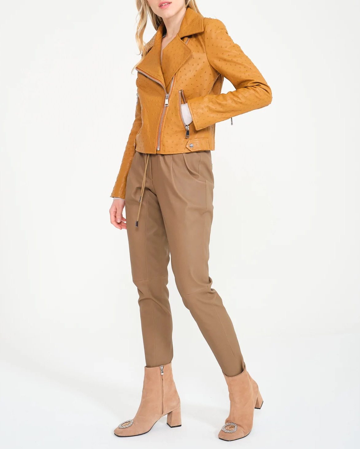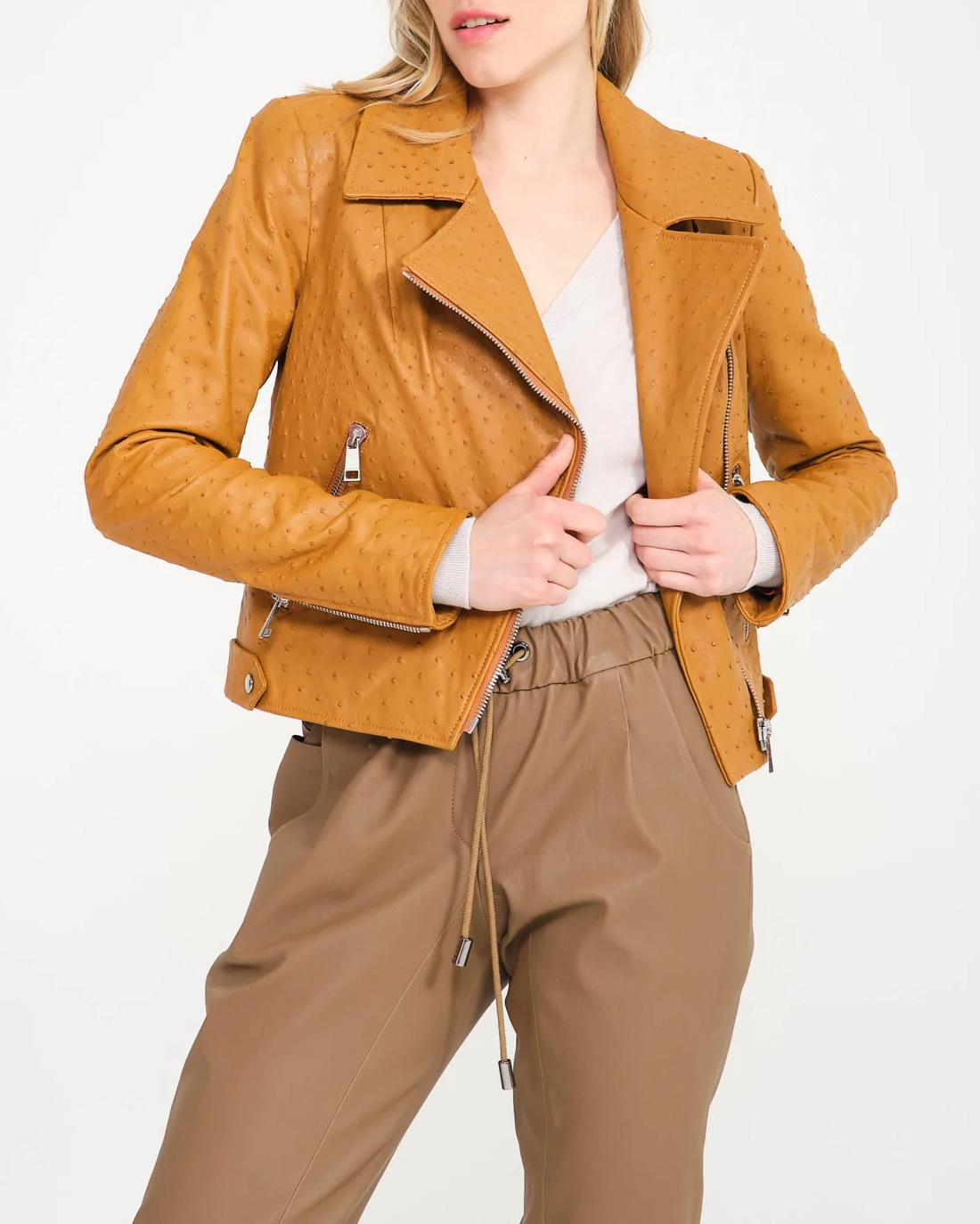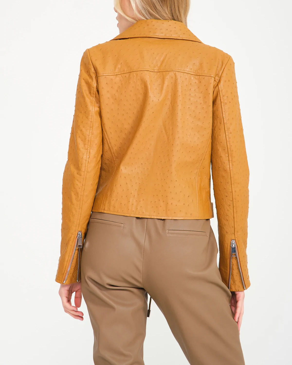 Women’s Orange Ostrich Quill Leather Biker Jacket