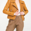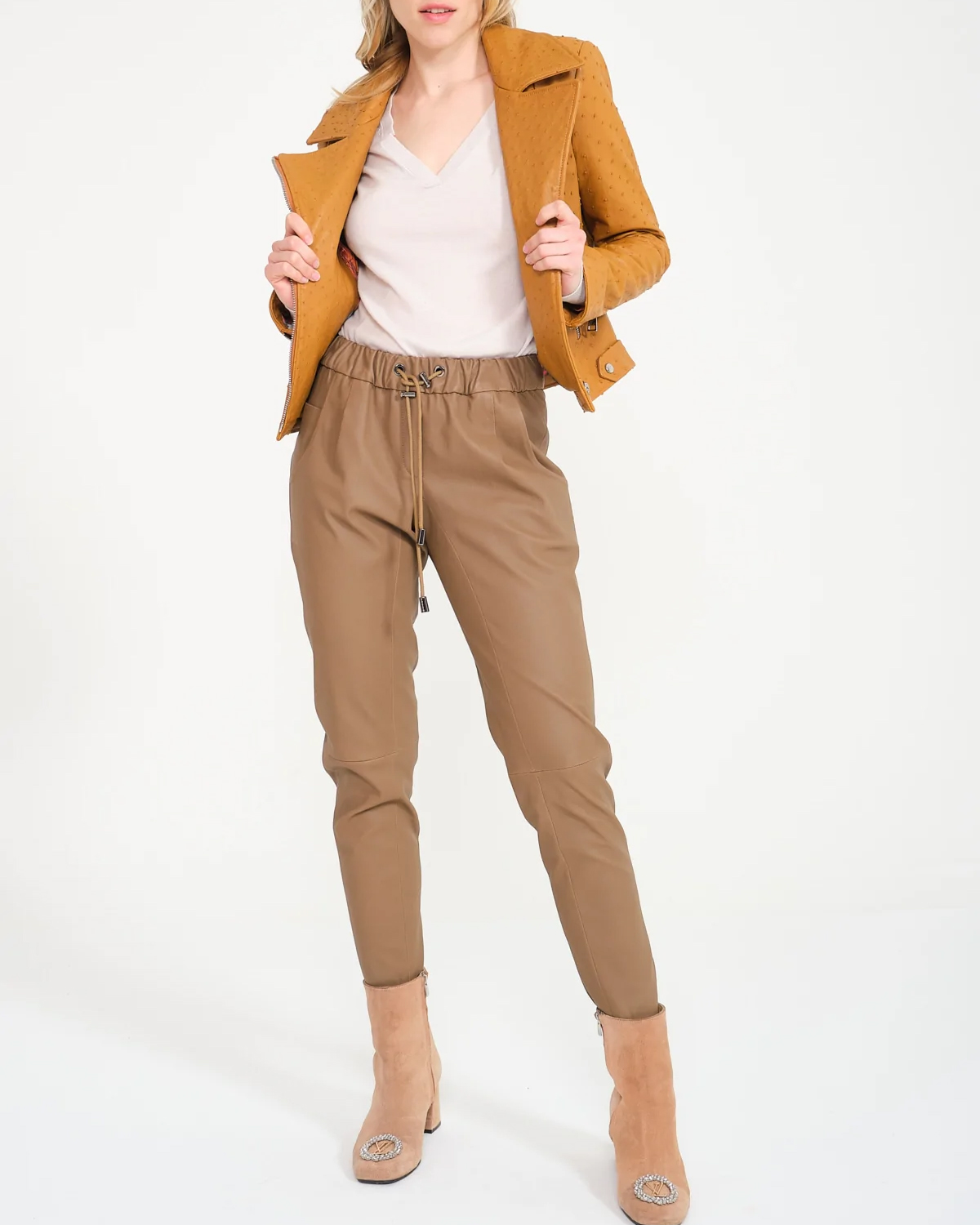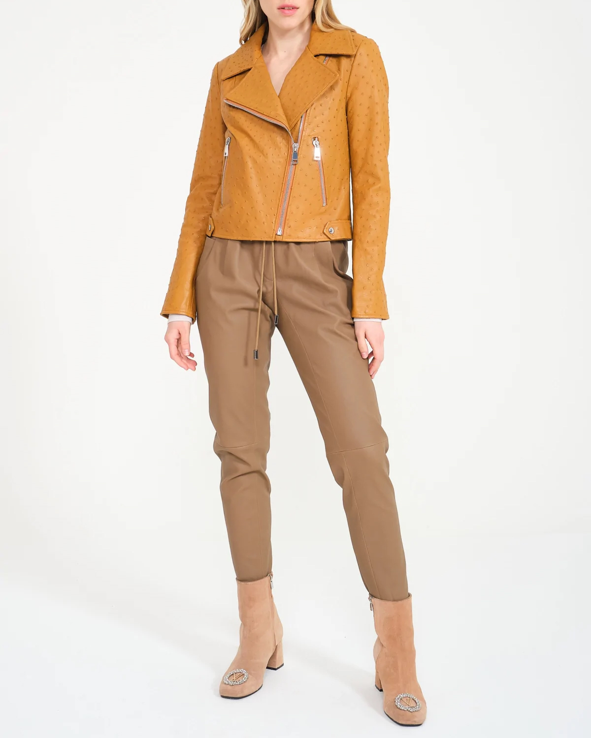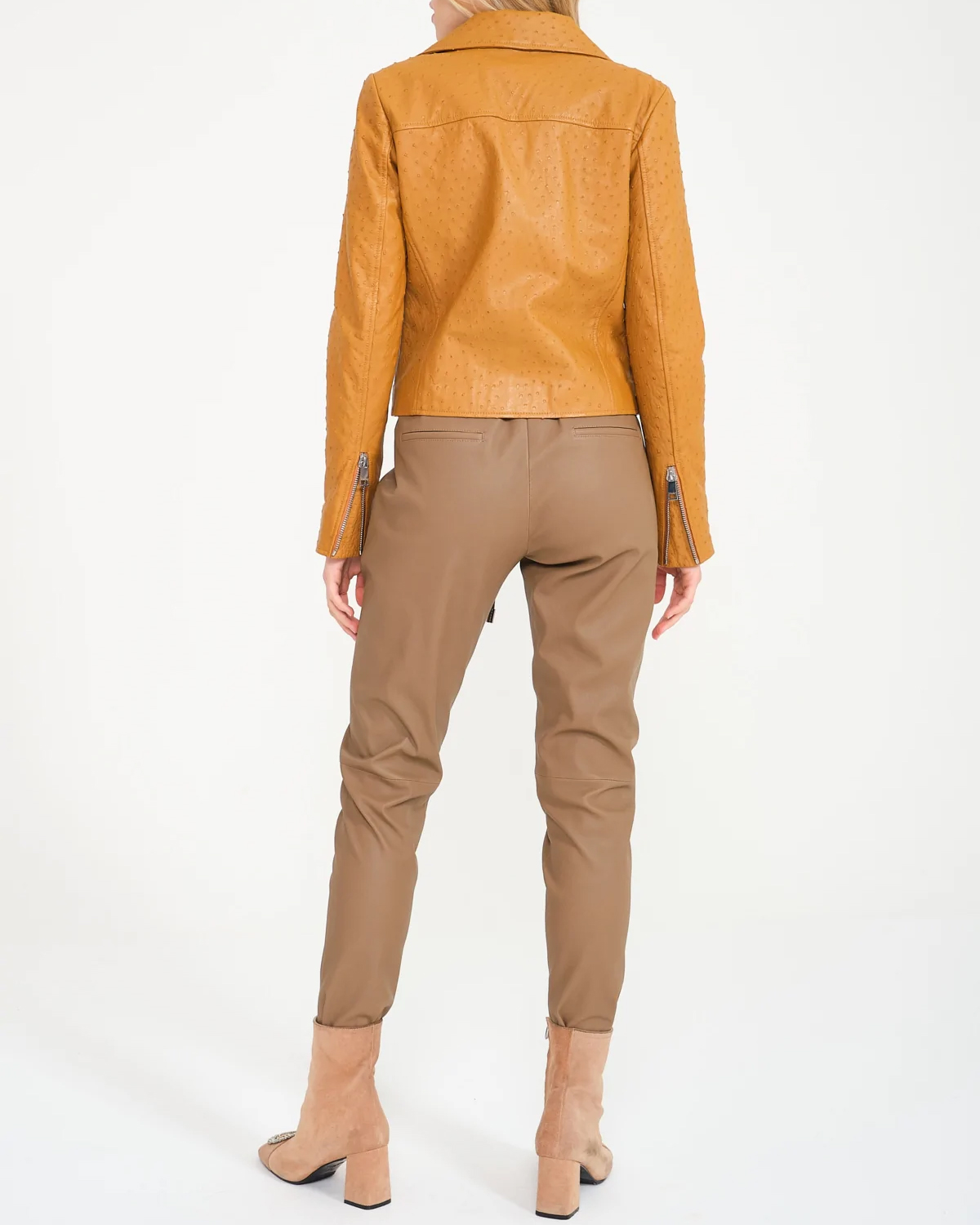 Women’s Orange Ostrich Quill Leather Biker Jacket