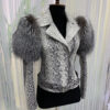 Womens White Fox Fur Trim Python Leather Biker Jacket